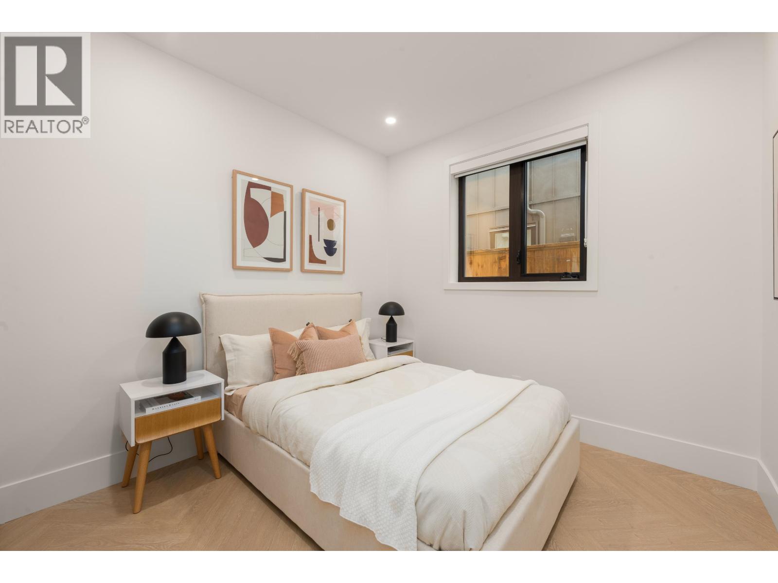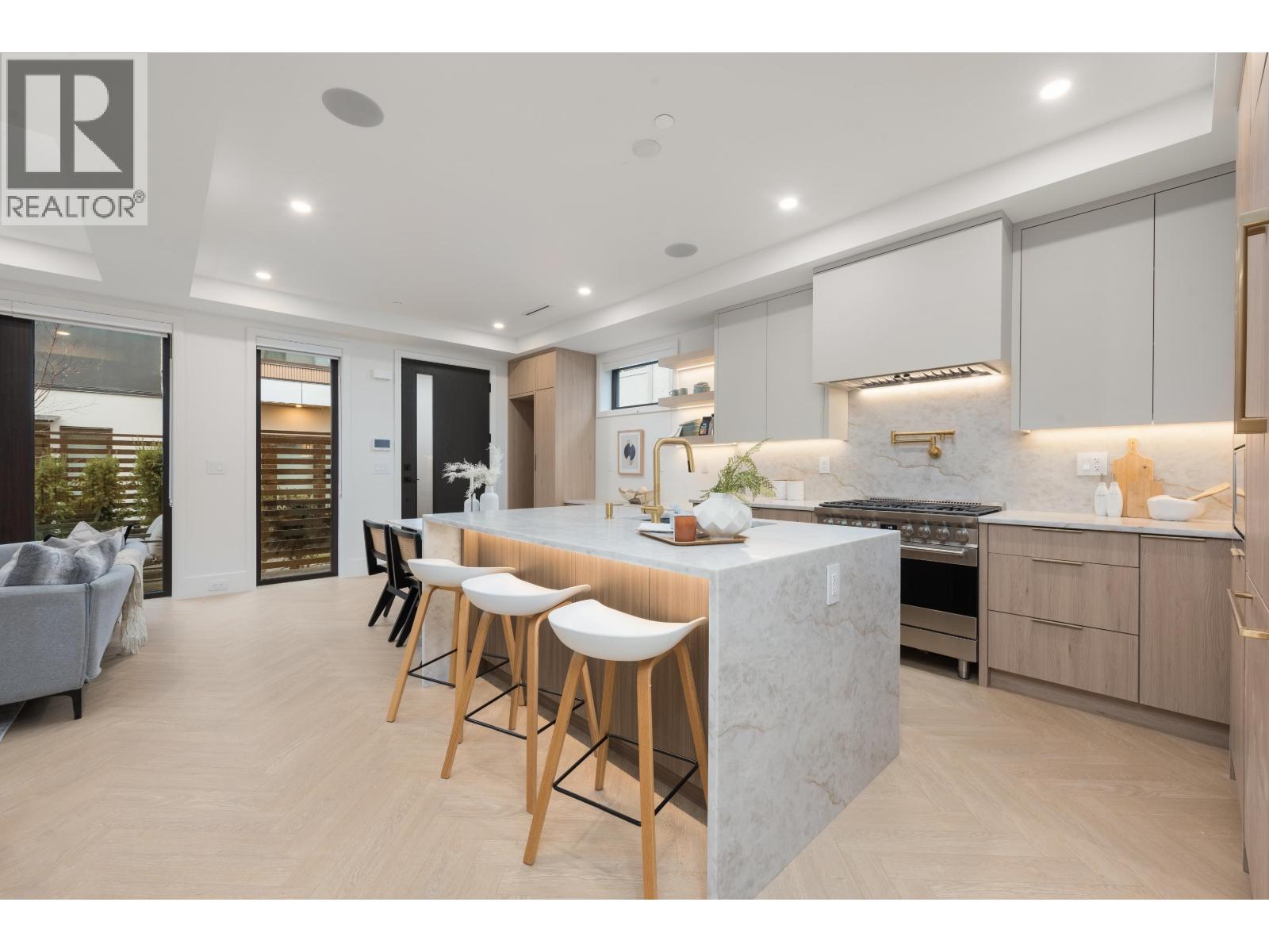 Welcome to Mira at Trout Lake. This stunning 2 level East facing duplex with private patio boasts a seamless indoor-outdoor flow through expansive tri-fold doors. Amazing design with bedroom and bath on the main floor and an addtional 3 bedrooms and 2 bath on the 2nd floor. Interiors are defined by thoughtful design, featuring herringbone wood flooring on the main level, wide plank oak above, and textured fluted limestone feature walls. Over-height ceilings, arched passages, and custom millwork create a sense of quiet sophistication. Kitchen designed for both function and presentation with integrated Smeg appliances, gas cooking, pot filler, deep Blanco sinks, and quartz countertops with full-height backsplash. Bathrooms deliver a spa-like experience with floating vanities, frameless glass shower, large format tile, and curated lighting. Each home includes air conditioning, in-suite ventilation, acoustic window systems, built-in speakers, security, and 2-5-10 warranty. Open House Sat & Sun 2-4pm (id:58403)