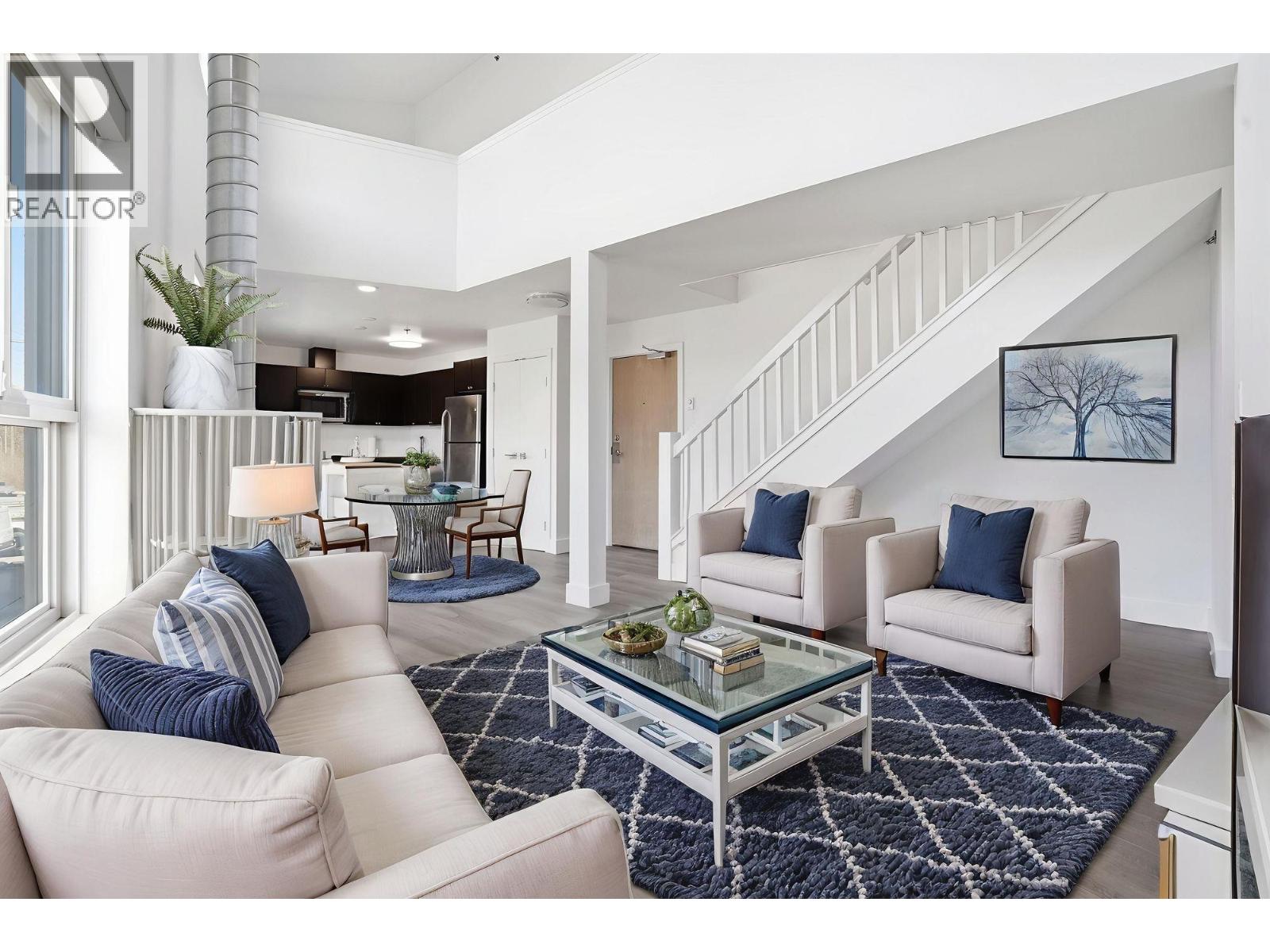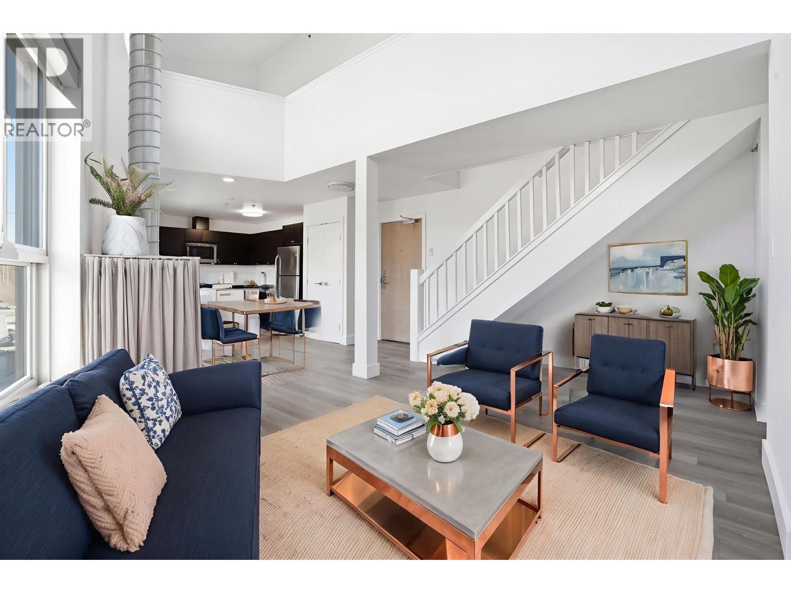 HOT BUY NEW PRICE! ONE OF A KIND LOFTED 2-LEVEL home, unique sleek urban industrial style; impressive 12´ lofted ceiling in living room above gas fireplace with industrial-style galvanized chimney,open kitchen with island & full size appliances including new gas stove and dishwasher,large bedroom & full bath on main. 2nd floor features truly flexible use,finished loft/mezzanine (two additional bedrooms, bedroom &media room or bedroom & workspace). Dramatic west facing views of the mountains/sunsets, balcony finished with concrete pavers, huge private/secure container storage and covered parking fits over-height vehicles plus plenty of additional open parking, rental & pets welcome. Recent upgrades include new hot water tank, toilet, bathroom fixtures, new clothes washer/dryer, new flooring throughout, entire home professionally painted, LED lighting, and more. This home is a rare find (larger than many townhomes) with incredible flexibility to use the rooms and floor plan, furnished photos are virtually staged (id:58403)