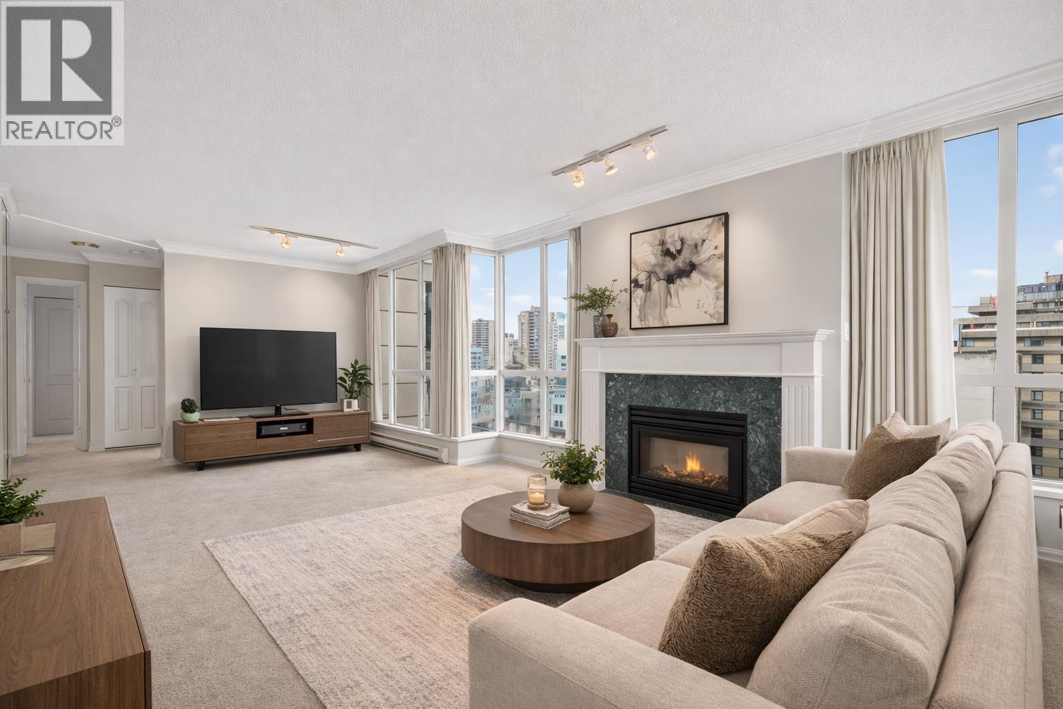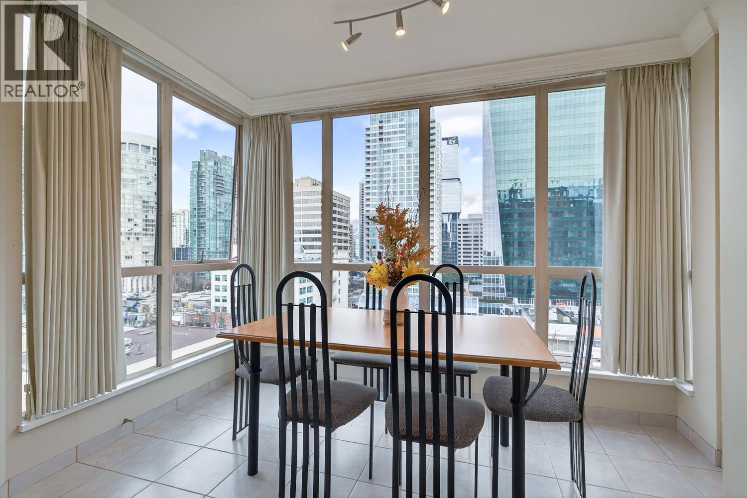 Discover the perfect blend of comfort and urban vibrance in this RARELY available SW corner home in Downtown Vancouver! Spanning 1,083 sqft, this 2 bedroom home is wrapped in floor-to-ceiling windows that bathe every room in natural light. The expansive living area features a cozy fireplace, perfectly framed by sweeping views of Vancouver´s iconic skyline. Enjoy your morning coffee in the sun-drenched eating area off the kitchen, a rare, dedicated nook with panoramic views. Oversized bedrooms are situated on opposite sides for maximum privacy. Great building amenities include a gym, sauna, theatre, games room, and party room. One parking (EV ready) and a storage locker included! Superb location next to Robson Street dining/shopping, the Financial District, the West End and Downtown core. (id:58403)