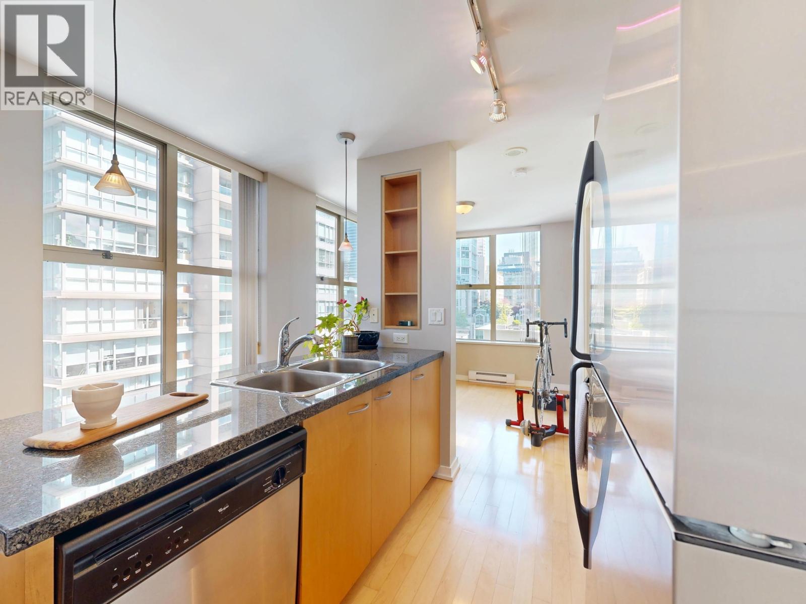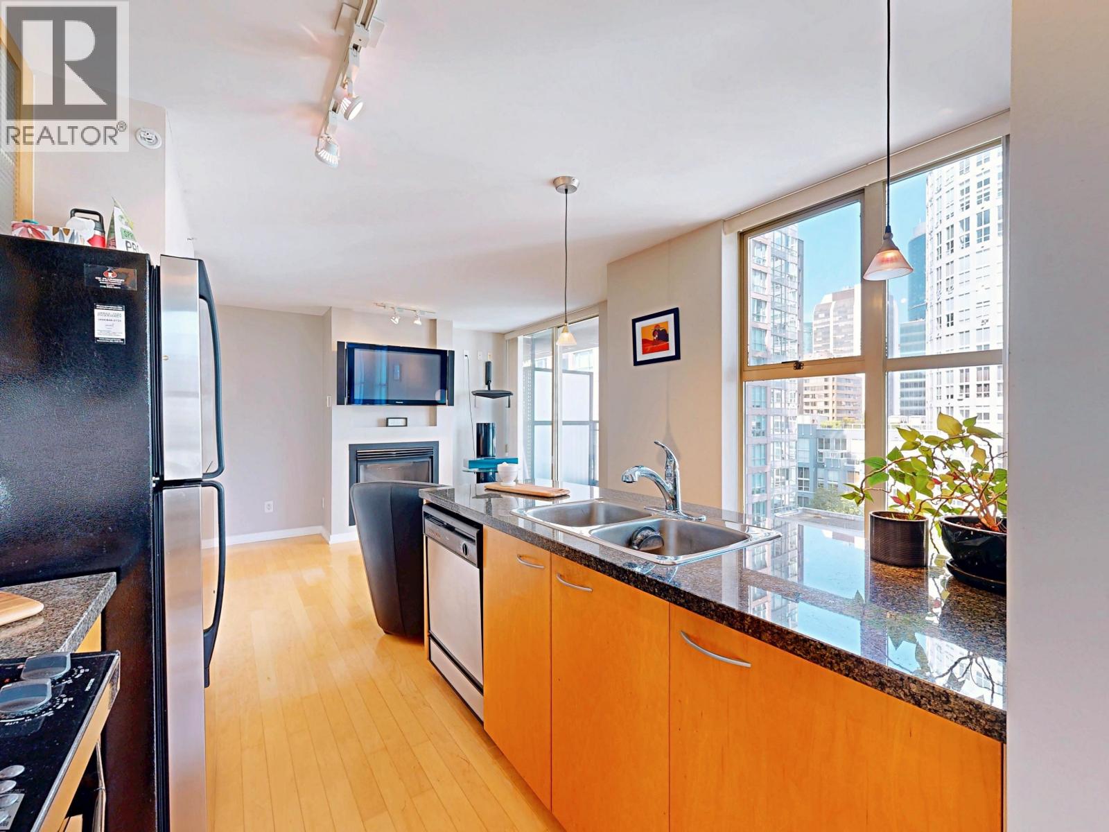 Welcome to Mondrian 2 by Bosa. This 1 bed, 1 bath corner unit condo just steps from Yaletown with top restaurants, shopping, and transit. As you enter, a spacious walk-in closet greets you on the right-perfect for storage and organization. Continue inside to a versatile open area that can serve as your living or dining room. The open kitchen sits at the heart of the home, ideal for entertaining. Beyond the kitchen, another flexible space awaits-use it as a second living area or dining nook. Tucked quietly at the back, the bedroom offers privacy and comfort, with a generously sized bathroom & upgraded shower. The best of urban living awaits! (id:58403)