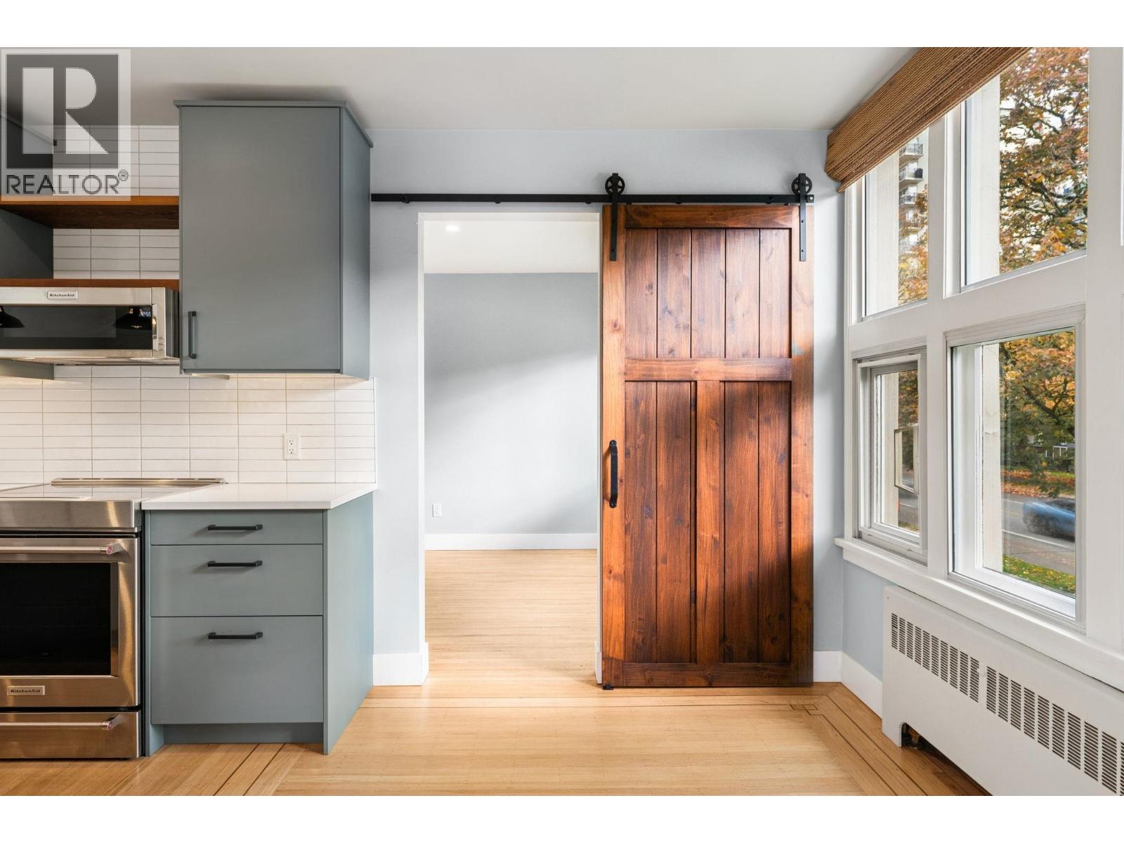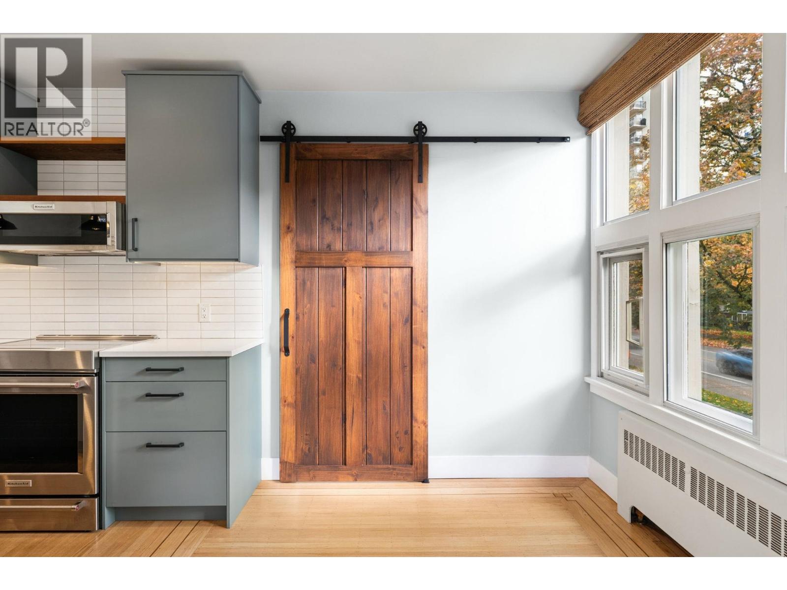 Mid-Century Modern! Welcome to this bright, quiet, South and West facing character home! With nearly 1,000 sq ft, this 2nd floor 2-bed, 2-bath features restored HW floors, coved ceilings, in-suite laundry and updated kitchen/baths. Enjoy abundant light and a strong community feel in this pet-friendly 19+ South Granville equity co-op building. Highly walkable location near shopping & dining. Don't miss this stylish, move-in-ready gem! Incl storage locker and bike room. No elevator, no parking. Open House Sunday Nov 2 1-2:30pm. (id:58403)