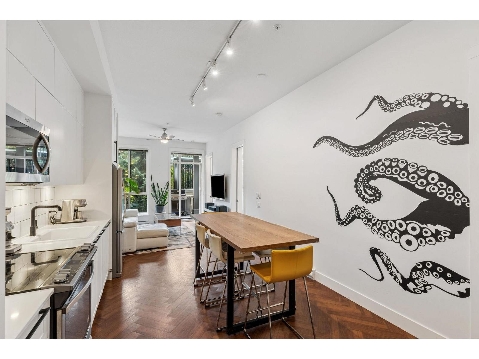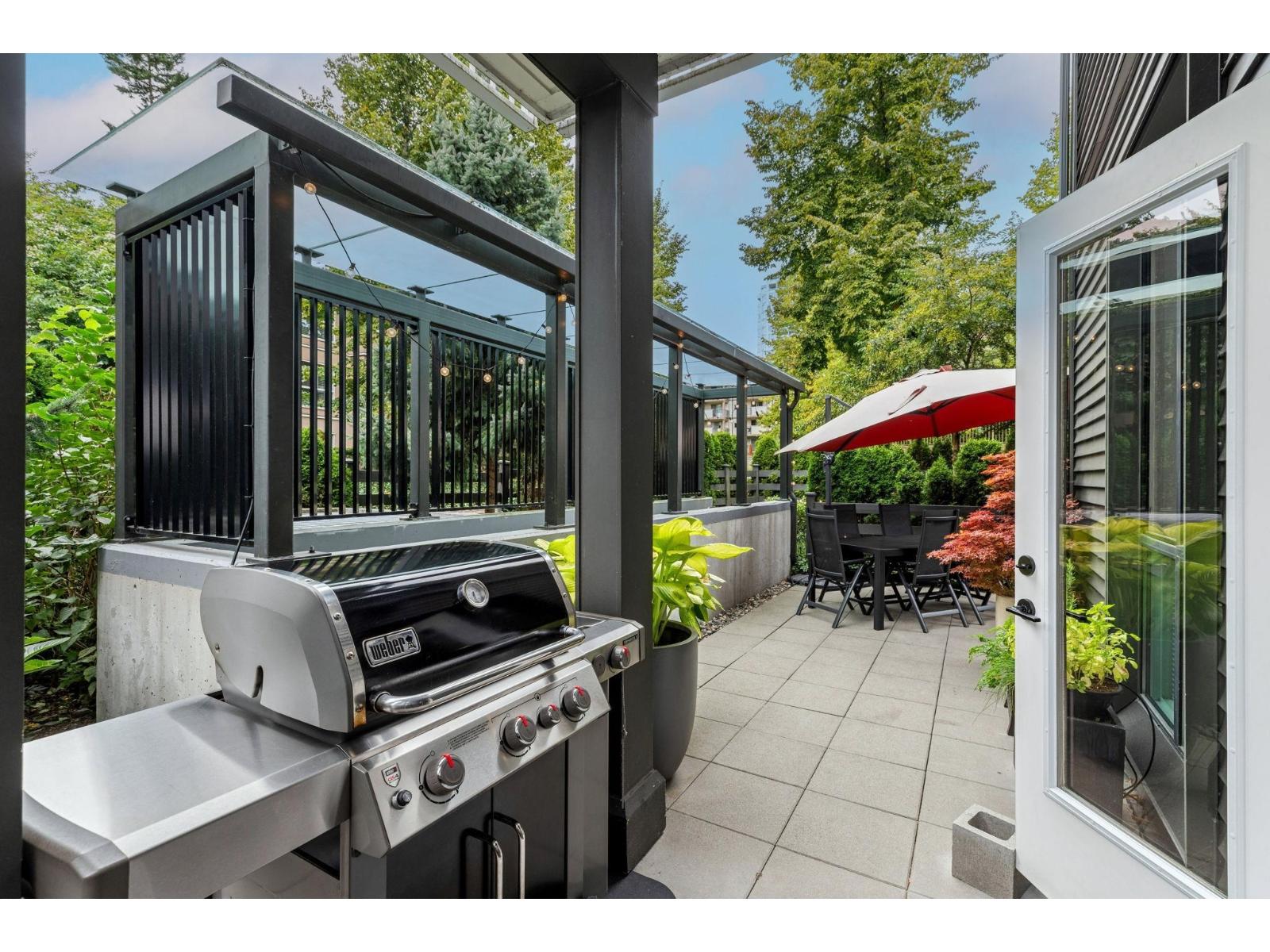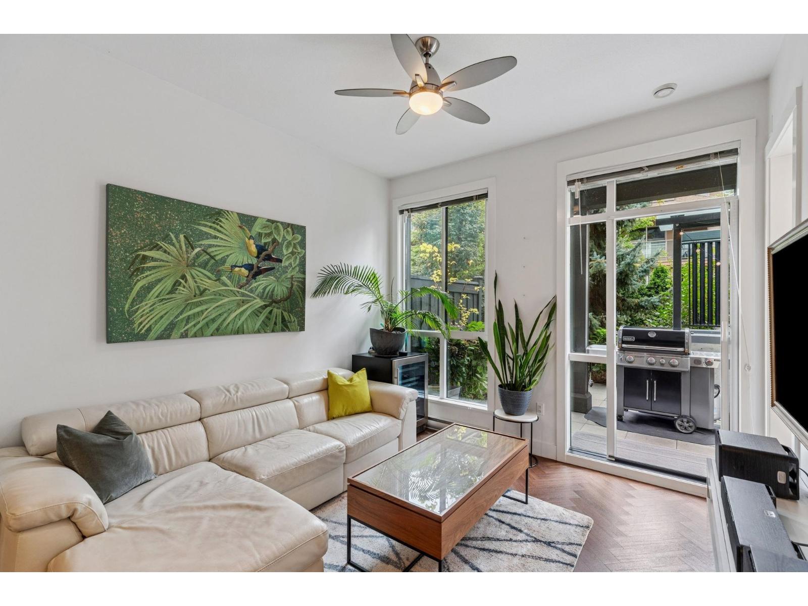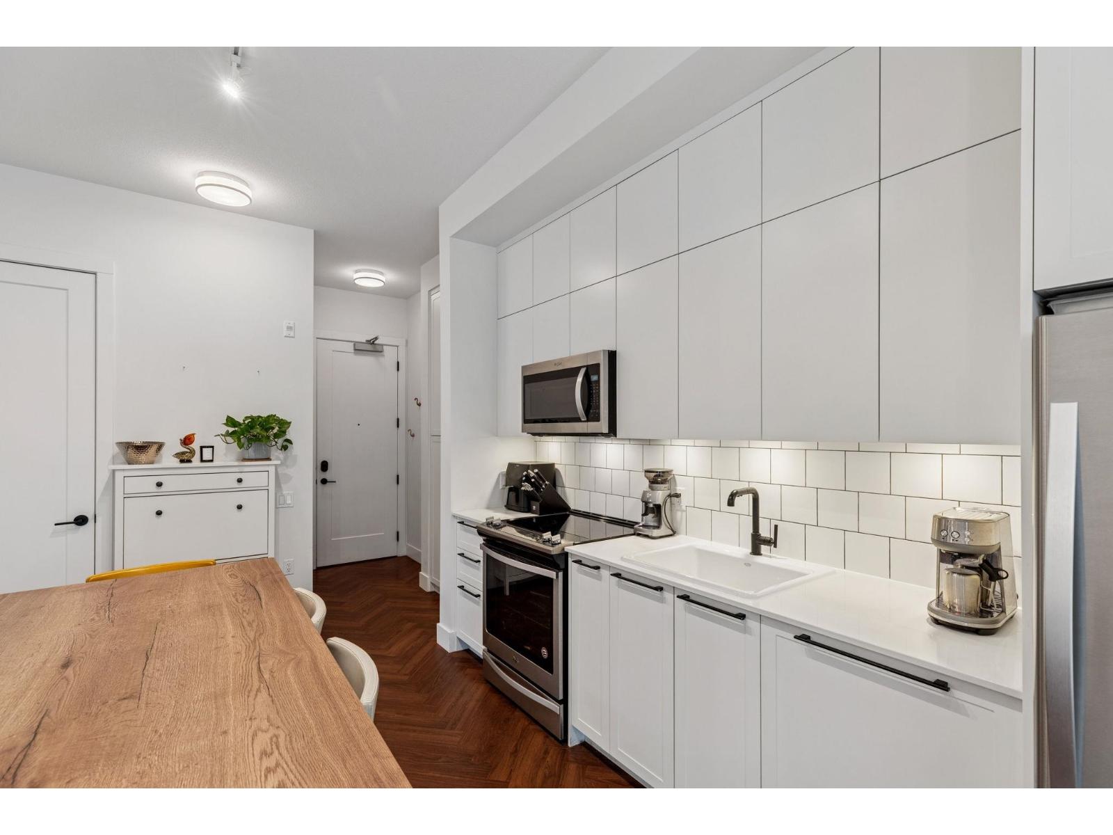 GUILDHOUSE by MOSAIC HOMES. Welcome to your new, corner, sunny terrace home! This stunning home features a super functional floorplan with 10' ceilings, rich herringbone flooring and a 621SF wrap around terrace/fenced yard with lush greenery views - perfect for pets and kids! Both bedrooms boast large windows and share a large cheater ensuite with deep soaker tub, spacious vanity and modern tiling, with walk in closet. Appreciate floor to ceiling windows and kitchen cabinetry with sleek, full sized appliances. All of this, steps from Guildford Mall, transit options, Guildford Recreational Centre, T&T, Hannam Supermarket and Superstore. Building amenities include a clubhouse with fitness centre and garden. Includes 2 parking & 1 storage. ***OPEN HOUSE: Sat, Oct 4 & Sun, Oct 5 2-4PM*** (id:58403)
