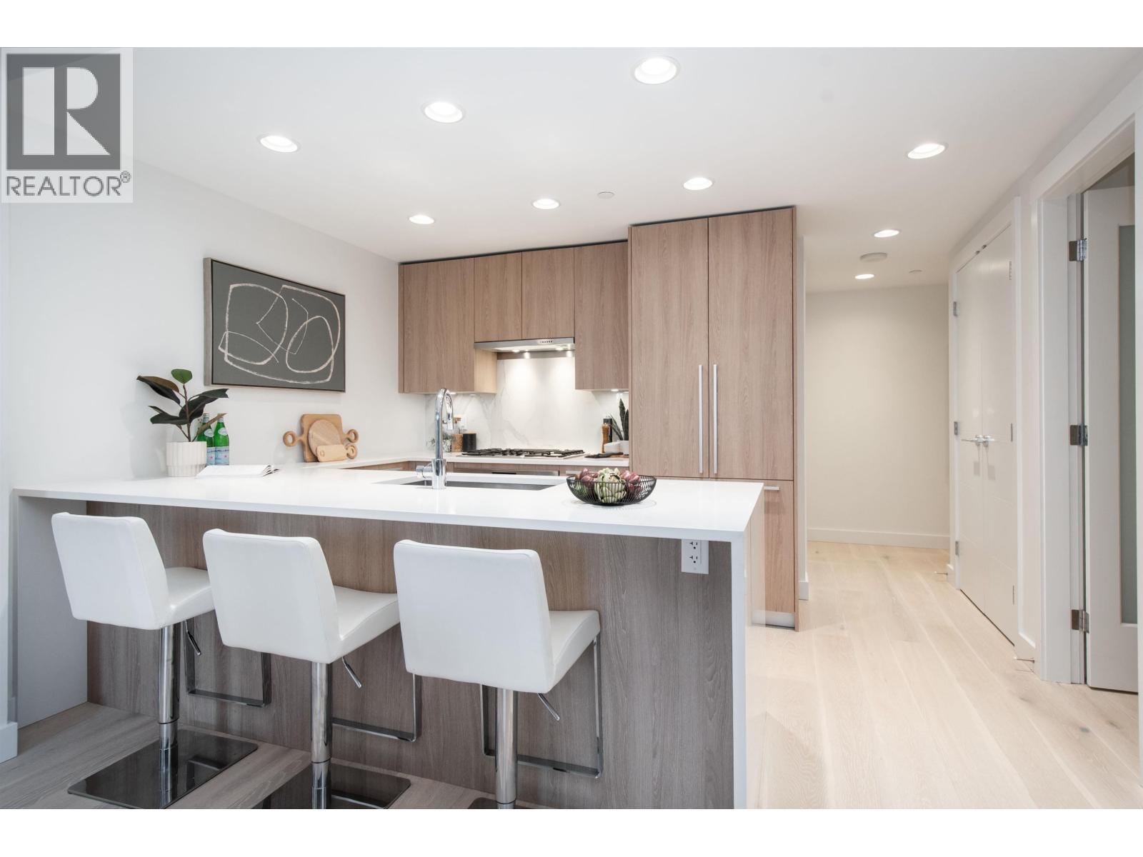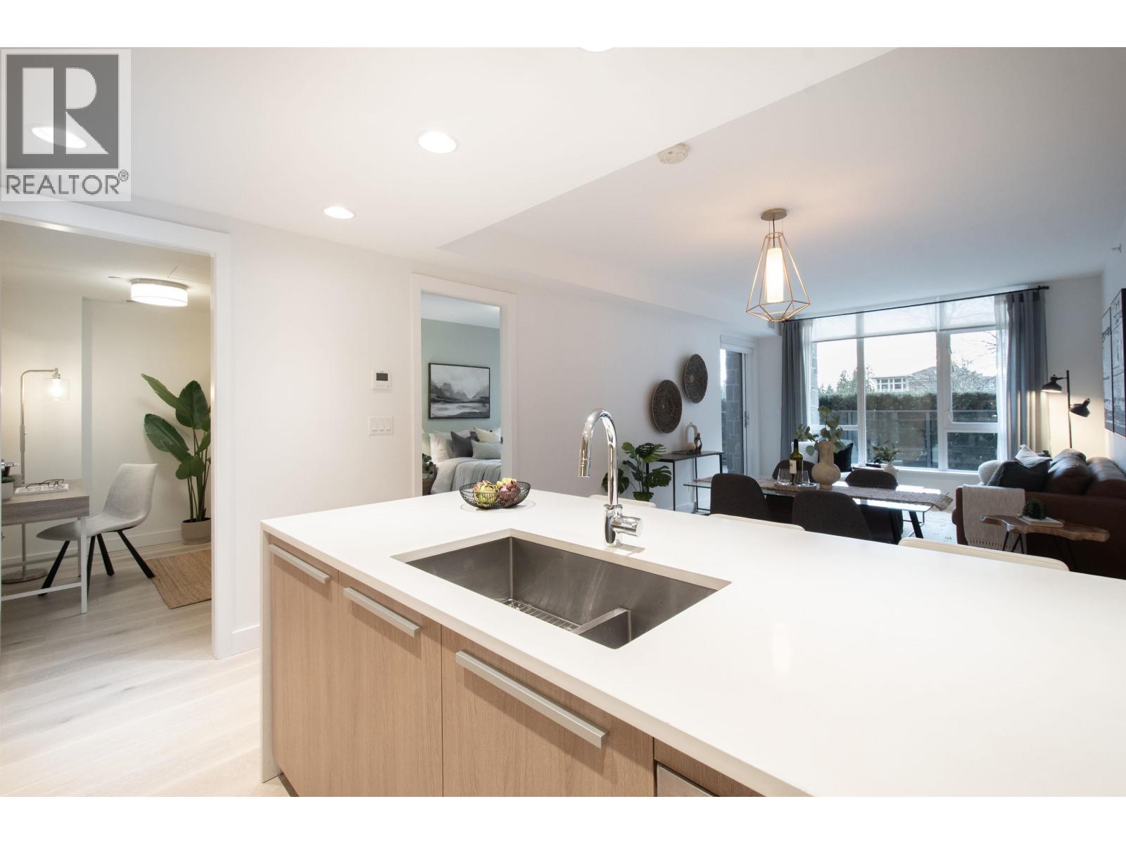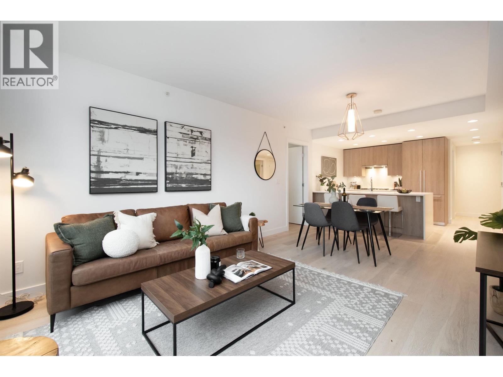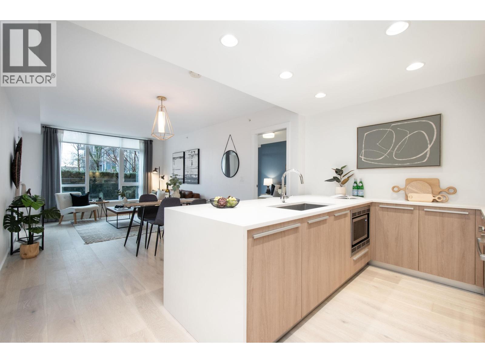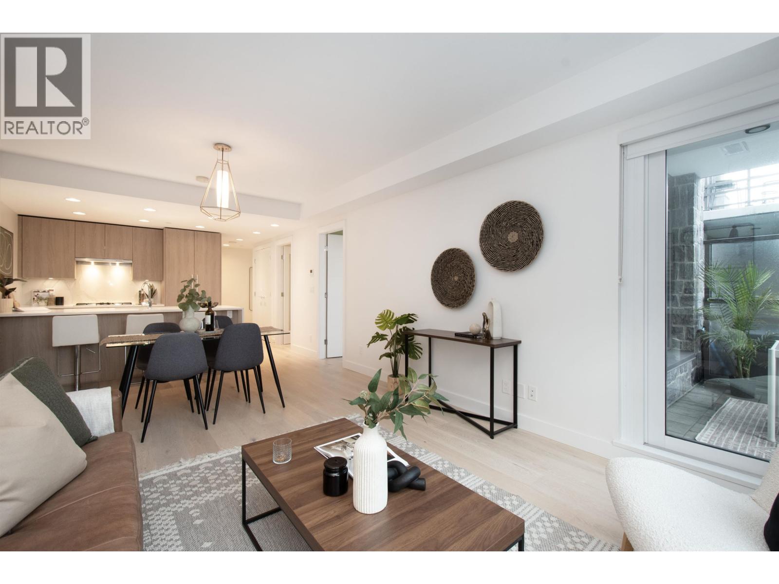 A rare ground-level home designed for everyday living in the heart of Lynn Valley! This 2 bed + den, 2 bath home at the Residences by Bosa offers nearly 1,100 sqft of bright, open-concept living with generous living and dining areas and a well-appointed kitchen featuring a breakfast bar, stainless steel appliances, and gas stove-ideal for entertaining. The primary bedroom is complemented by a spacious ensuite, while the second bedroom and full bathroom are thoughtfully positioned for guests or family. A separate den provides flexibility for a home office or creative use. Enjoy a large, private patio, partially covered and well suited for indoor-outdoor living. Concrete construction with air conditioning for quiet and year-round comfort. Includes 2 parking stalls, storage locker, gym access, and a pet friendly community. Perfect for downsizers, professionals, or young families. Walk to Lynn Valley Village shops, cafés, services, parks, trails, and schools. Book your private viewing today. (id:58403)