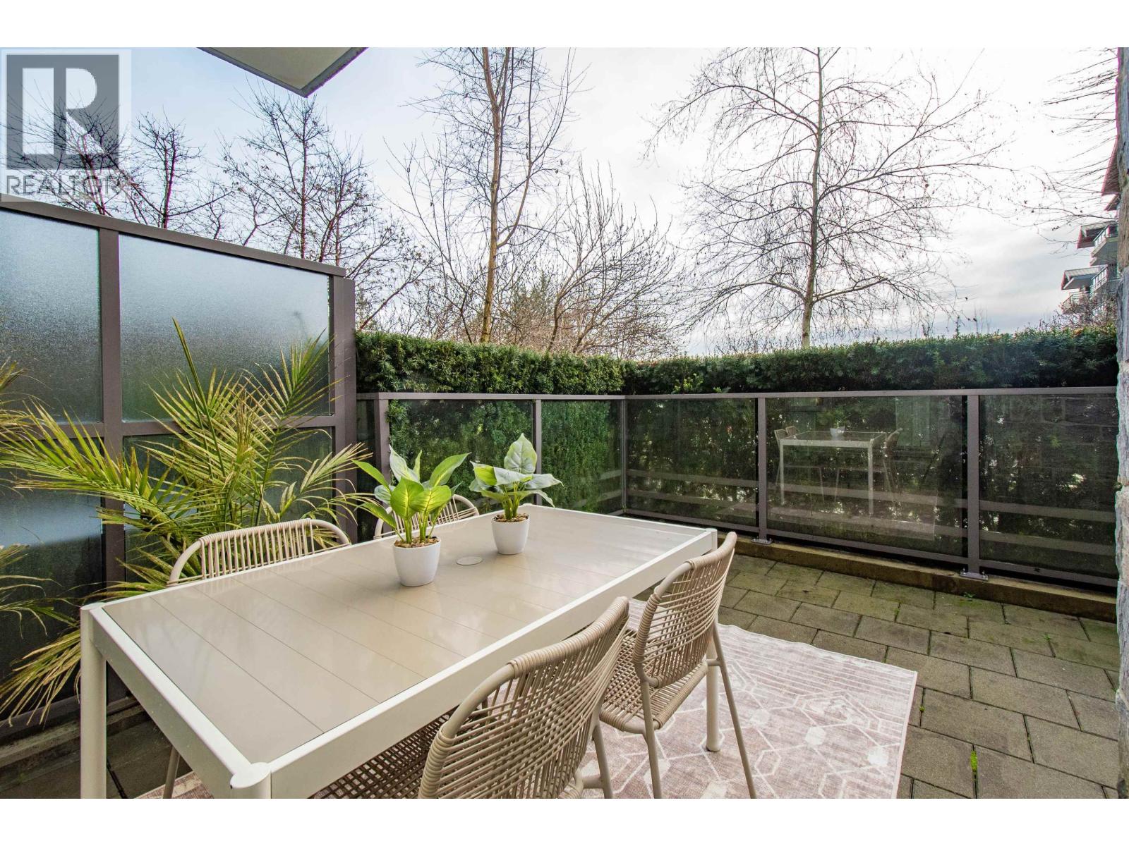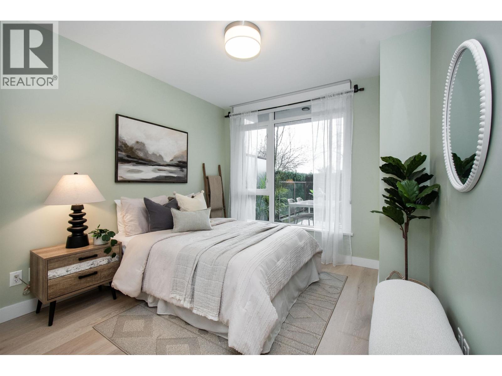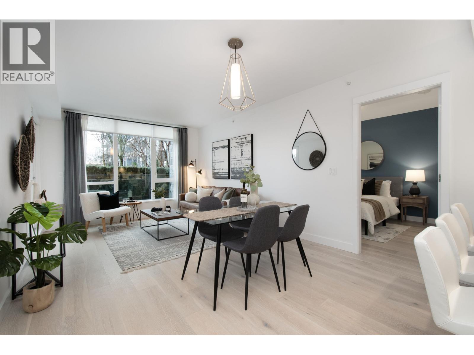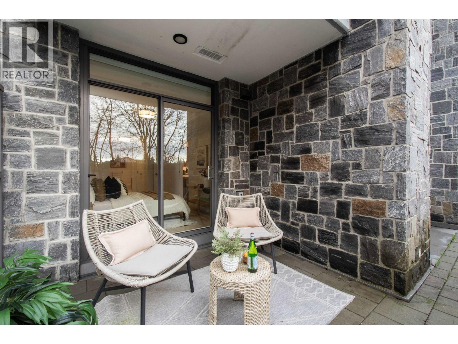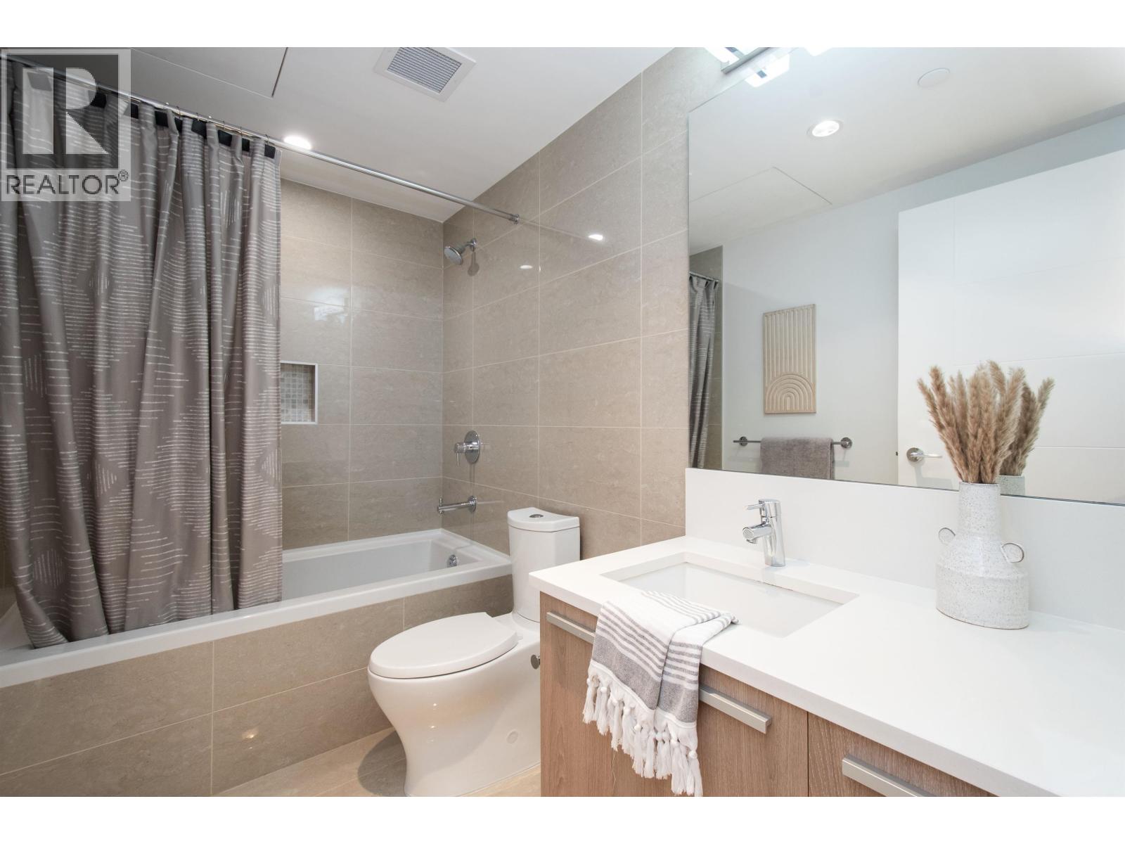 A rare ground-level home designed for everyday living in the heart of Lynn Valley! This 2 bed + den, 2 bath home at the Residences by Bosa offers nearly 1,100 sqft of bright, open-concept living with generous living and dining areas and a well-appointed kitchen featuring a breakfast bar, stainless steel appliances, and gas stove-ideal for entertaining. The primary bedroom is complemented by a spacious ensuite, while the second bedroom and full bathroom are thoughtfully positioned for guests or family. A separate den provides flexibility for a home office or creative use. Enjoy a large, private patio, partially covered and well suited for indoor-outdoor living. Concrete construction with air conditioning for quiet and year-round comfort. Includes 2 parking stalls, storage locker, gym access, and a pet friendly community. Perfect for downsizers, professionals, or young families. Walk to Lynn Valley Village shops, cafés, services, parks, trails, and schools. Book your private viewing today. (id:58403)