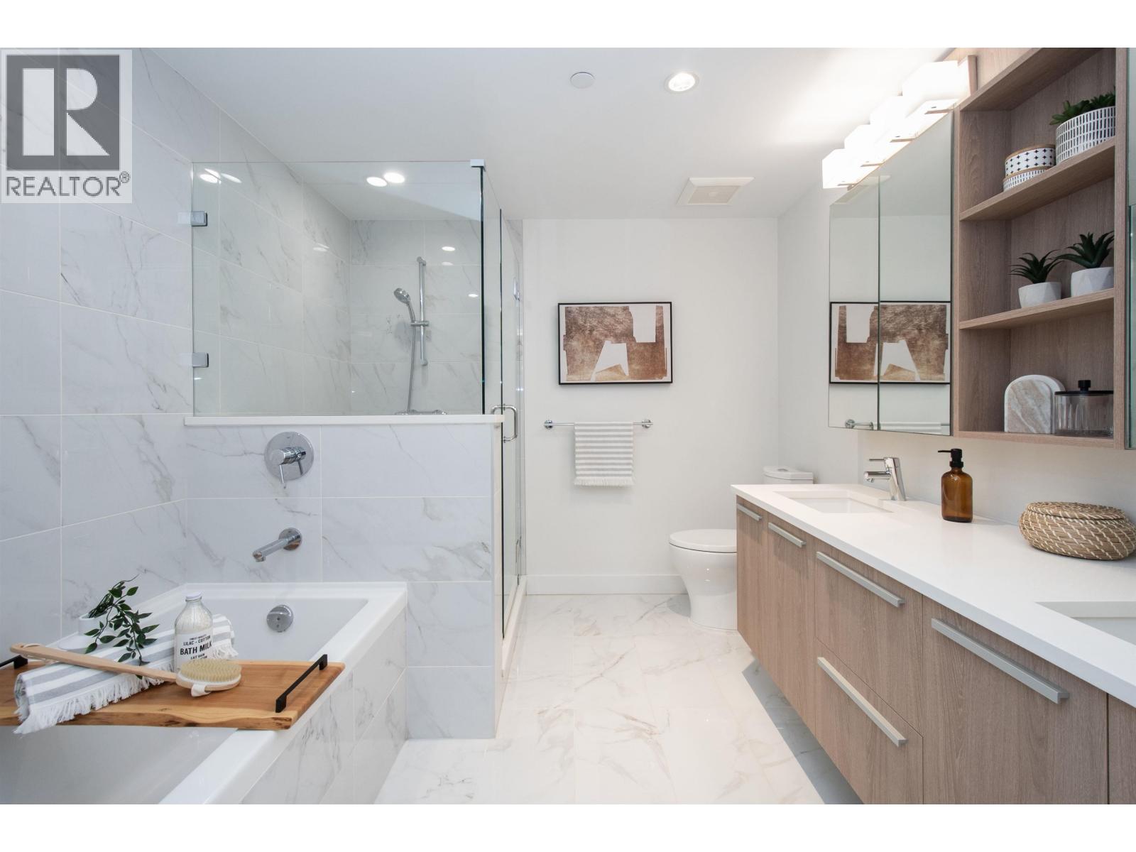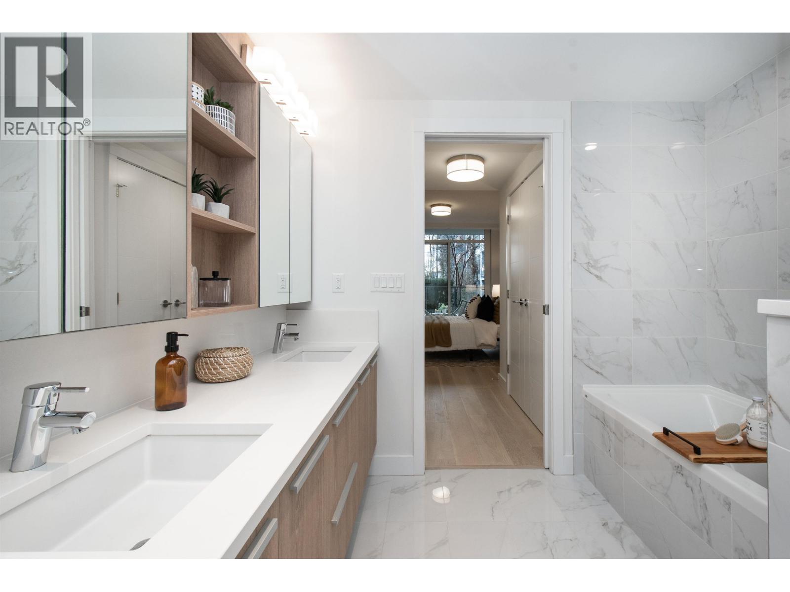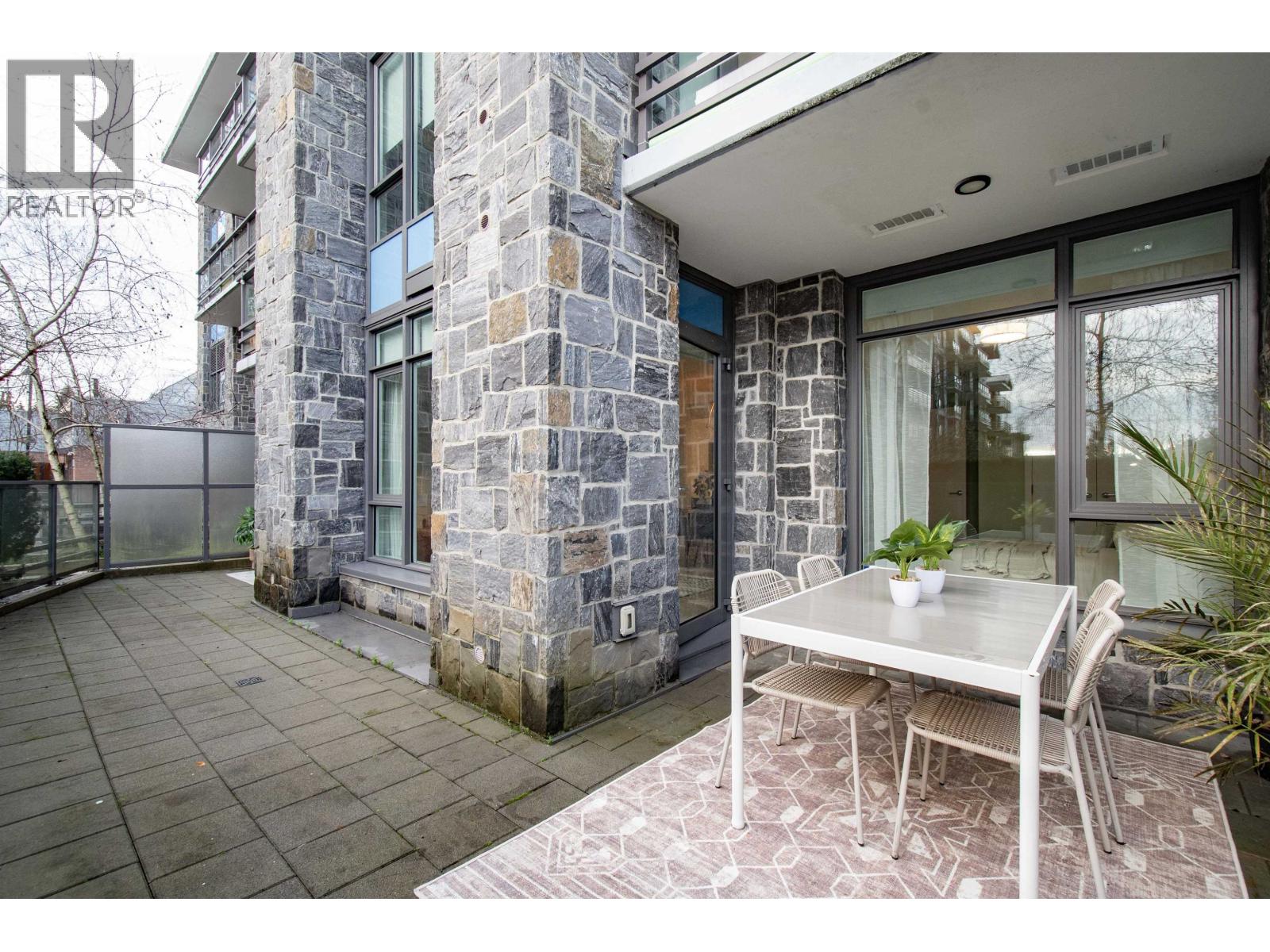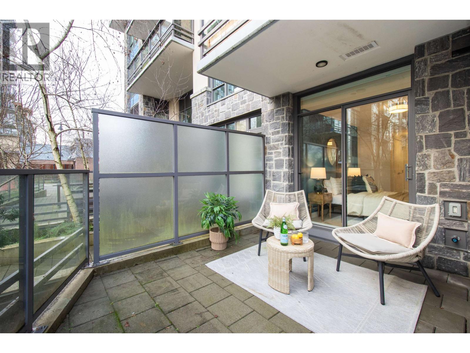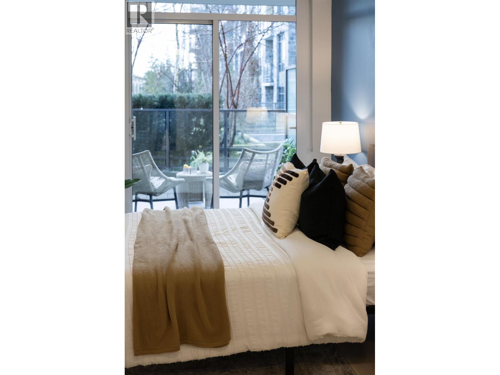 A rare ground-level home designed for everyday living in the heart of Lynn Valley! This 2 bed + den, 2 bath home at the Residences by Bosa offers nearly 1,100 sqft of bright, open-concept living with generous living and dining areas and a well-appointed kitchen featuring a breakfast bar, stainless steel appliances, and gas stove-ideal for entertaining. The primary bedroom is complemented by a spacious ensuite, while the second bedroom and full bathroom are thoughtfully positioned for guests or family. A separate den provides flexibility for a home office or creative use. Enjoy a large, private patio, partially covered and well suited for indoor-outdoor living. Concrete construction with air conditioning for quiet and year-round comfort. Includes 2 parking stalls, storage locker, gym access, and a pet friendly community. Perfect for downsizers, professionals, or young families. Walk to Lynn Valley Village shops, cafés, services, parks, trails, and schools. Book your private viewing today. (id:58403)