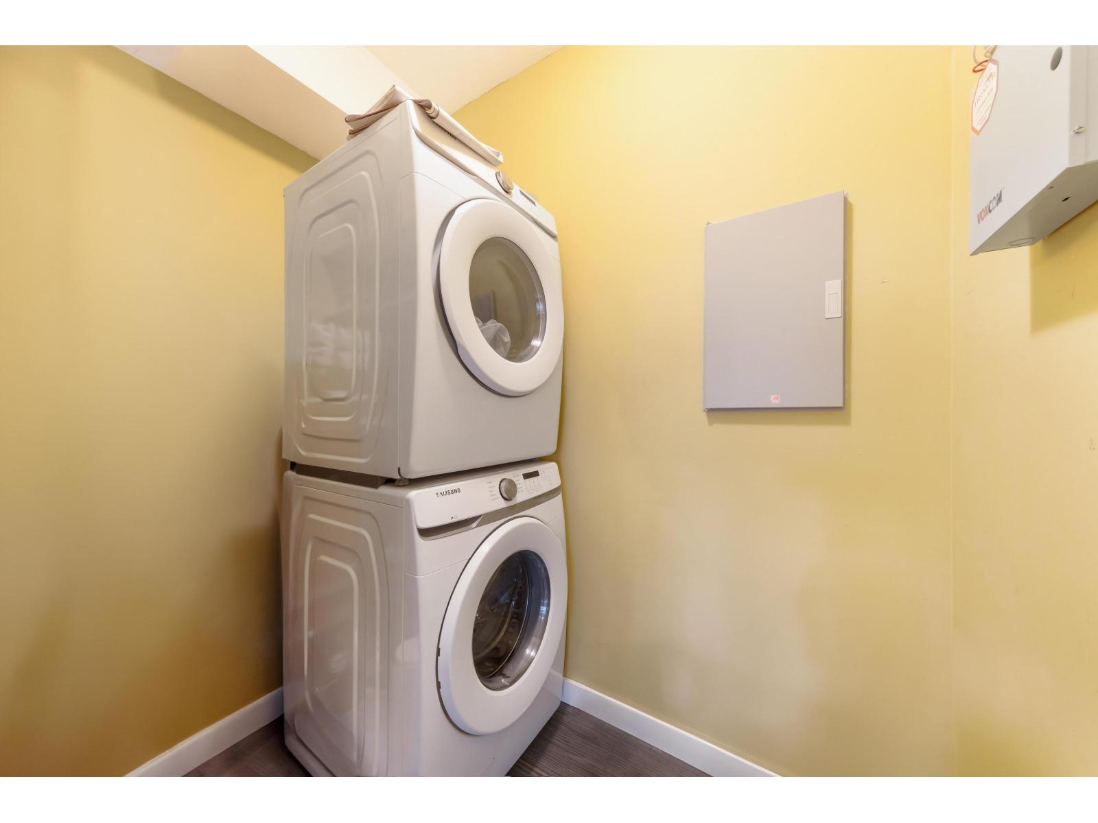 Crestview Court. This freshly painted & tastefully updated 2 bedroom + LRG windowed den (3rd bdrm) feat. 9 ft ceilings & rich mahogany h/w floors throughout. Offering gourmet chef's kitchen w/ stainless appliances, lrg farmhouse sink, pot lights, soft close shaker cabinets & granite countertops w/ breakfast bar. Enjoy a palatial master bedrm w/ full 3-piece ensuite & custom tiled shower. Enjoy your private & covered 115/sqft outdoor patio year round. With over 1,245/sqft of living space, incl. a LRG. in-suite laundry rm, two side by side parking spots & storage locker. Steps away from Skytrain, Central City mall, SFU, Rec Centre, Library, City Hall and Forsythe Elementary school/park are across the street. Pet Friendly. (id:58403)