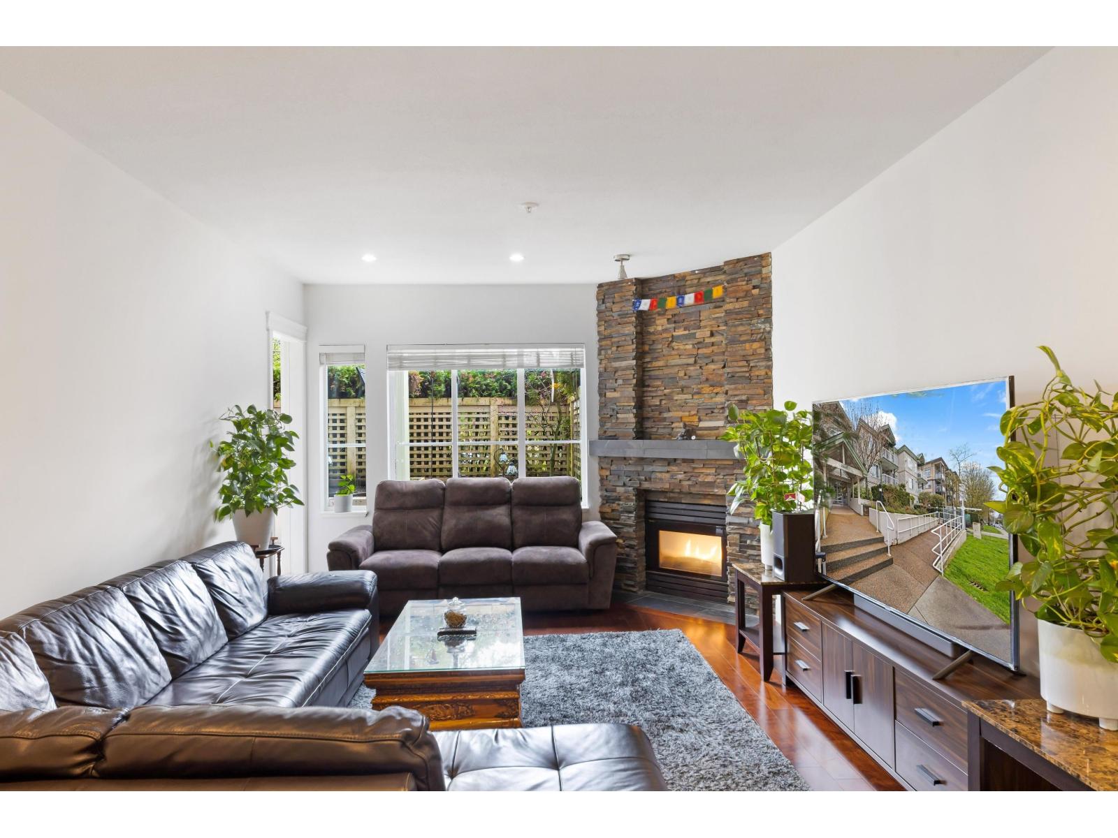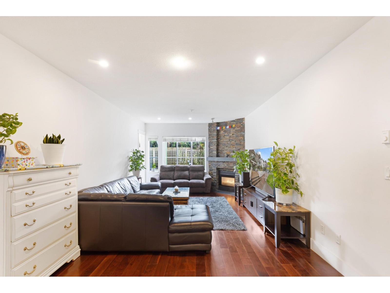 Crestview Court. This freshly painted & tastefully updated 2 bedroom + LRG windowed den (3rd bdrm) feat. 9 ft ceilings & rich mahogany h/w floors throughout. Offering gourmet chef's kitchen w/ stainless appliances, lrg farmhouse sink, pot lights, soft close shaker cabinets & granite countertops w/ breakfast bar. Enjoy a palatial master bedrm w/ full 3-piece ensuite & custom tiled shower. Enjoy your private & covered 115/sqft outdoor patio year round. With over 1,245/sqft of living space, incl. a LRG. in-suite laundry rm, two side by side parking spots & storage locker. Steps away from Skytrain, Central City mall, SFU, Rec Centre, Library, City Hall and Forsythe Elementary school/park are across the street. Pet Friendly. (id:58403)