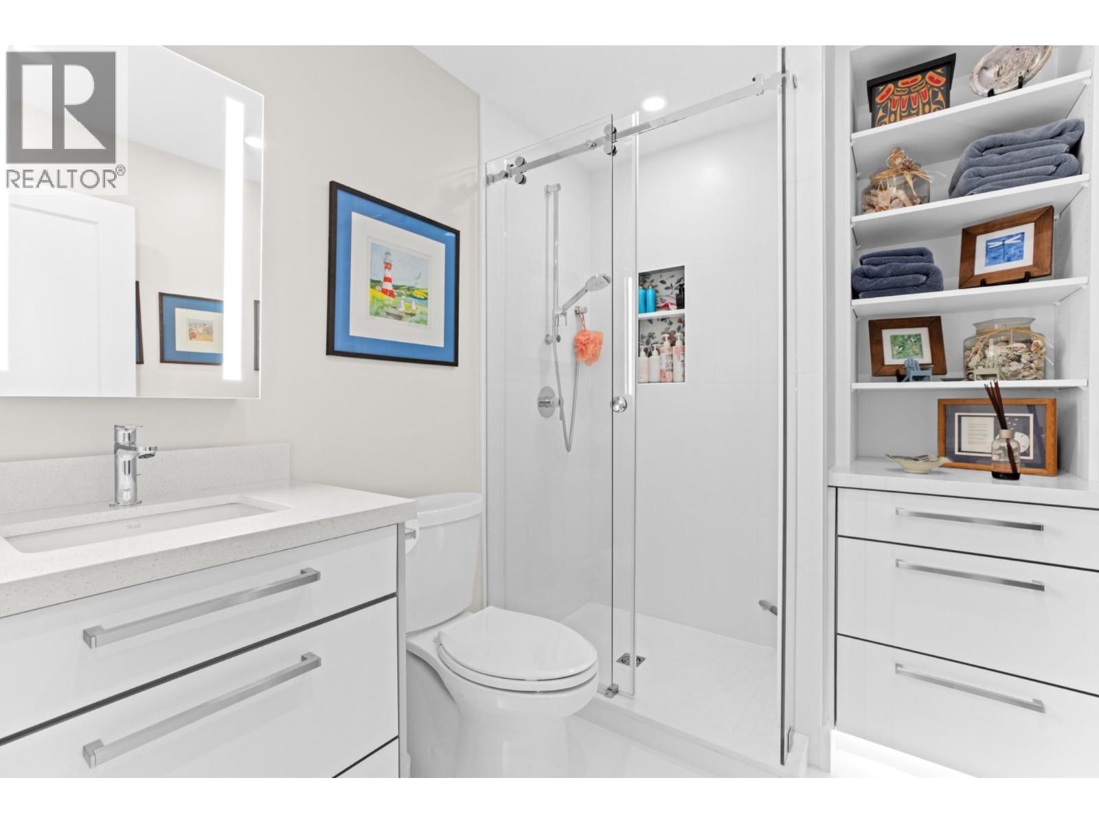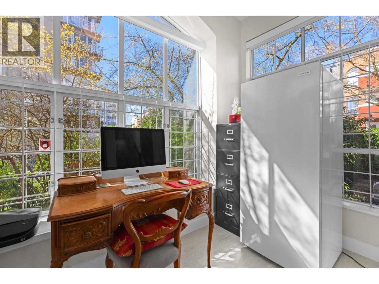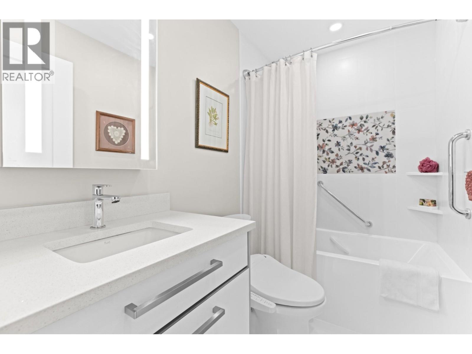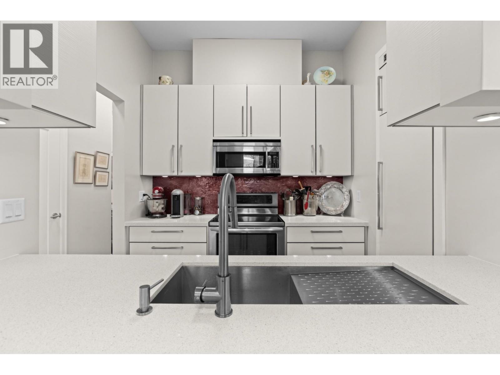 At just over 1,000 SqFt of interior space & 165 SqFt of Patio, this 2 Bed + Den / 2 Bath home has 3 parking stalls and left no stone unturned in its full renovation. From opened kitchen with an abundance of storage, convection stove & custom glass backsplash. Both Bathrooms have been completely updated with under-mount sensor lighting, storage and radiant in-floor heating throughout (even under the shower). The open concept Living / Dining area feels grand with soaring 10ft ceilings throughout, beautifully detailed with custom mosaic stone work around the fireplace and crown moldings throughout. The living area also leads directly out to the private 165 SqFt patio! West Park House between Gilford Street & Chico Street on Nelson Street has been completely updated with Rainscreen & new roof. (id:58403)