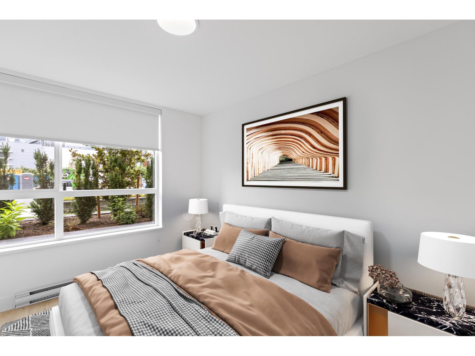 GARDEN WALKOUT OASIS! Welcome home to a stunning, newly built & move-in ready ground level home in highly anticipated HIGHSTREET VILLAGE. Rare chance to skip the presale process, enjoy your home today. SPACE! Spacious, functional 602t home boasts 9ft ceilings, bright+airy living, 1 bedroom w/expansive walk-in closet & functional den/office/nursery, dream kitchen, built-in storage solutions. CONVENIENCE! Step onto your patio, into town without the elevator. Enjoy green backdrop throughout! QUALITY! Luxury built by AB Wall Group, w/2-5-10 warranty. Bonus huge storage locker aside parking. LOCATION! Incredible position in Abbotsford's most Westerly setting minutes to Langley. WALKSCORE! Steps to Highstreet Shopping Mall, restaurants, daycare, at foot of the HWY! Airport a few minutes away! (id:58403)