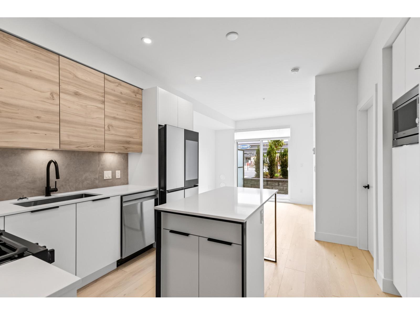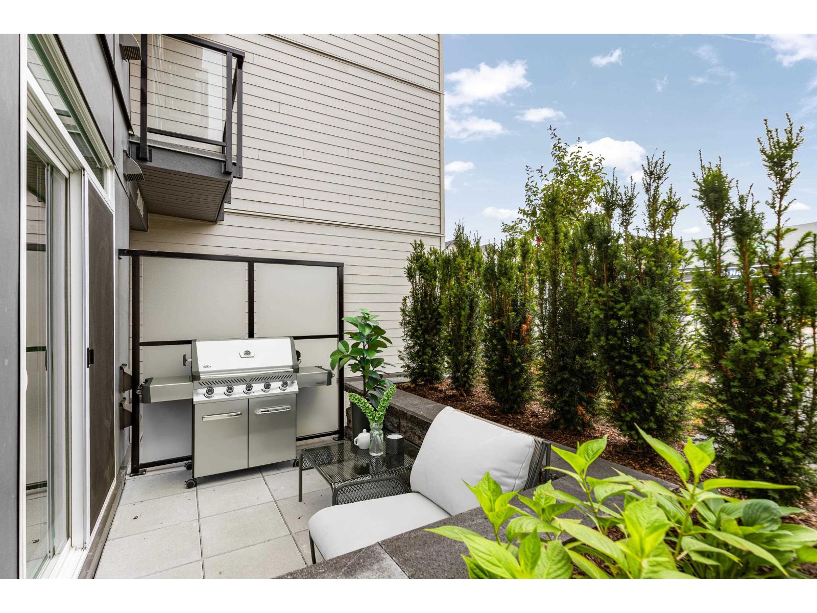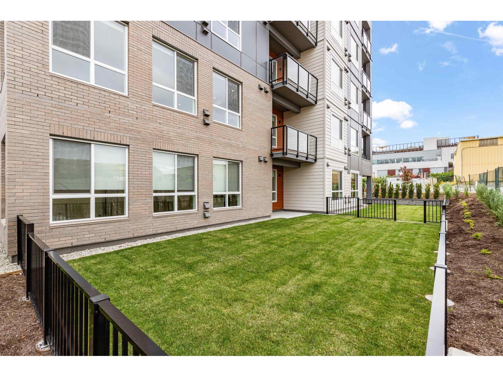 GARDEN WALKOUT OASIS! Welcome home to a stunning, newly built & move-in ready ground level home in highly anticipated HIGHSTREET VILLAGE. Rare chance to skip the presale process, enjoy your home today. SPACE! Spacious, functional 602t home boasts 9ft ceilings, bright+airy living, 1 bedroom w/expansive walk-in closet & functional den/office/nursery, dream kitchen, built-in storage solutions. CONVENIENCE! Step onto your patio, into town without the elevator. Enjoy green backdrop throughout! QUALITY! Luxury built by AB Wall Group, w/2-5-10 warranty. Bonus huge storage locker aside parking. LOCATION! Incredible position in Abbotsford's most Westerly setting minutes to Langley. WALKSCORE! Steps to Highstreet Shopping Mall, restaurants, daycare, at foot of the HWY! Airport a few minutes away! (id:58403)