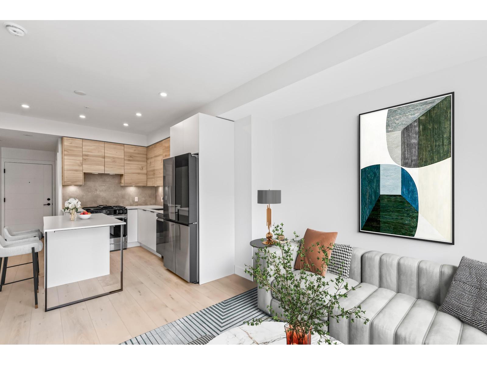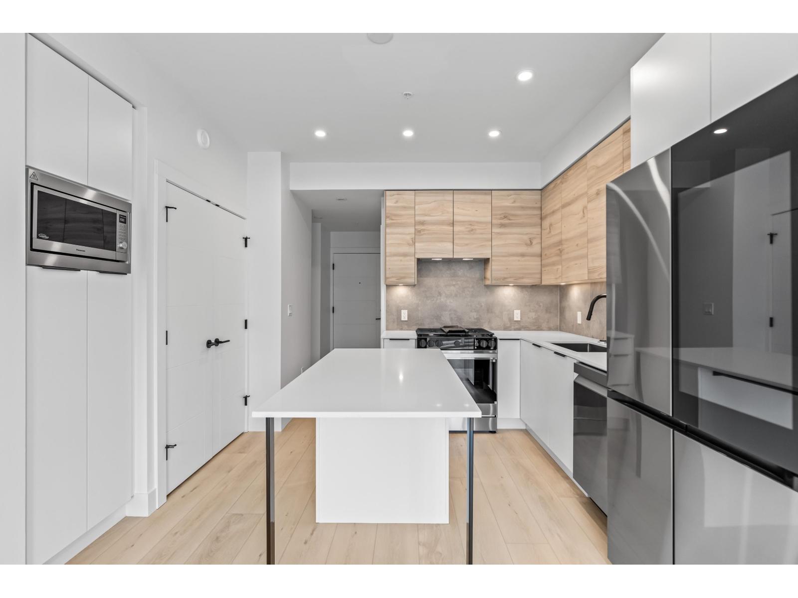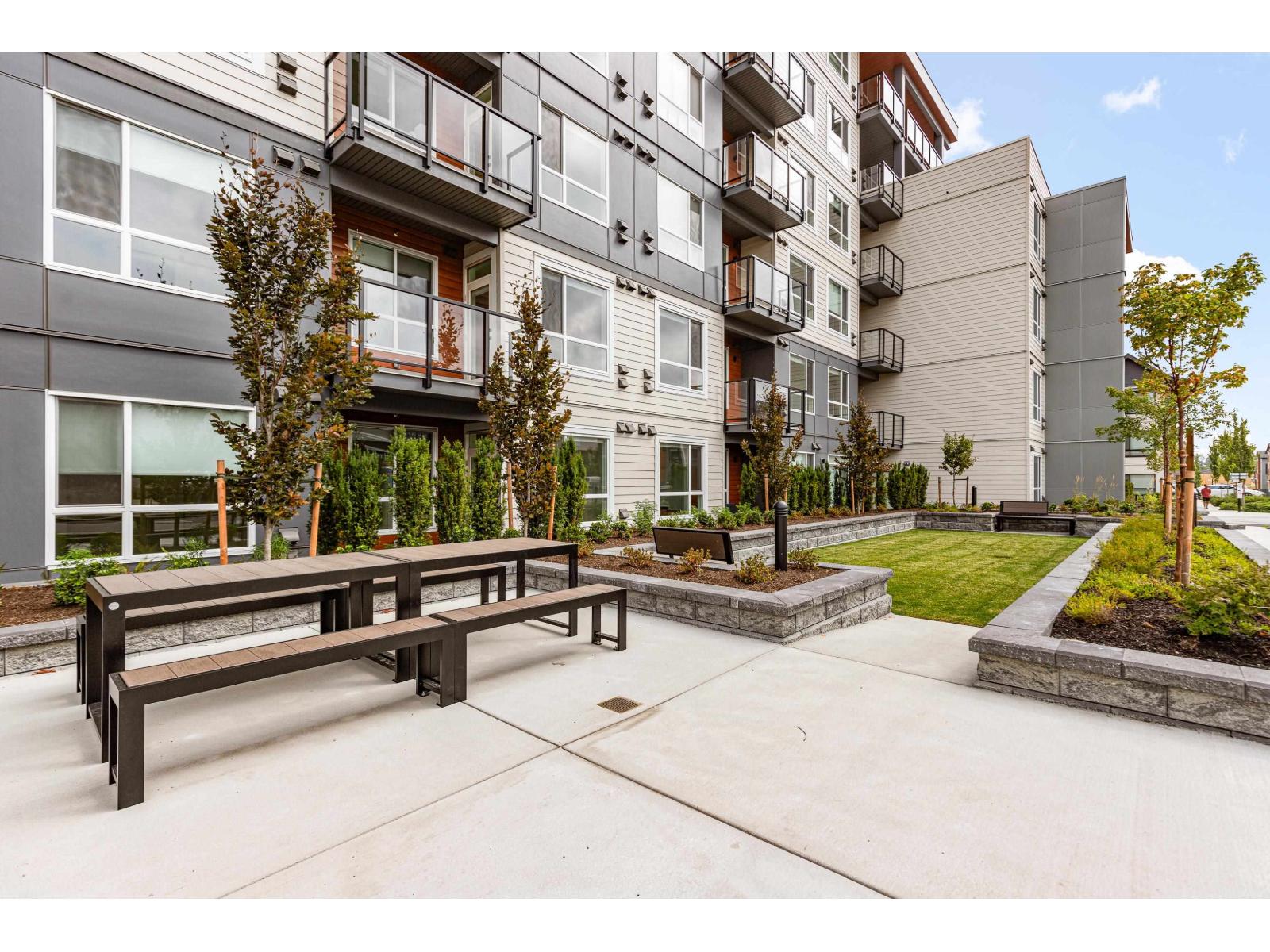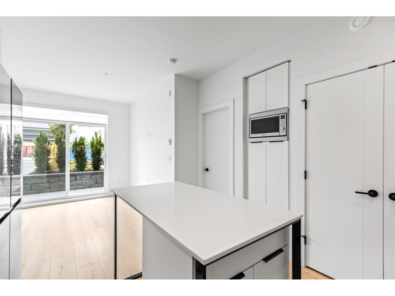 GARDEN WALKOUT OASIS! Welcome home to a stunning, newly built & move-in ready ground level home in highly anticipated HIGHSTREET VILLAGE. Rare chance to skip the presale process, enjoy your home today. SPACE! Spacious, functional 602t home boasts 9ft ceilings, bright+airy living, 1 bedroom w/expansive walk-in closet & functional den/office/nursery, dream kitchen, built-in storage solutions. CONVENIENCE! Step onto your patio, into town without the elevator. Enjoy green backdrop throughout! QUALITY! Luxury built by AB Wall Group, w/2-5-10 warranty. Bonus huge storage locker aside parking. LOCATION! Incredible position in Abbotsford's most Westerly setting minutes to Langley. WALKSCORE! Steps to Highstreet Shopping Mall, restaurants, daycare, at foot of the HWY! Airport a few minutes away! (id:58403)