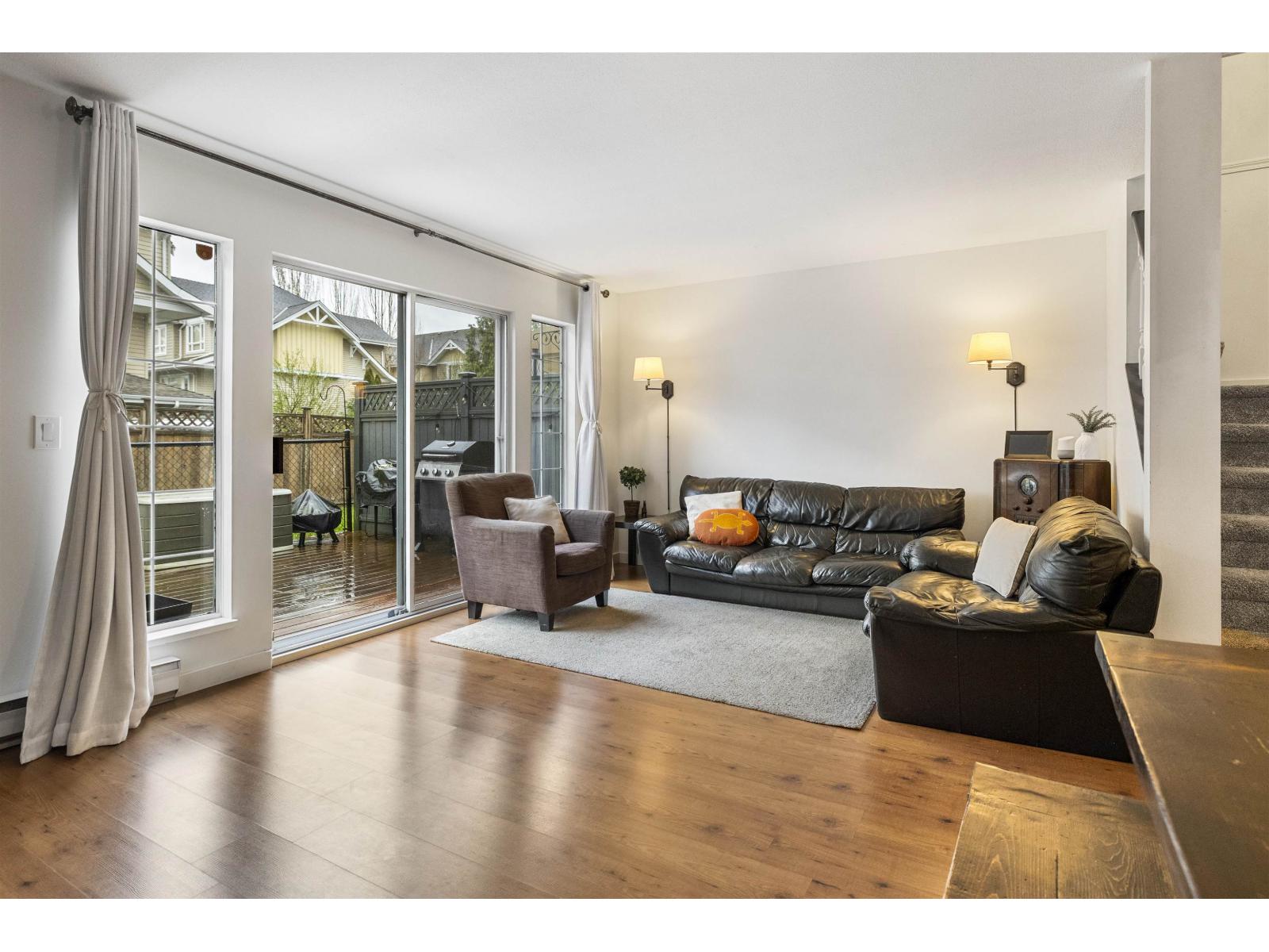 Beautifully updated 3 bed + den, 3 bath townhouse in family-oriented Garden Grove! Offering approx. 1,350 sq ft, this home features laminate flooring, newer paint, and updated kitchen with custom pullouts - perfect for busy family life. Thoughtful layout includes a powder room on the main, cozy gas fireplace, and a pantry for extra storage. Enjoy a large wood patio backing onto expansive lawn - ideal for kids to play or weekend BBQs. Spacious primary bedroom with full ensuite and lots of closet space, plus a versatile den that can serve as a home office or 4th bedroom. Just minutes to schools, parks, and Willowbrook Mall. 5 min from the future SkyTrain! Easy walk to Nicomekl Trail which is perfect for family outings. This home is perfect for young families looking for that extra space! (id:58403)