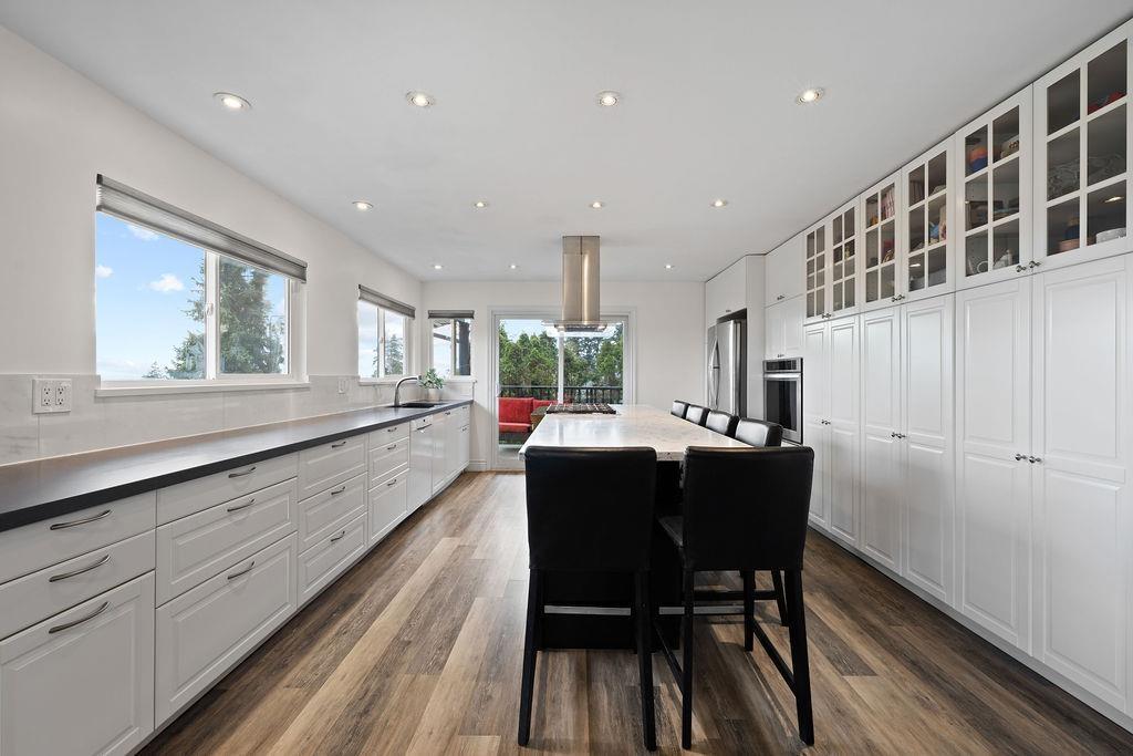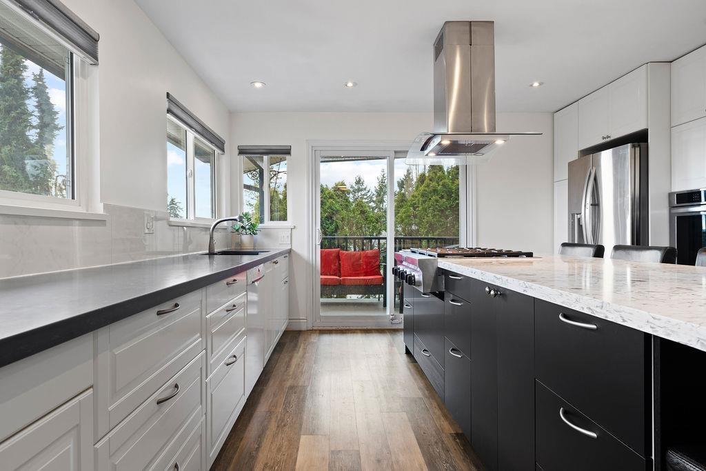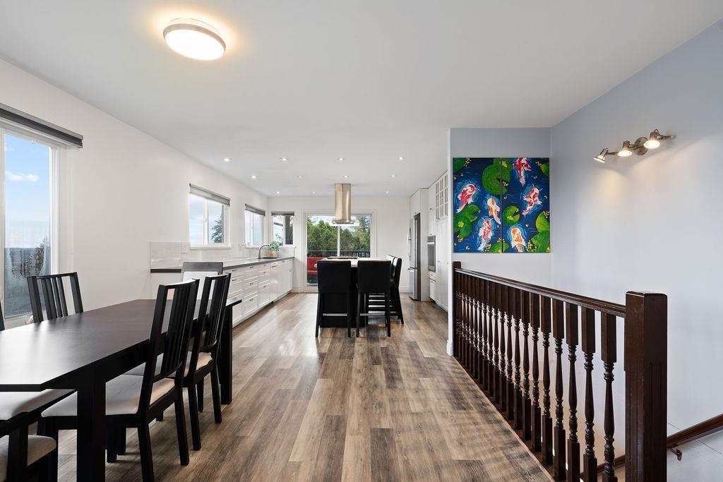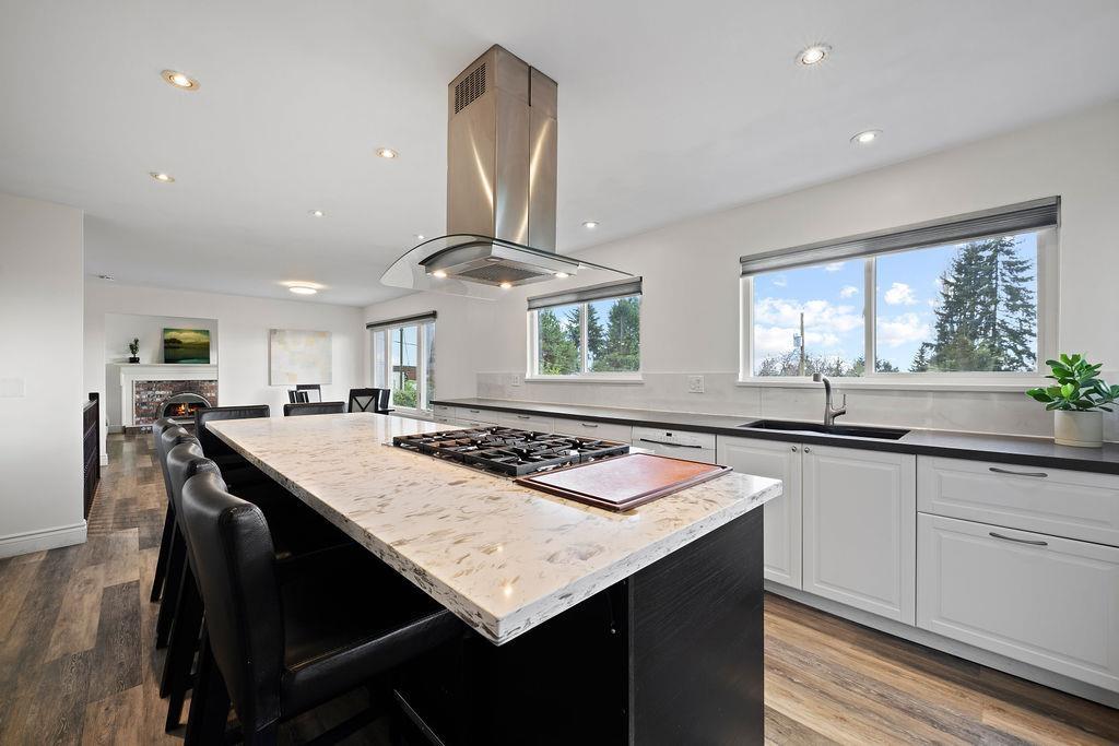 PANORAMIC VISTAS & MODERN UPDATES. Boasting one of the best vantage points in quiet Canterbury Heights, this 5-bedroom renovated residence offers breathtaking city views and unmatched versatility. The heart of the home is a beautiful designer kitchen featuring premium stone counters, custom cabinetry, and a massive oversized central island -a perfect hub for family meals and entertaining. The reimagined floor plan now offers 5 full bedrooms, including a lower level with two bedrooms providing excellent suite potential or a flexible space for a home gym or hobby room. Recently updated gutters (2021), and a new hot water tank (2022) provide peace of mind. Outside, the 8,900 sq. ft. lot features an irrigated gardener's paradise front yard and an expansive, private backyard with incredible potential for a custom play area or garden oasis. Includes a wood and gas fireplace, custom blinds, and a built-in workshop. Minutes to schools, parks, Burns Bogs and all amenities, this home is a gem. Open House April 25th 2-4 (id:58403)