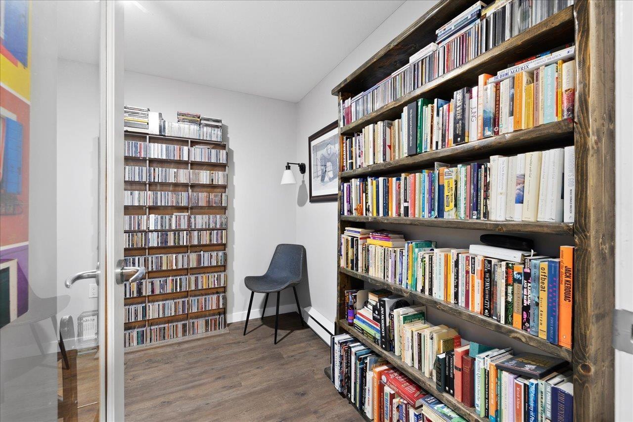 Enjoy tranquil GREEN SPACE VIEWS from this private ground-floor condo in coveted Muirfield Gardens! Move-in ready 2 bed+large den(or 3rd bdrm!) on QUIET SIDE of complex - not facing 152nd! Functional layout with no wasted space & luxury vinyl plank flooring throughout. Open kitchen boasts ample cabinet space, stone counters, breakfast bar & updated appliances. Spacious living/dining area with cozy gas fireplace (gas incl. in MF) opens to a fully covered patio-perfect for pets or entertaining! Bedrooms sit on opposite sides for privacy; primary has walk-in closet & ensuite. Large den is perfect for a home office or 3rd bdrm. Includes 1 parking (option to rent 2nd) & locker. Proactive strata with new depreciation report, roof (2024), & great amenities incl. guest suite & gym. Only steps to transit, shops & dining! Quick possession possible. (id:58403)