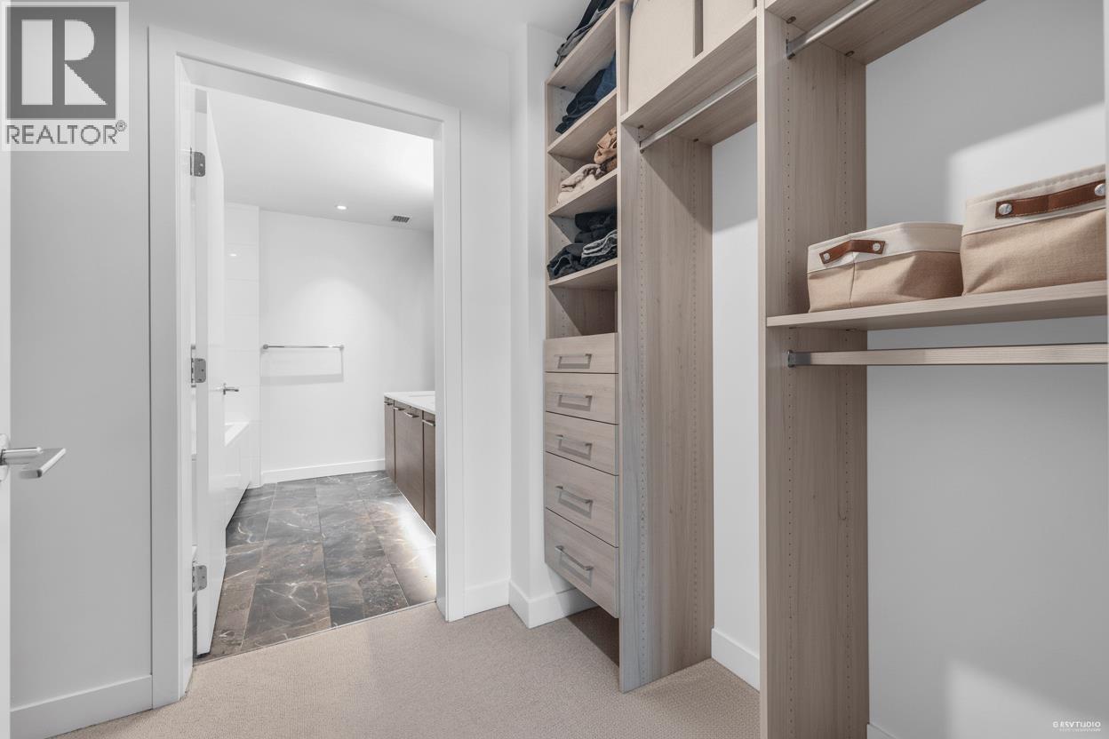 CONTESSA - NE corner 2 bdrm + den + laundry/storage room, 2 bath across from QE Park. Bright open layout with floor-to-ceiling windows and an expansive wrap-around patio that feels like townhouse living. Features over-height ceilings, A/C, Miele appliances, gourmet kitchen with quartz counters and backsplash, and wide-plank engineered hardwood floors. Spacious primary bedroom with walk-through double closets by California Closets and an ensuite featuring double vanities, a bathtub, and a separate shower. Central location-walk to Hillcrest, Oakridge Mall, QE Park, SkyTrain, and all amenities. Eric Hamber catchment. 1 EV parking & 1 bike locker included (2nd parking rental is possible for $100/month). (id:58403)