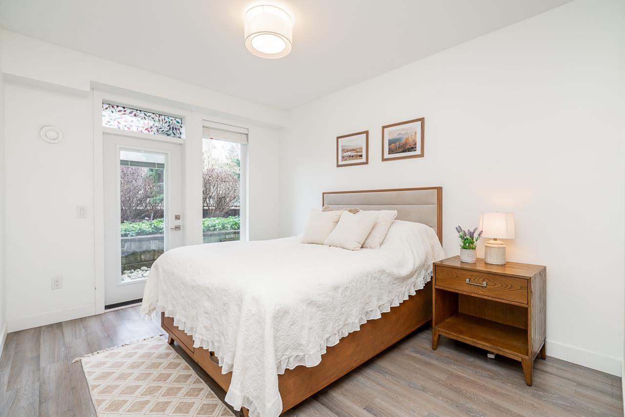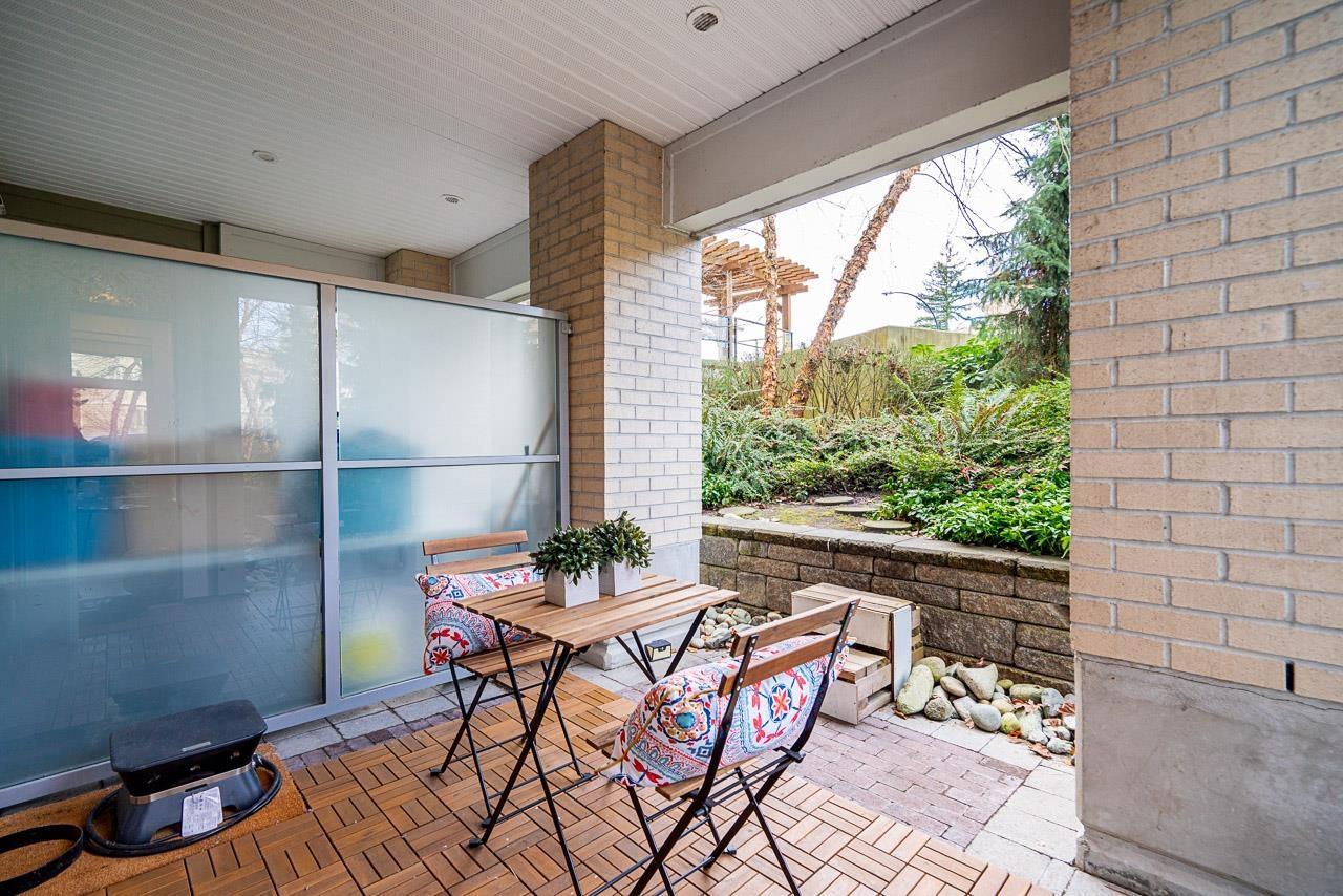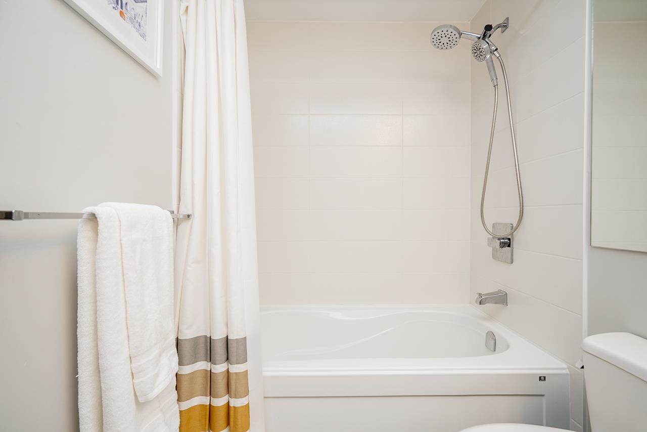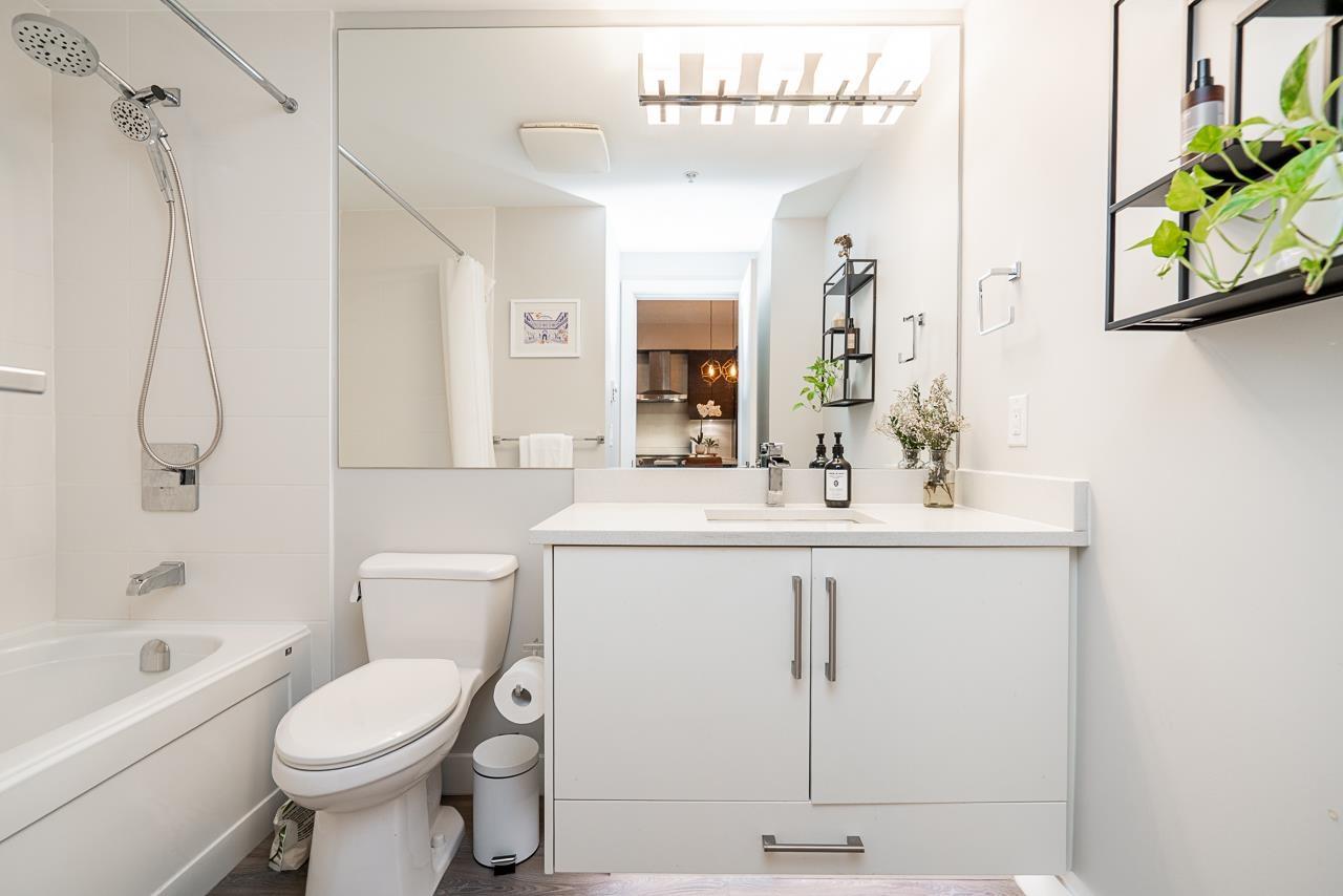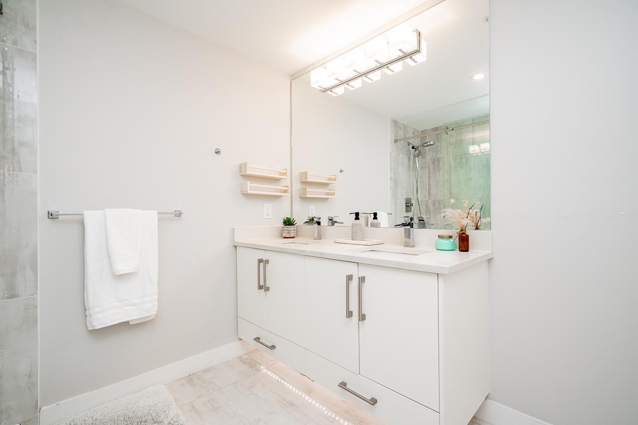 Ground-level 2-bedroom home at the sought-after Head Waters Club, offering a functional, well-designed layout and two private patios overlooking serene gardens. The modern kitchen features a spacious island and additional eating area-perfect for everyday living and entertaining. The primary bedroom boasts direct access to the second patio, a walk-in closet, and an ensuite with NuFloor heating and double sinks. Nestled in a tranquil setting with a peaceful trail to Morgan Creek. Includes 1 parking stall and 1 locker. Just minutes to The Shops at Morgan Crossing and Morgan Creek Golf Course, with quick highway access and steps to transit. Enjoy the amenities including a gym, clubhouse, and playground. (id:58403)