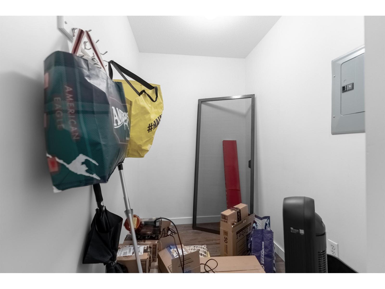 An amazing opportunity and MOVE-IN ready! This 1 bed + den/in-suite storage, 1 bath unit is a perfect starter home for a first-time buyer or someone looking to downsize and live mortgage-free. Located on the 1st floor above ground with a private balcony, plus access to a common rooftop terrace to relax and enjoy the views. A secured parking spot is included, though the upcoming SkyTrain station and nearby transit make car-free living easy. Walk to shops, cafes, pharmacies, banks, schools, City Hall, Timms Community Centre, and the Langley Seniors Centre. You'll also love the nearby nature trails and green spaces, perfect for peaceful walks or outdoor activity. Well-maintained building with fresh paint and new carpets in common areas. Rentals and cats allowed. Motivated seller! (id:58403)