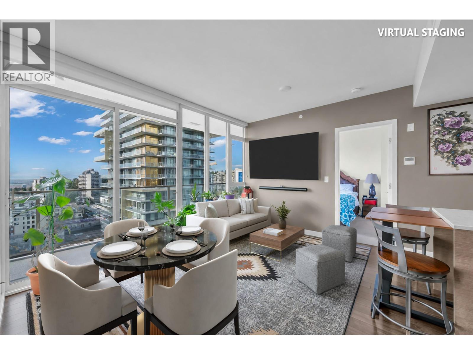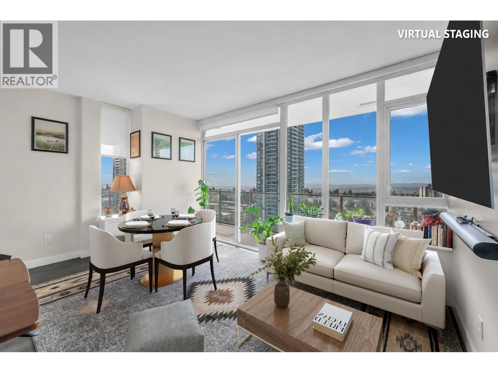 Welcome to GOLDHOUSE by Rize Alliance & HBA Interiors in the heart of Metrotown. This rare 3-bedroom, 2-bathroom home features one of the largest balconies with stunning unobstructed southeast views of the city and park. The home offers a premium Armony Cucine kitchen with integrated Bosch appliances, modern finishes, and central A/C. Meticulously maintained by the owner, the home underwent over $15,000 in thoughtful upgrades last summer, including a custom Murphy bed, upgraded bathroom cabinetry, and an electric heated toilet. Enjoy 24-hour concierge service and over 30,000 square ft of luxury amenities. Steps to Metropolis at Metrotown, Crystal Mall, Bonsor Community Centre, Burnaby Public Library, Central Park, and Metrotown SkyTrain Station. Bonus: 2 parking stalls and 1 locker. ** OPEN HOUSE MAR 14, SATURDAY 2PM-4PM ** (id:58403)