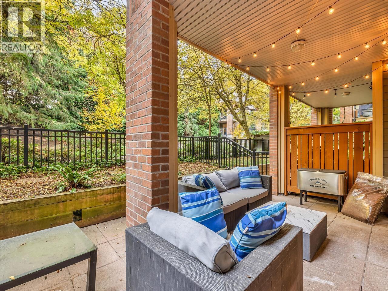 Discover garden-level living in the heart of North Van´s Central Marine district. This 2 bed, 2 bath home offers 970 square ft of thoughtfully designed interior space and a rare 200 square ft private garden terrace perfect for morning coffee, outdoor dining, or peaceful relaxation. The bright, open-concept layout features a modern kitchen with stone countertops and stainless steel appliances, along with two full bathrooms including a ensuite. Ideally located near Heywood Park and Capilano Mall, with shops, cafes, transit, and trails just steps away. Includes a storage locker and two secure parking stalls, one being oversized. Pet and rental friendly. (id:58403)