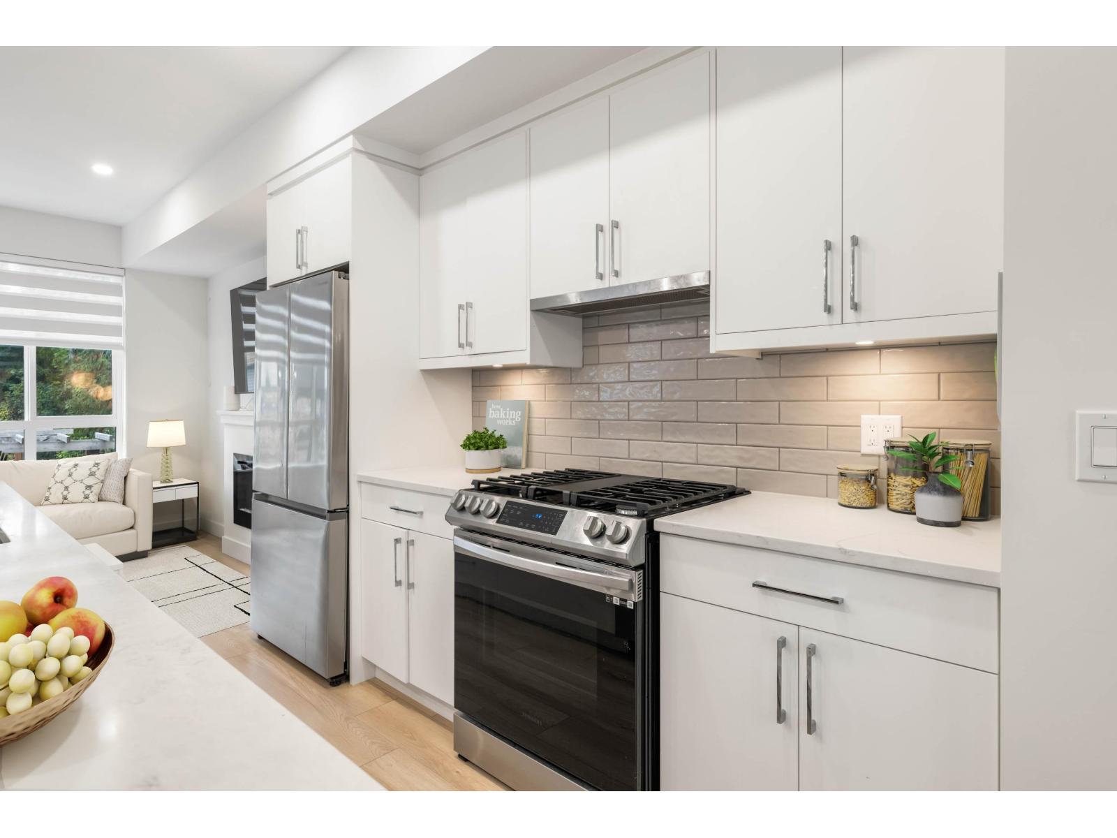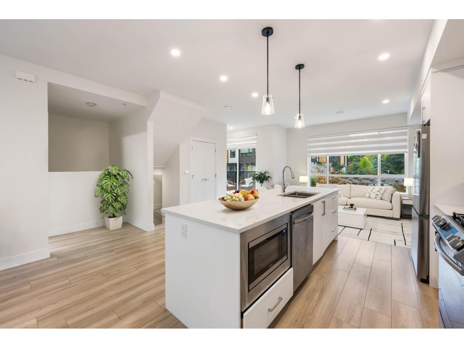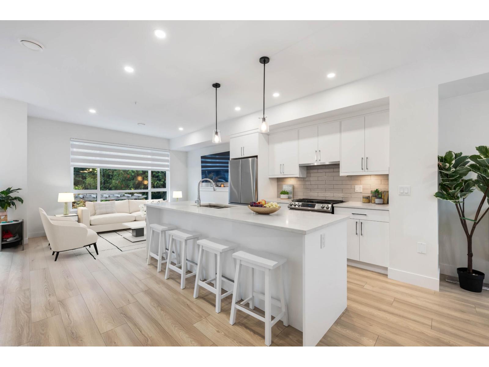 Versatile and beautifully designed, this 4 bed, 4 bath end unit at Prosper features a nearly self-contained one-bedroom with its own bathroom and private entrance - perfect for extended family or a homestay student. Almost 1,900 sqft of modern living in the heart of Willoughby. Enjoy an open-concept main floor with a sleek kitchen, gas range, and spacious living area. Upstairs you'll find generous bedrooms and a serene primary suite. Double garage, private patio, and walkable to parks, and all levels of schools, & Carvolth Exchange. This is the best buy on the market, don't miss it! (id:58403)
