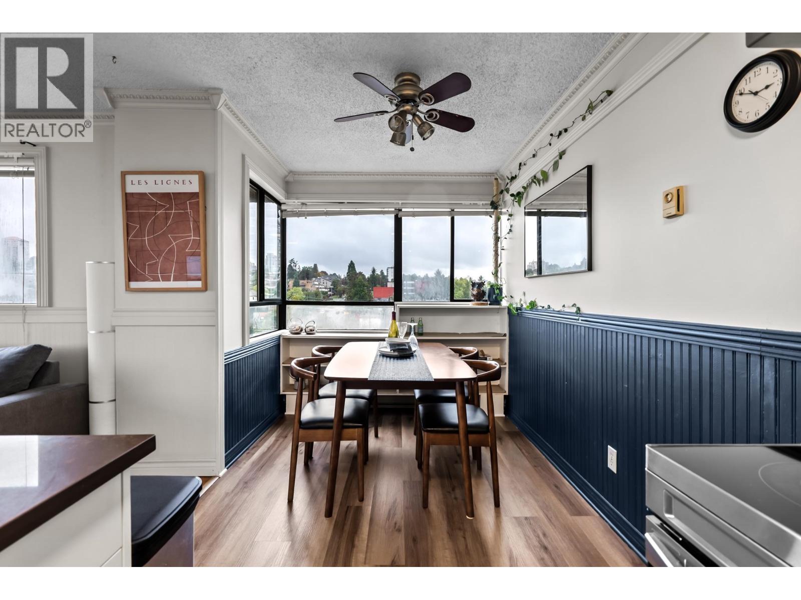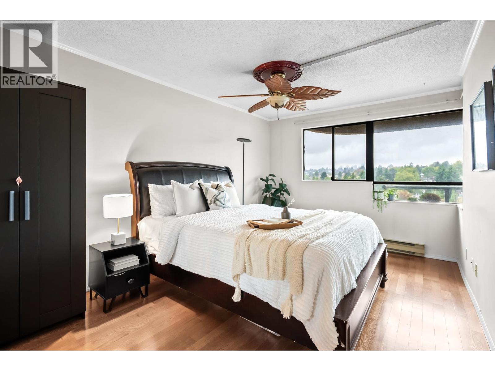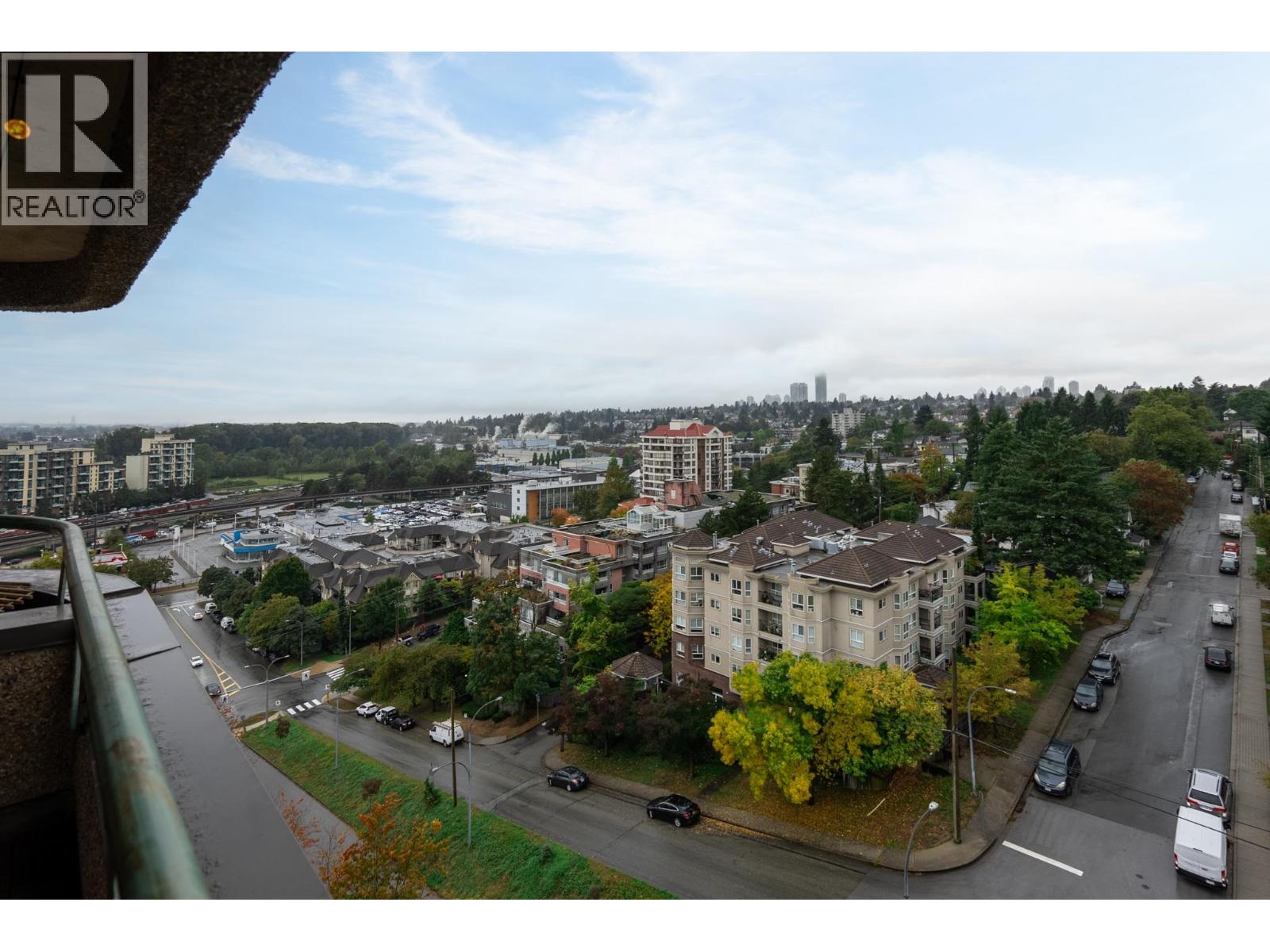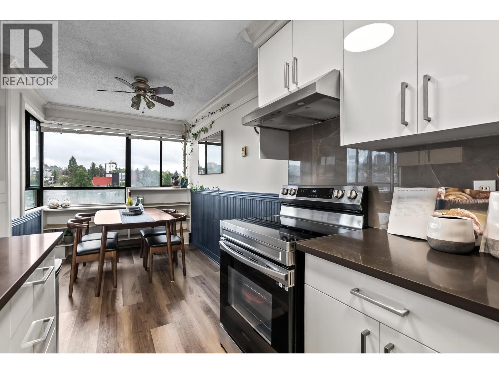 Great value in this light and bright corner 2 Bedroom + 2 Bathroom Penthouse level unit in the heart of New Westminster ! This home boasts an extremely large Living Room with plenty of room for entertaining & is flooded with natural light. The recently renovated kitchen features bright white cabinetry, quartz countertops & stainless steel appliances. The dining room is situated off of the kitchen, framed by windows overlooking the open view. Bring your house sized furniture, as the primary suite is large enough for a king sized bed & includes an ensuite. This building features outdoor pool, games room, & underground parking. Walking distance to New Westminster Skytrain Station, Douglas College, grocery stores, restaurants & more. Comes with 1 Pkg & 1 stg. Call for your private showing ! (id:58403)