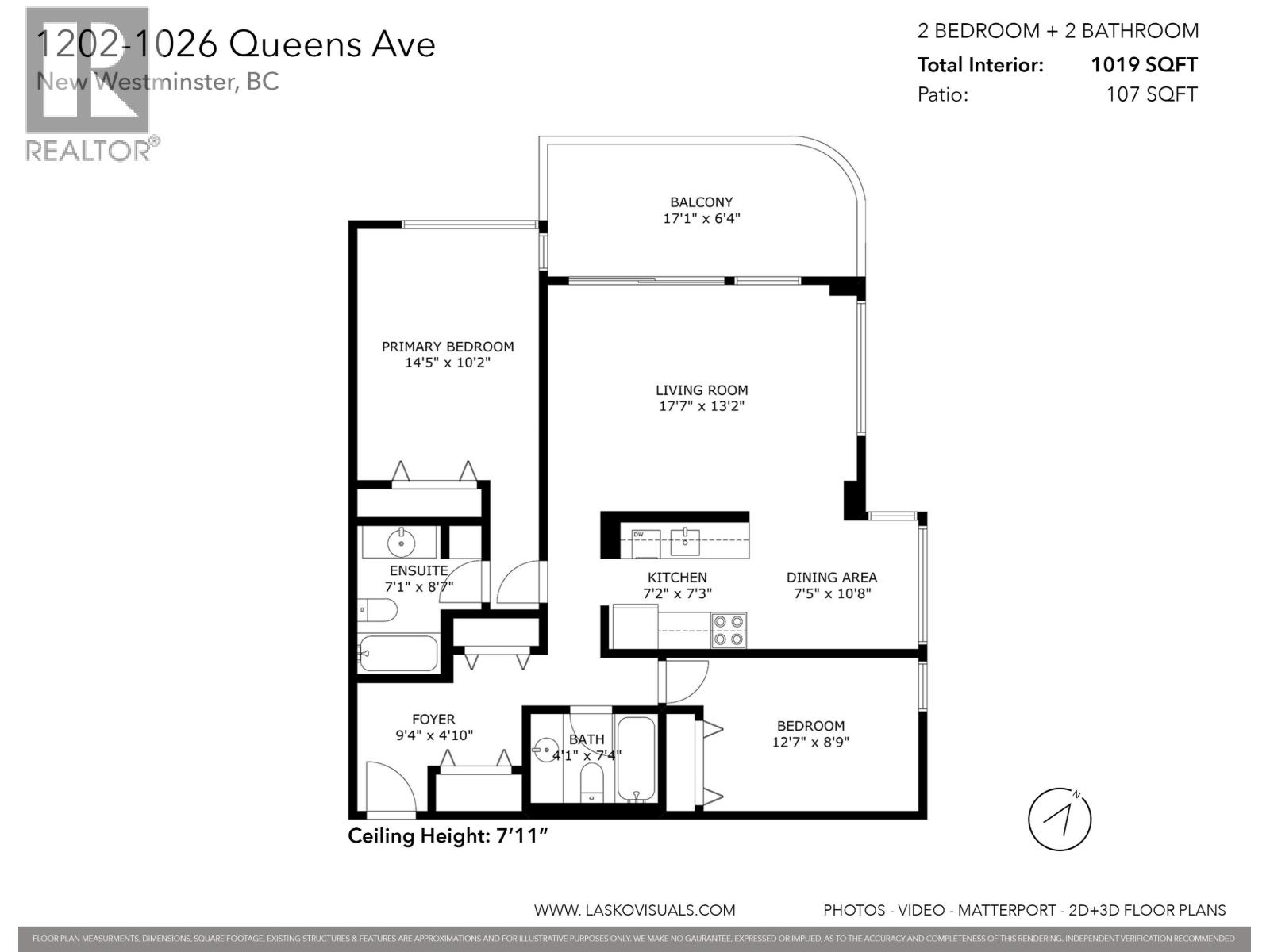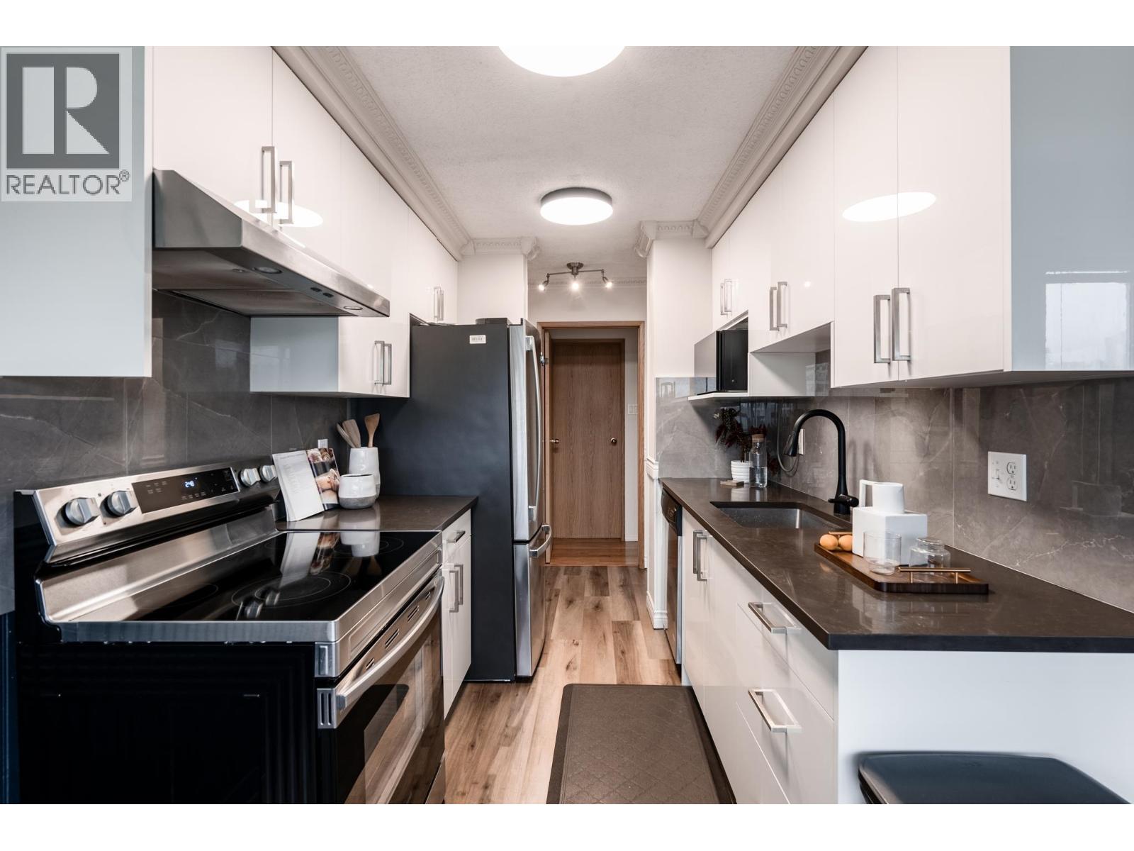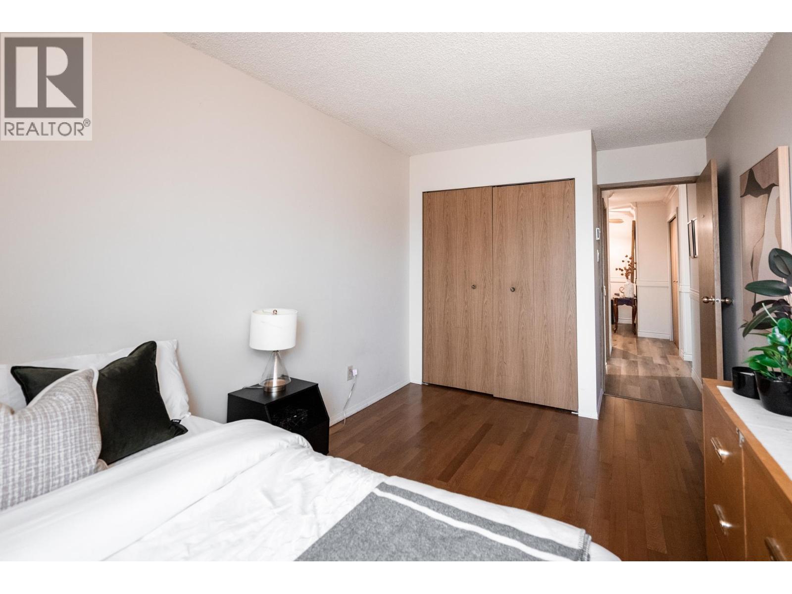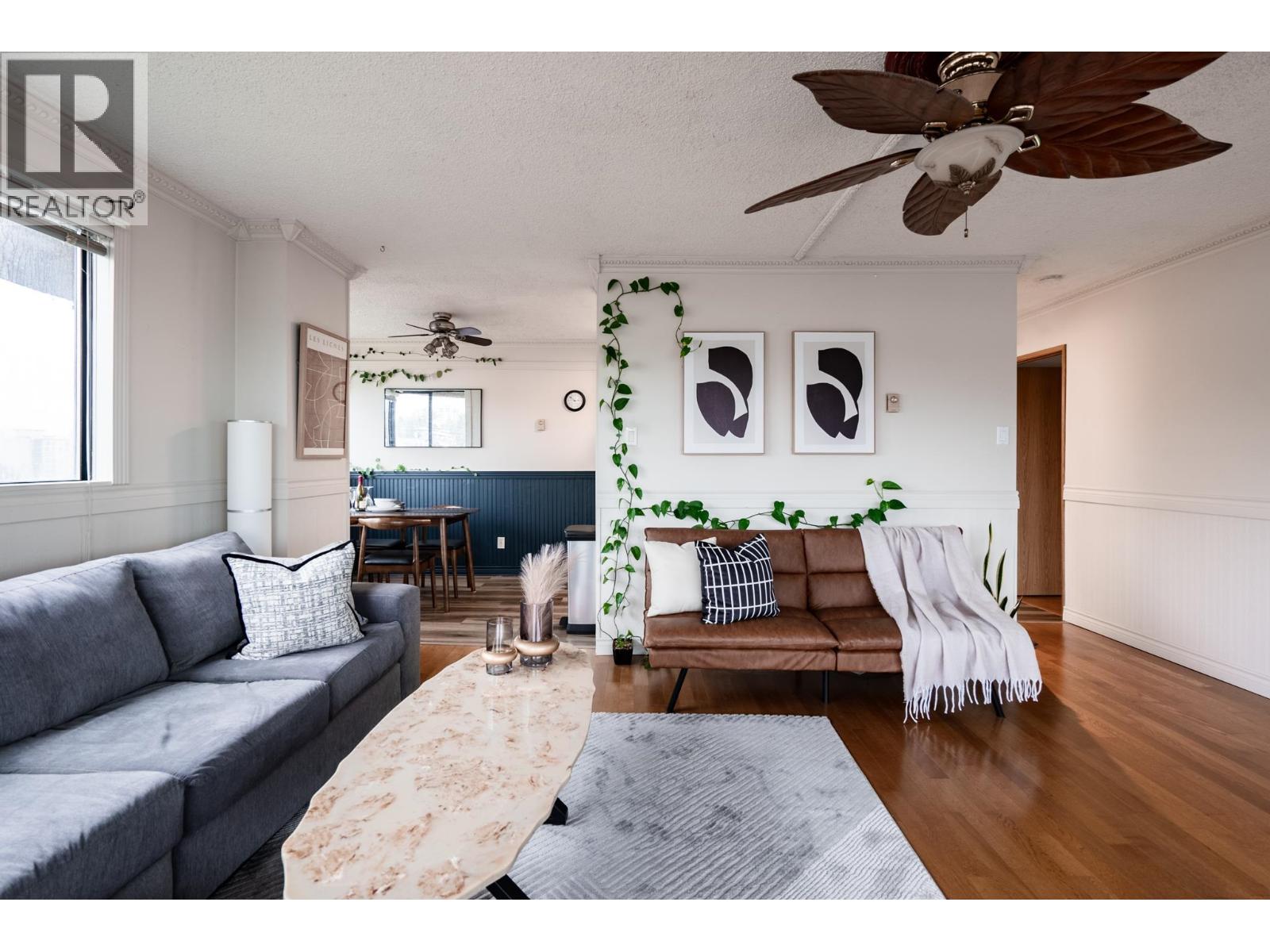 Great value in this light and bright corner 2 Bedroom + 2 Bathroom Penthouse level unit in the heart of New Westminster ! This home boasts an extremely large Living Room with plenty of room for entertaining & is flooded with natural light. The recently renovated kitchen features bright white cabinetry, quartz countertops & stainless steel appliances. The dining room is situated off of the kitchen, framed by windows overlooking the open view. Bring your house sized furniture, as the primary suite is large enough for a king sized bed & includes an ensuite. This building features outdoor pool, games room, & underground parking. Walking distance to New Westminster Skytrain Station, Douglas College, grocery stores, restaurants & more. Comes with 1 Pkg & 1 stg. Call for your private showing ! (id:58403)