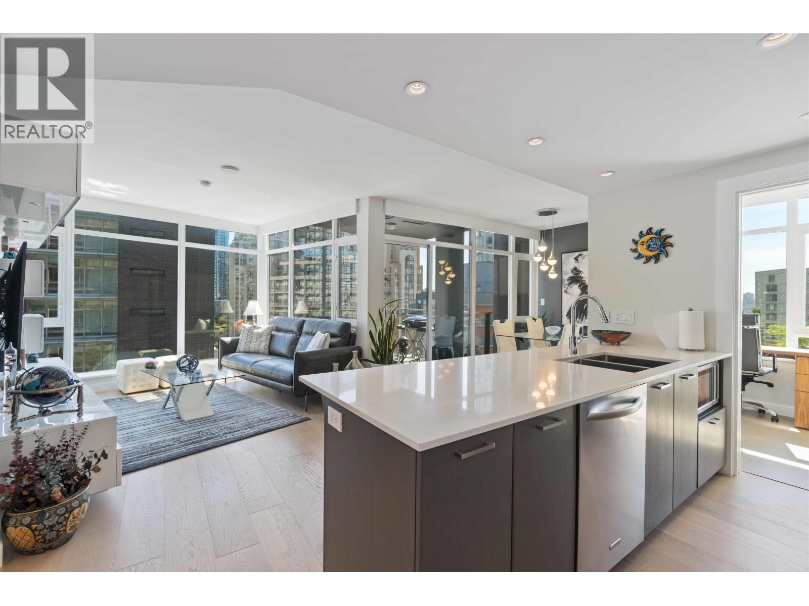 Welcome to The Mark, one of Yaletown´s most sought-after addresses! This spacious 1-bedroom + Den, 1-bath home on the 12th floor offers bright, open-concept living with air conditioning for year-round comfort. Tastefully updated with new hardwood flooring, updated appliances & custom millwork throughout. Enjoy sleek modern finishes, floor-to-ceiling windows, and a gourmet kitchen perfect for entertaining. The building features over 10,000 sqft of top-tier amenities, including a 24/7 concierge, fitness centre, outdoor pool, and rooftop lounge. This home offers excellent investment potential in a prime downtown location, just steps from the seawall, restaurants, and transit. Text now to book your private appointment! (id:58403)