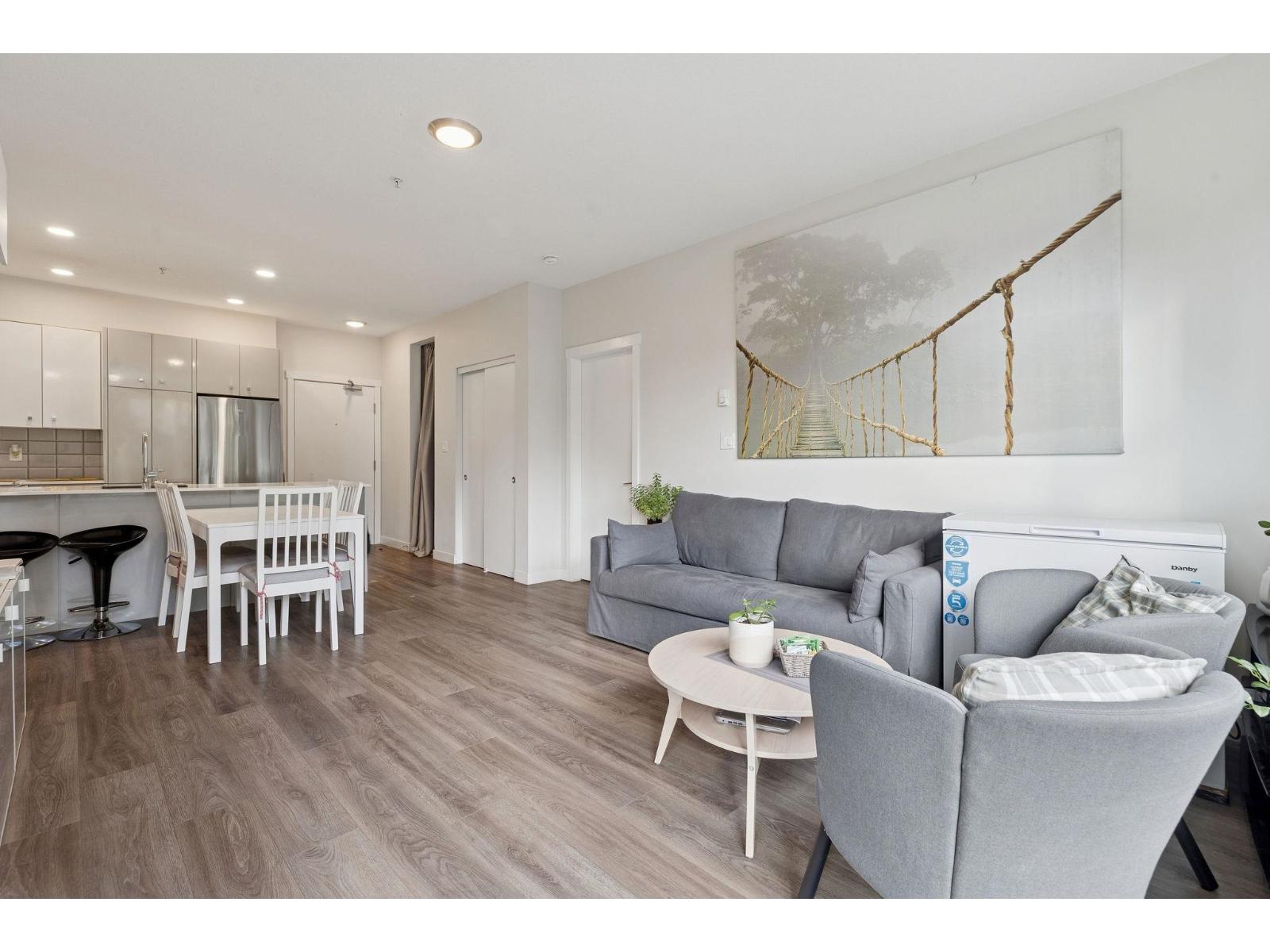 Welcome to The Maverick! This ground-level unit offers a functional layout with 2 bedrooms + den in a well-built 5-storey concrete-style development near Surrey Central. Featuring 9-ft ceilings, laminate flooring, and spacious walk-in closets in both bedrooms, this home is thoughtfully designed for comfort and versatility. The den makes an ideal home office or guest room. Enjoy your own large private fenced patio, perfect for entertaining or relaxing outdoors. Located just a short walk to Gateway SkyTrain, shopping malls, and all amenities. Includes 1 parking and 1 storage locker. OPEN HOUSE Sun., Nov. 23 @ 2 - 4pm. (id:58403)