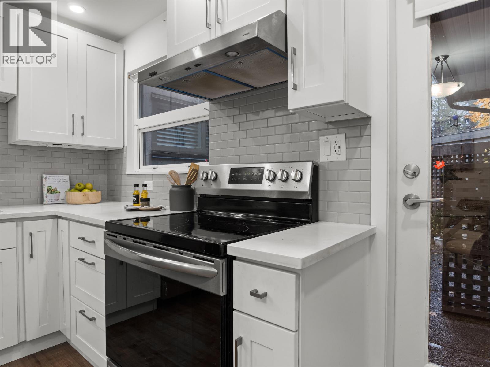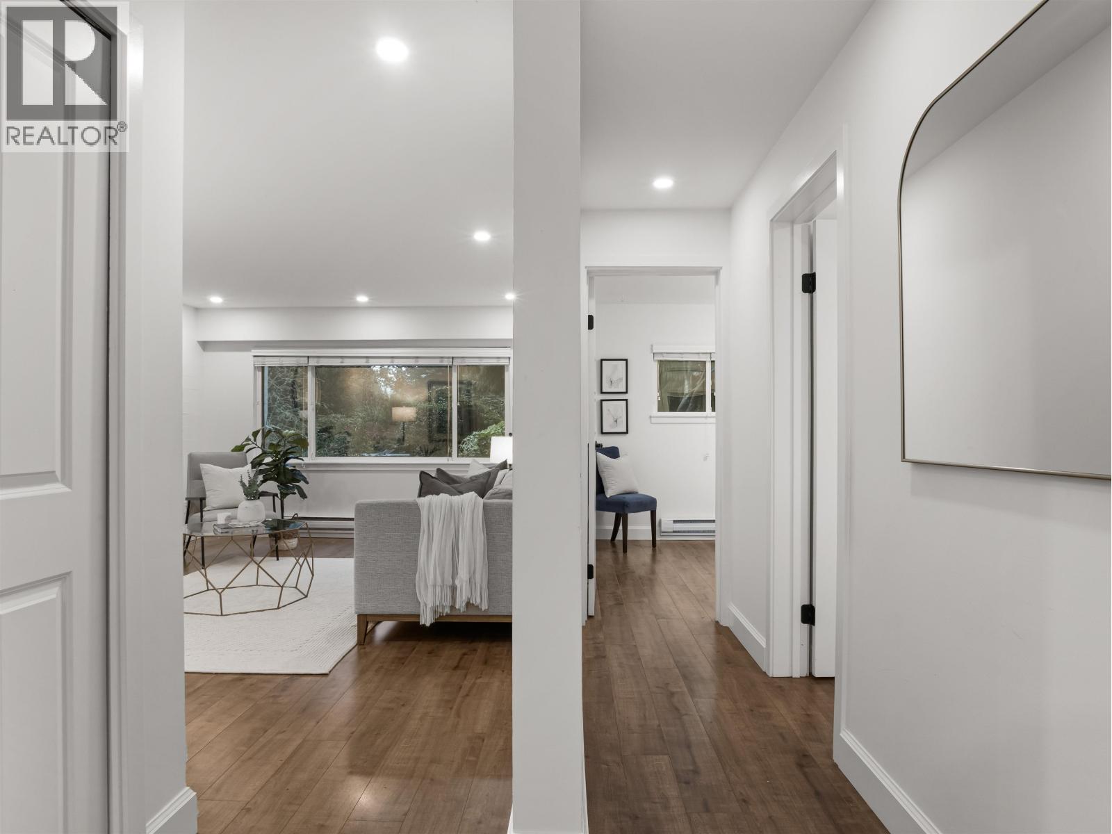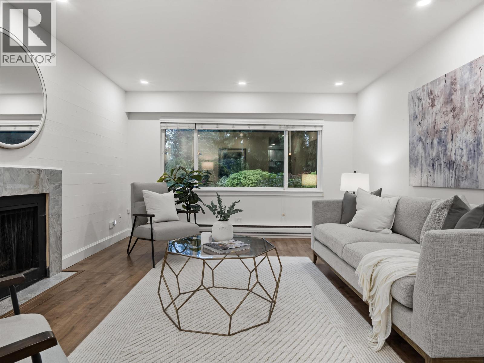 Great value for this updated 2BR / 1BA ground level home in Pemberton Heights - one of the North Shore's most desired neighbourhoods. An elegant living room features a wood fireplace, recessed lighting and a large window with a tranquil, treed view. The fully updated kitchen features stainless steel appliances, stone counter tops and lots of cabinet space with room for a dining table. The laundry room has additional storage and side by side machines. A clean, modern black and white theme in the fully updated bathroom. The primary bedroom has a private treed view and both bedrooms are well sized. This corner unit features a spacious enclosed patio area great for summer barbecues plus covered parking, storage locker. Pet friendly, reasonable number of cats/dogs allowed. Capilano IB catchment (id:58403)