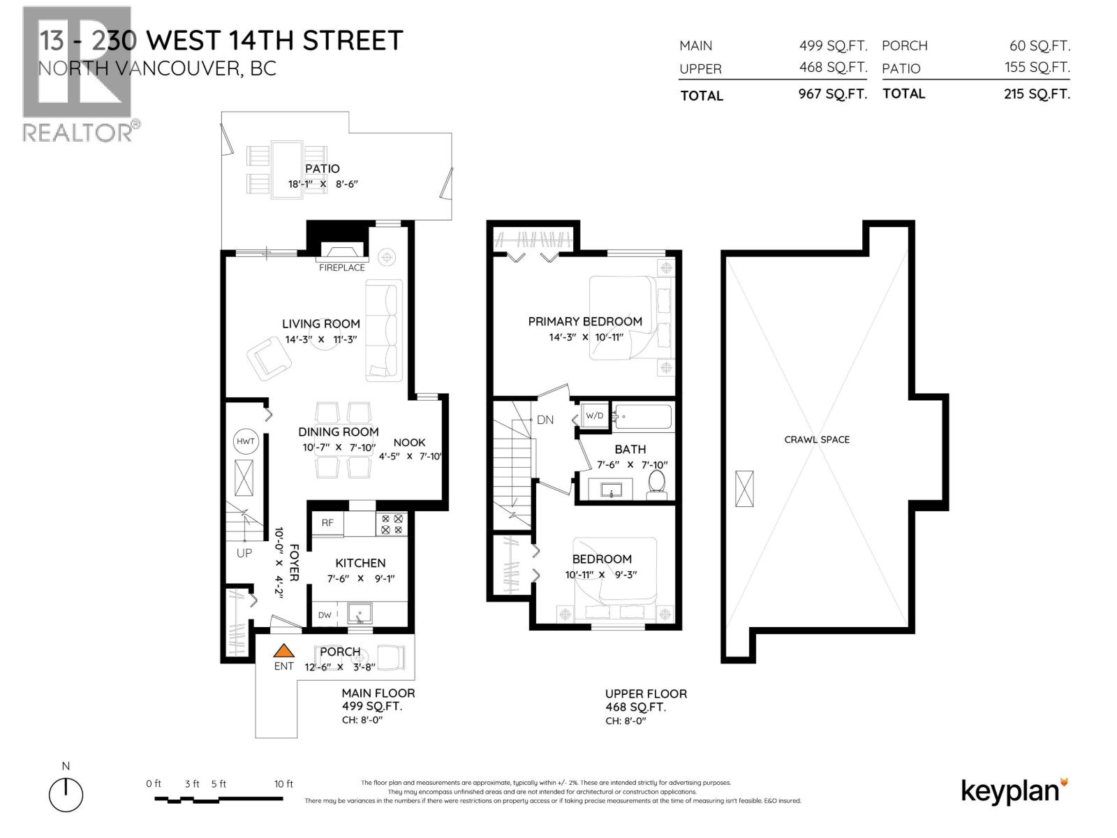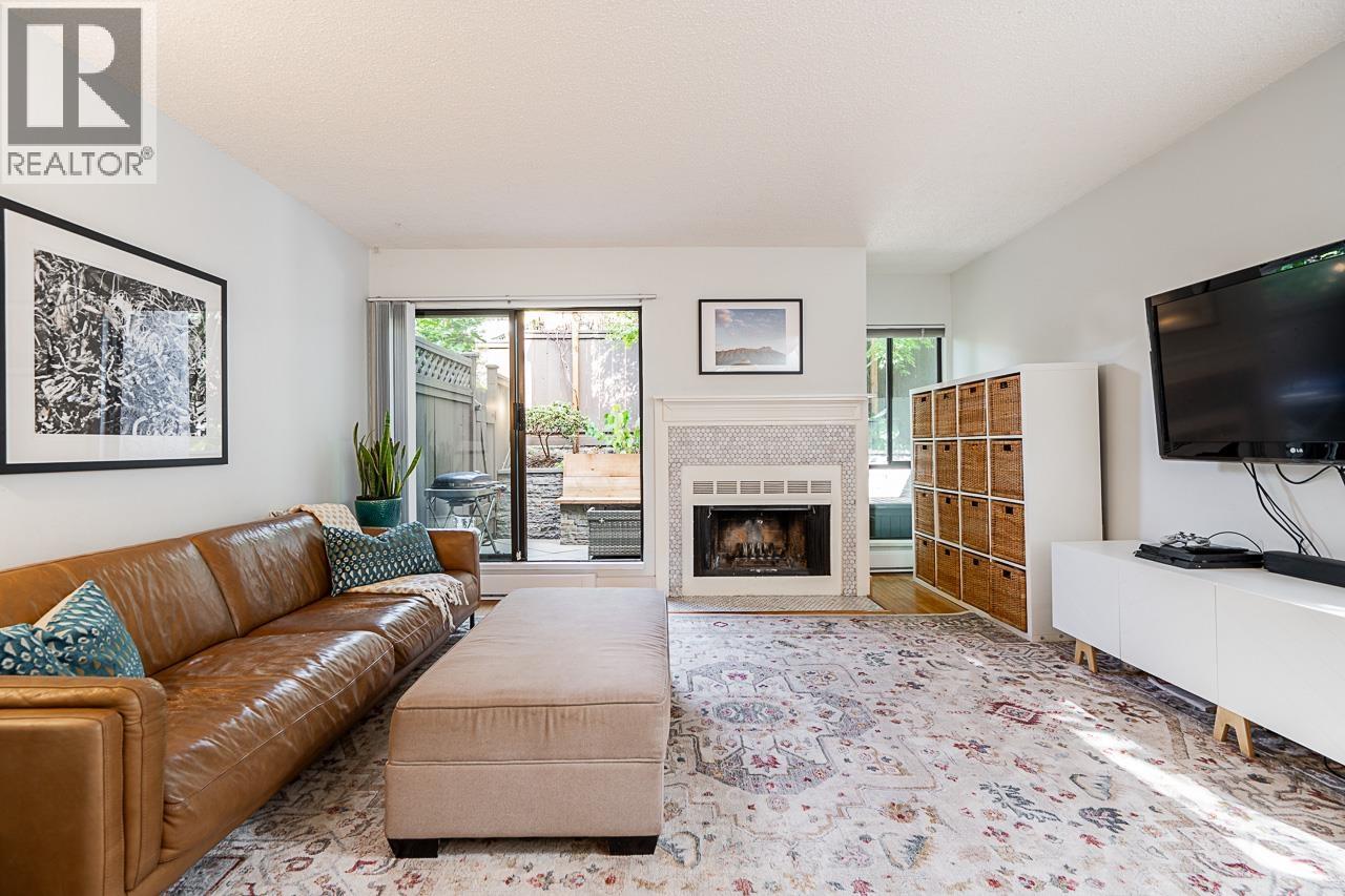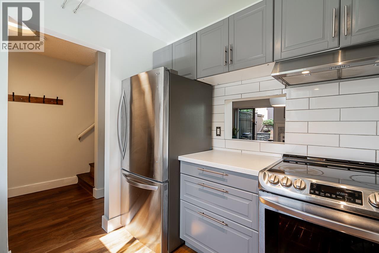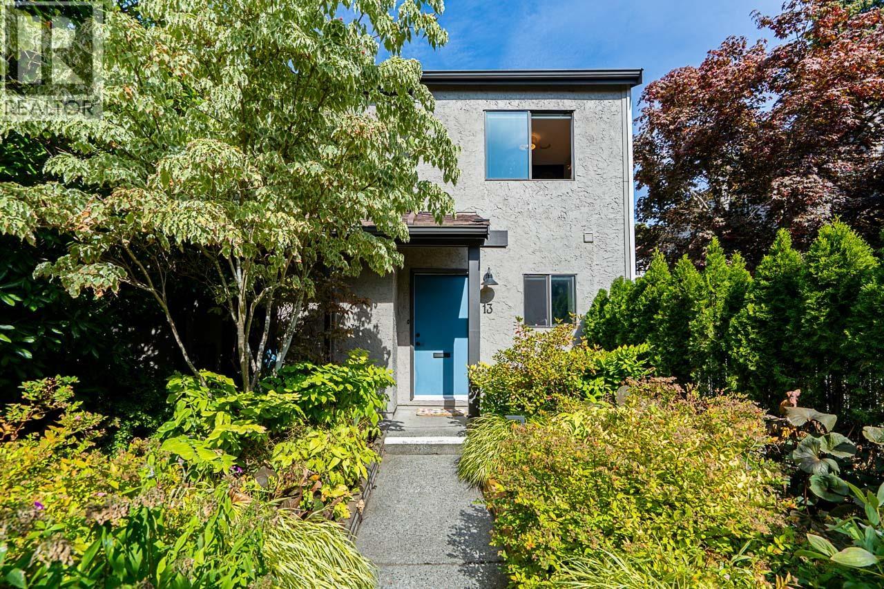 Why buy a condo when you can have a townhouse with your own front door? Tucked away at the back of the complex, #13 is a private 2-bedroom, 2-level corner home with just one neighbour. On the main floor, you´re greeted with a tastefully updated kitchen, natural light streaming through extra windows, a cozy wood-burning fireplace, a computer nook, and sliders to a private, fully fenced patio - perfect for al fresco dining, gardening, and pets. Upstairs, you´ll find two generous size bedrooms, an updated bathroom, and full-size front-load washer and dryer for everyday convenience. Set in a family-oriented complex, this home is ideal for young families or first-time buyers, with both levels of schools nearby. Custer Place is located in a quiet pocket of Central Lonsdale where professional services, dining, shops, neighbourhood parks, and transit are steps away. Showings By Appointment (id:58403)