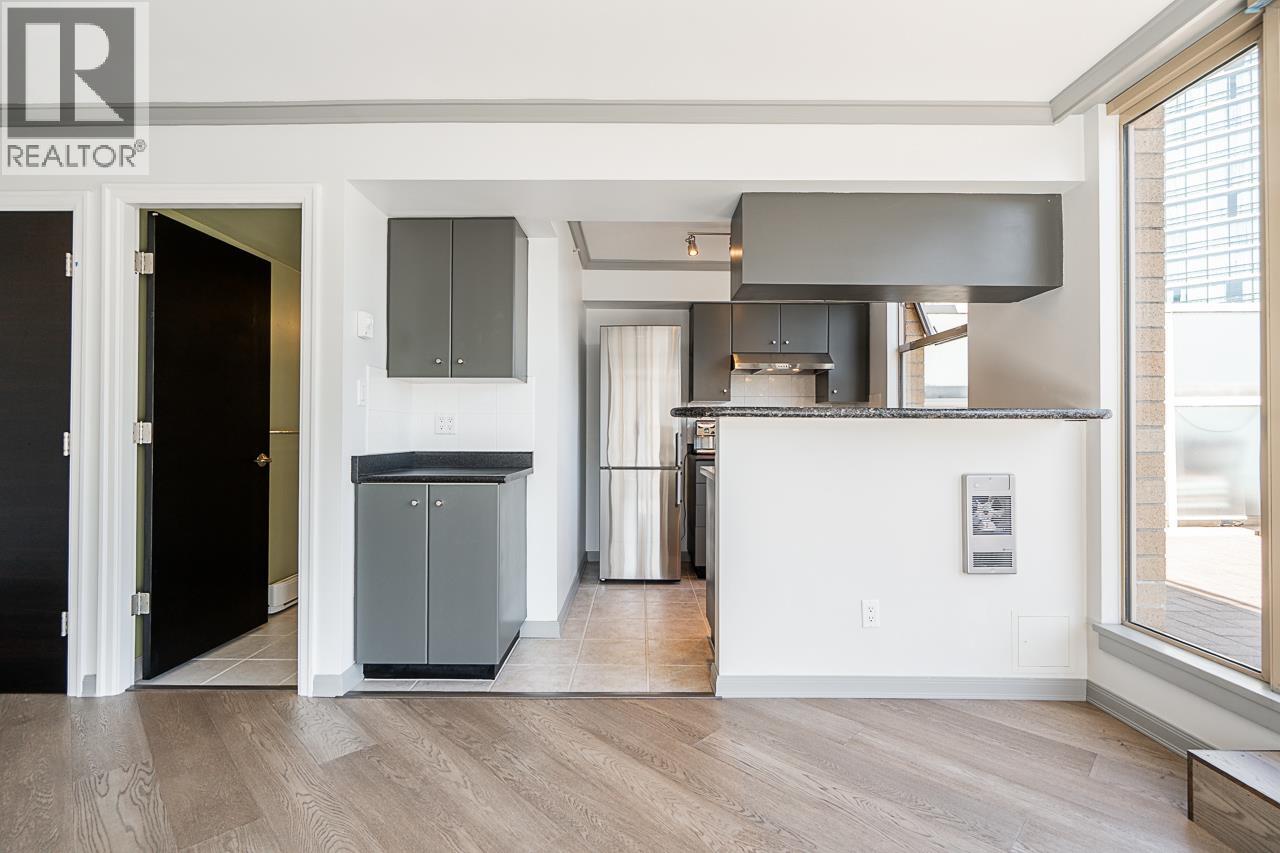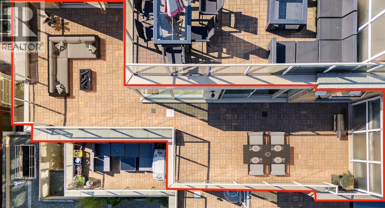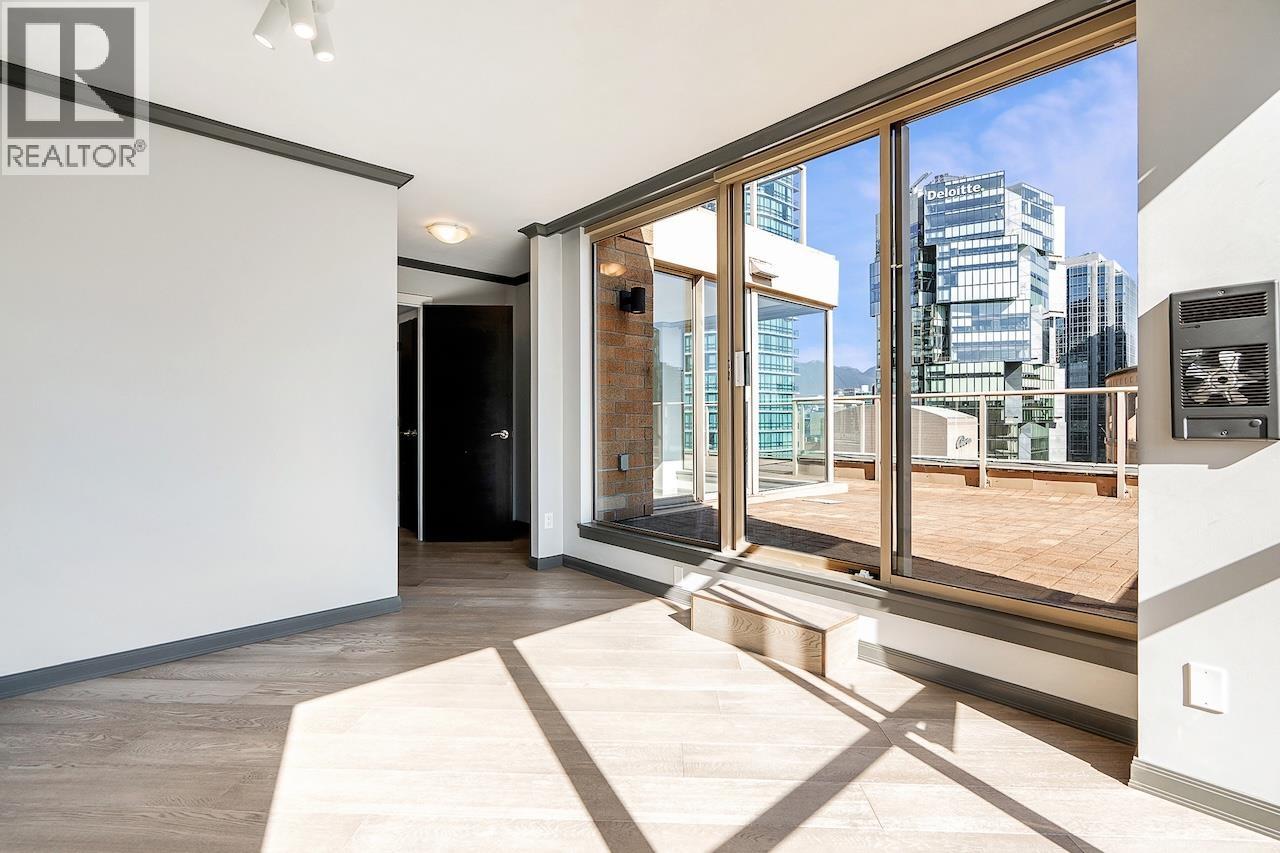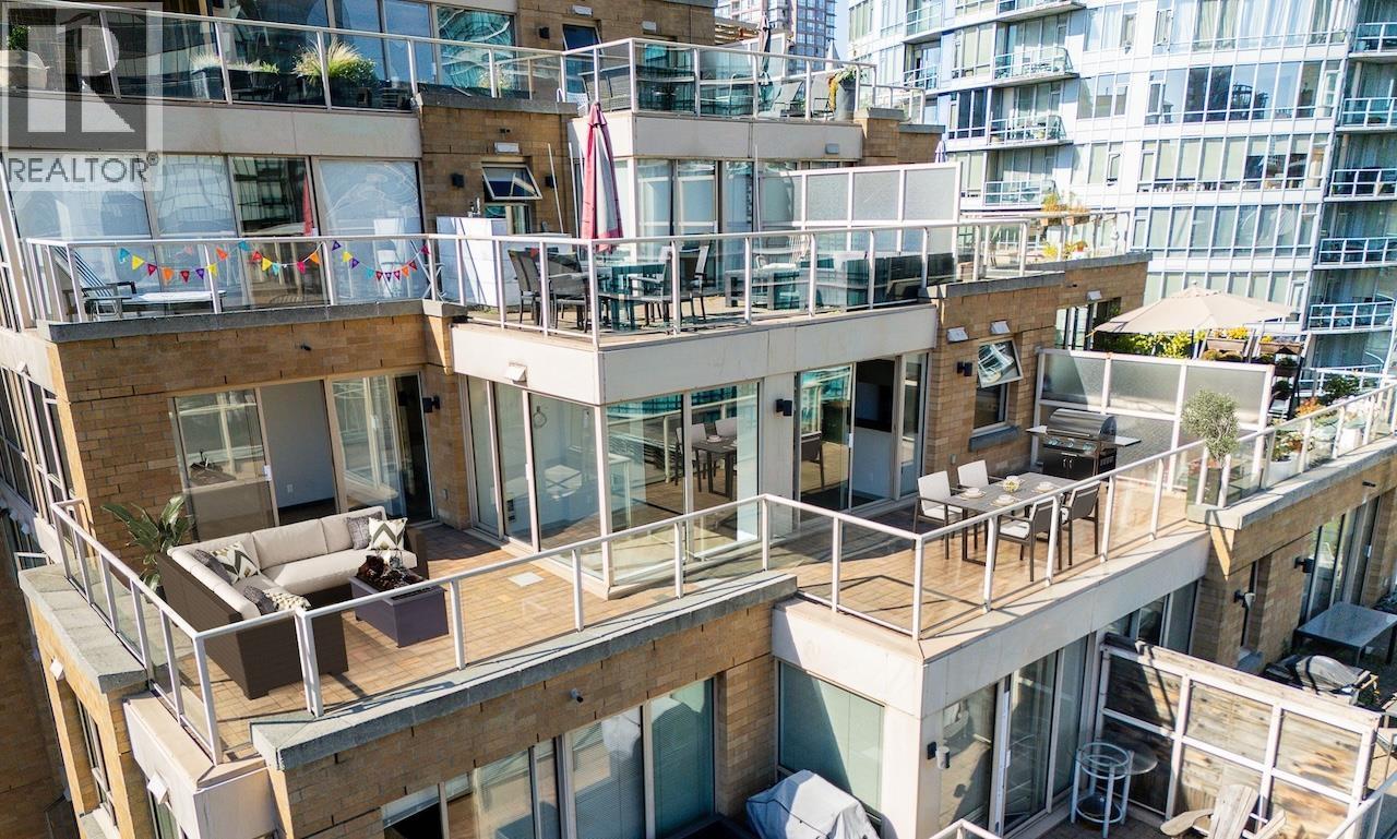 Welcome to the Galileo! This rare 1 bed + 2 full bath corner home offers 729 sqft of interior space plus a showstopping private 468 sqft terrace overlooking Library Square. Bathed in natural light from floor-to-ceiling windows, this open concept layout flows effortlessly and can easily convert to 2 bedrooms. Many updates from new oak floors, fresh paint, stainless steel appliances and an efficient Ouellet heating system. Includes 1 parking and 1 storage locker. Building perks: gym, hot tub, sauna, lounge, courtyard, visitor parking, caretaker, refreshed lobby, re-piped (2017) and roof (2015). Pets and rental friendly. Unbeatable Downtown location steps to Robson, Yaletown, top offices (Amazon, Deloitte, Microsoft, SAP) and both SkyTrain lines. Open: Sat Oct 4 2-4pm & Sun Oct 5 12-1:30pm. (id:58403)