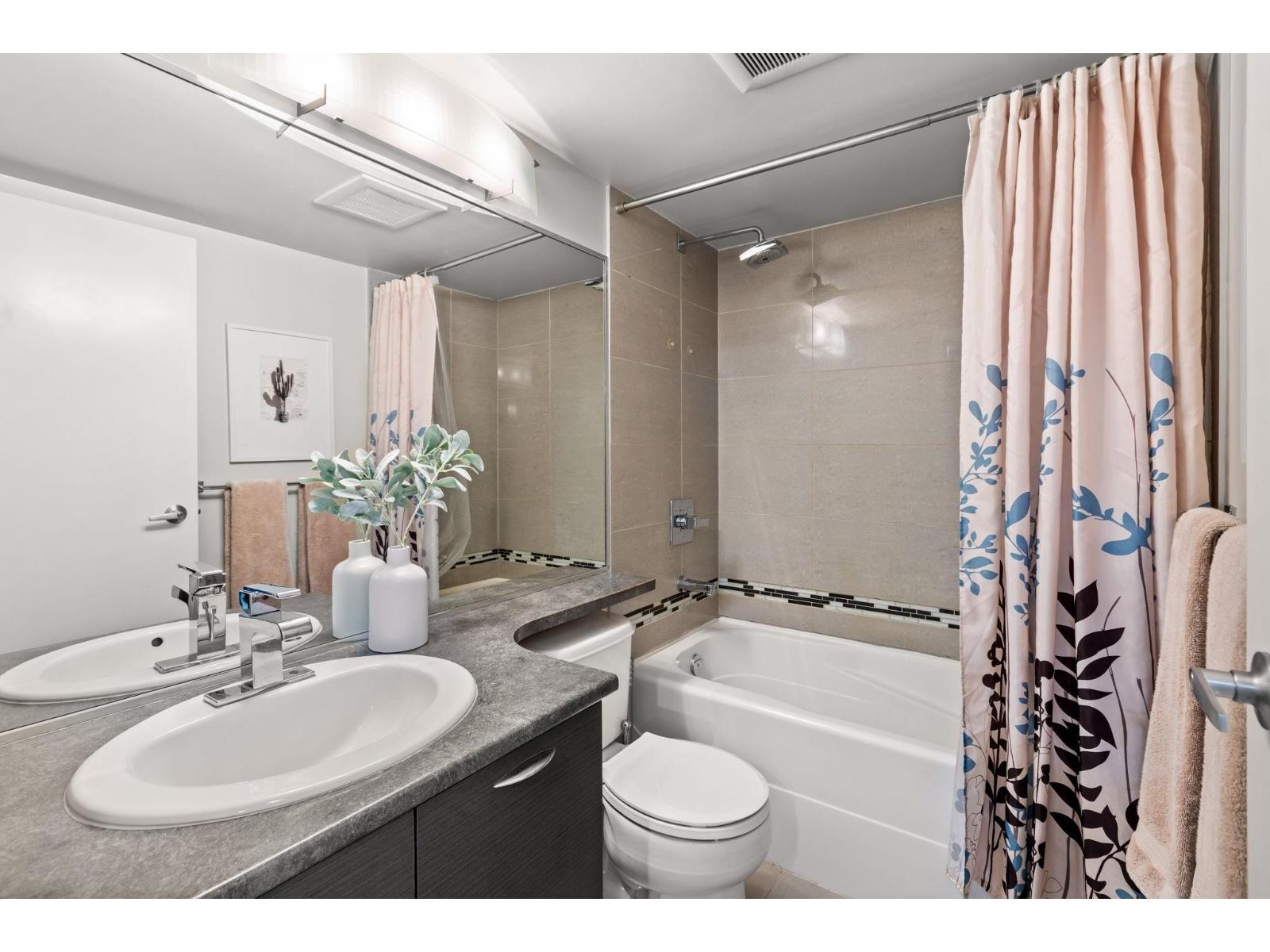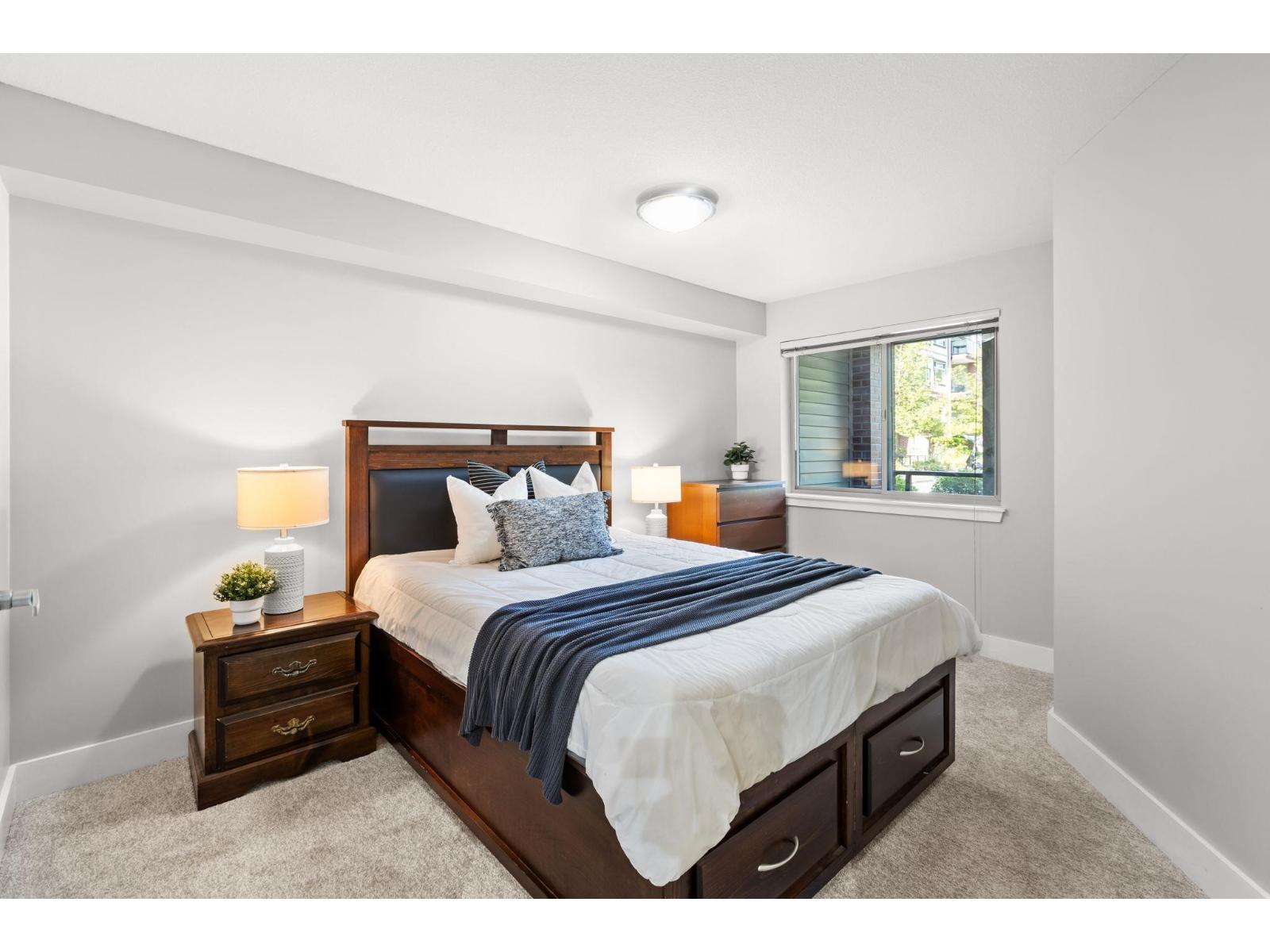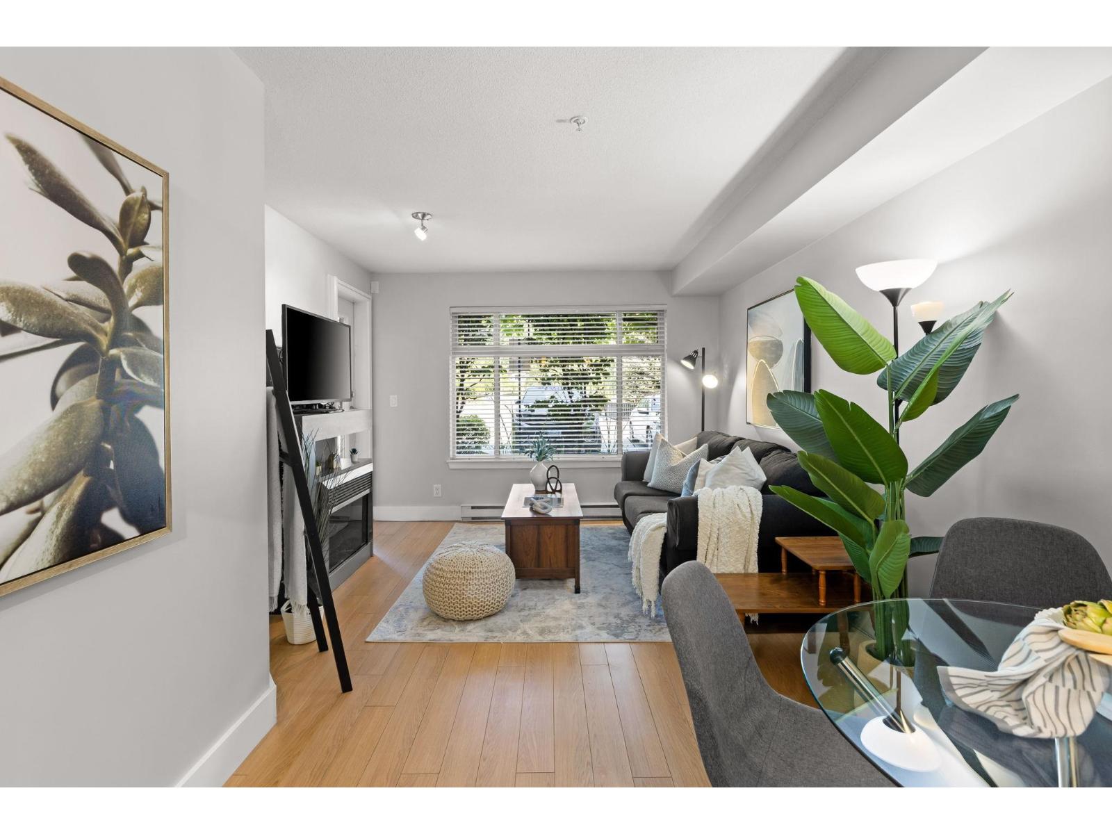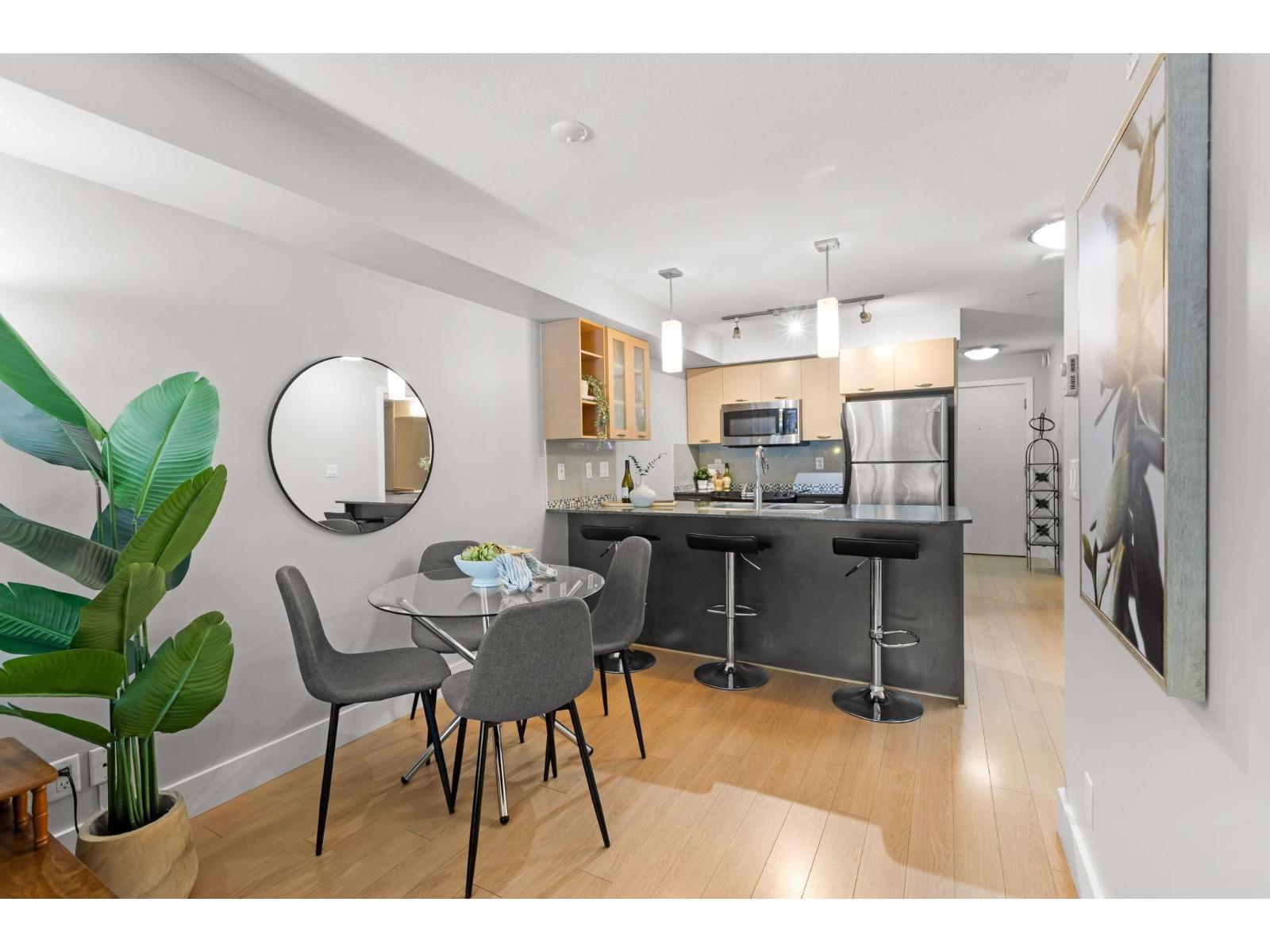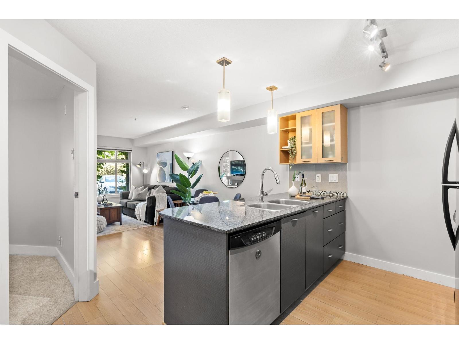 Welcome to this beautiful 1 bedroom + den at "Latitude". This thoughtfully designed ground-level suite combines comfort with contemporary flair. Enjoy an open-concept living area anchored by a cozy electric fireplace, flanked by seamless access to your private patio which is perfect for morning coffee or evening relaxation. The sleek kitchen boasts granite countertops, stainless steel appliances and the integrated eat-up bar enhances both function and entertaining ease. A generous den adds the finishing touch, offering the perfect space for a home office, nursery, or creative nook. The building features a well-equipped fitness room, billiards room, and two guest suites available for nightly rental-an ideal touch for hosting friends or family. 1 Parking & 1 Storage. (id:58403)