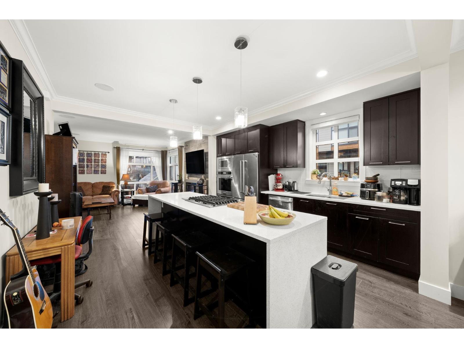 Welcome to HARVEST at BOSE FARMS. This incredible CORNER 3 bed 2.5 bath home is situated in the heart of Cloverdale in a highly sought after development. This home features an open style floor plan w/ 9 ft ceilings throughout on the main level, a beautiful chef's dream kitchen, boasting ss kitchen appliances and an oversized island with a gas range built in, room for bar stools, an undermount sink and a customized bar pantry. Have your guests come over to enjoy a BBQ off the private patio/ deck setup with upgraded built in speaker sound systems throughout the entire home. Relax in your master with a ton of natural light flowing through, featuring the gorgeous vaulted ceilings, & double sinks in ensuite & shower. Also included is the tankless hot water system in your 2 car garage. (id:58403)