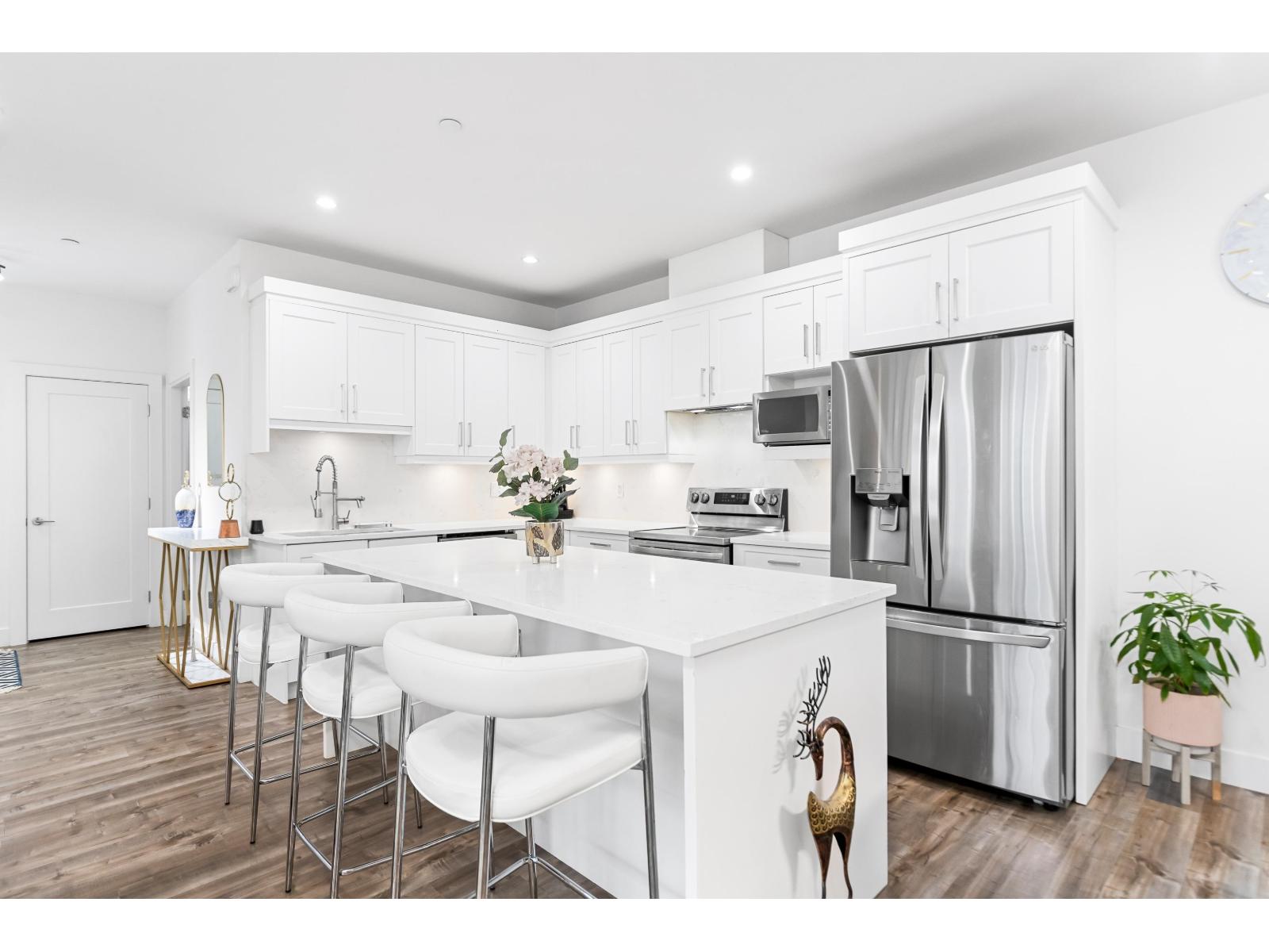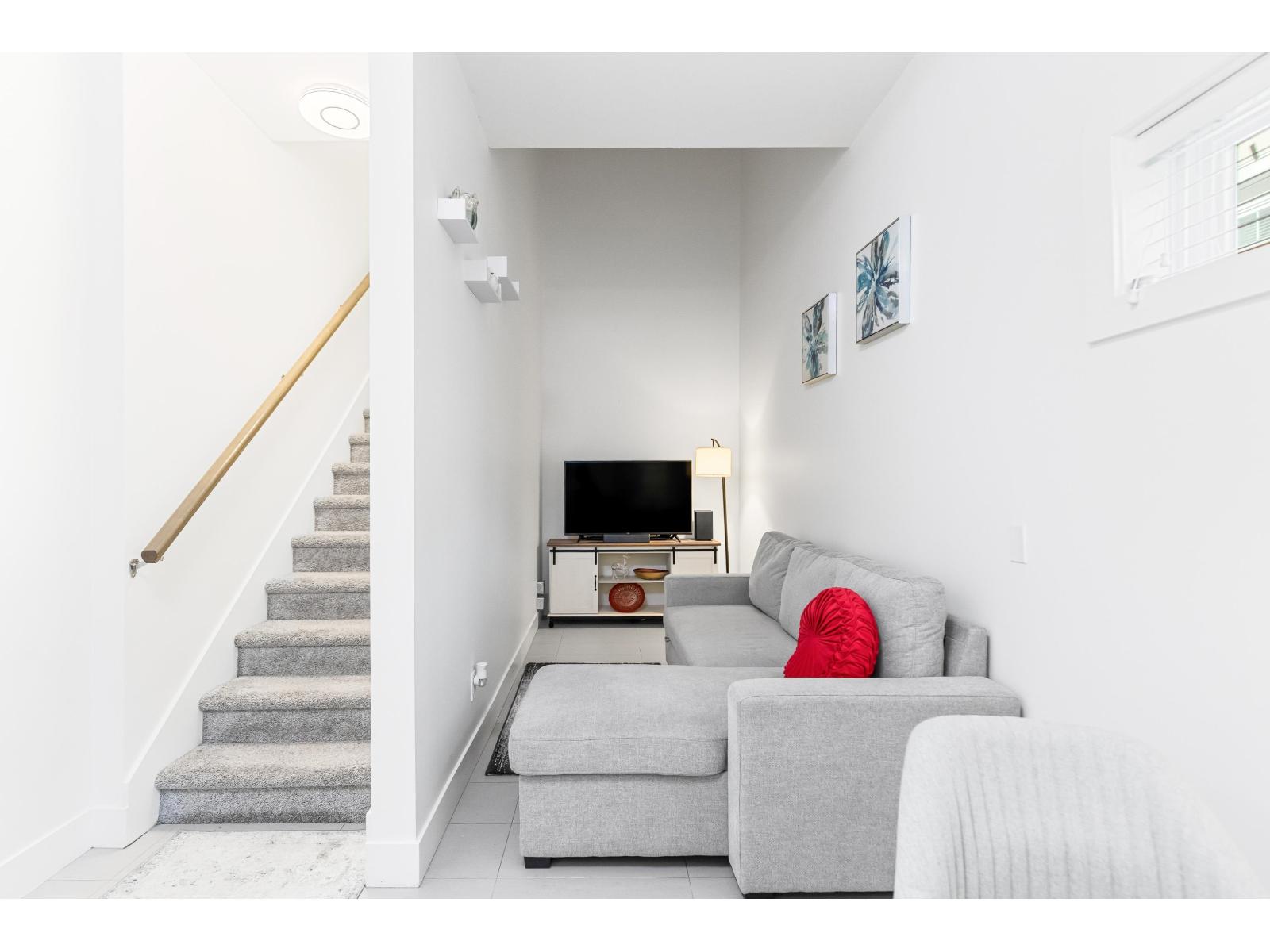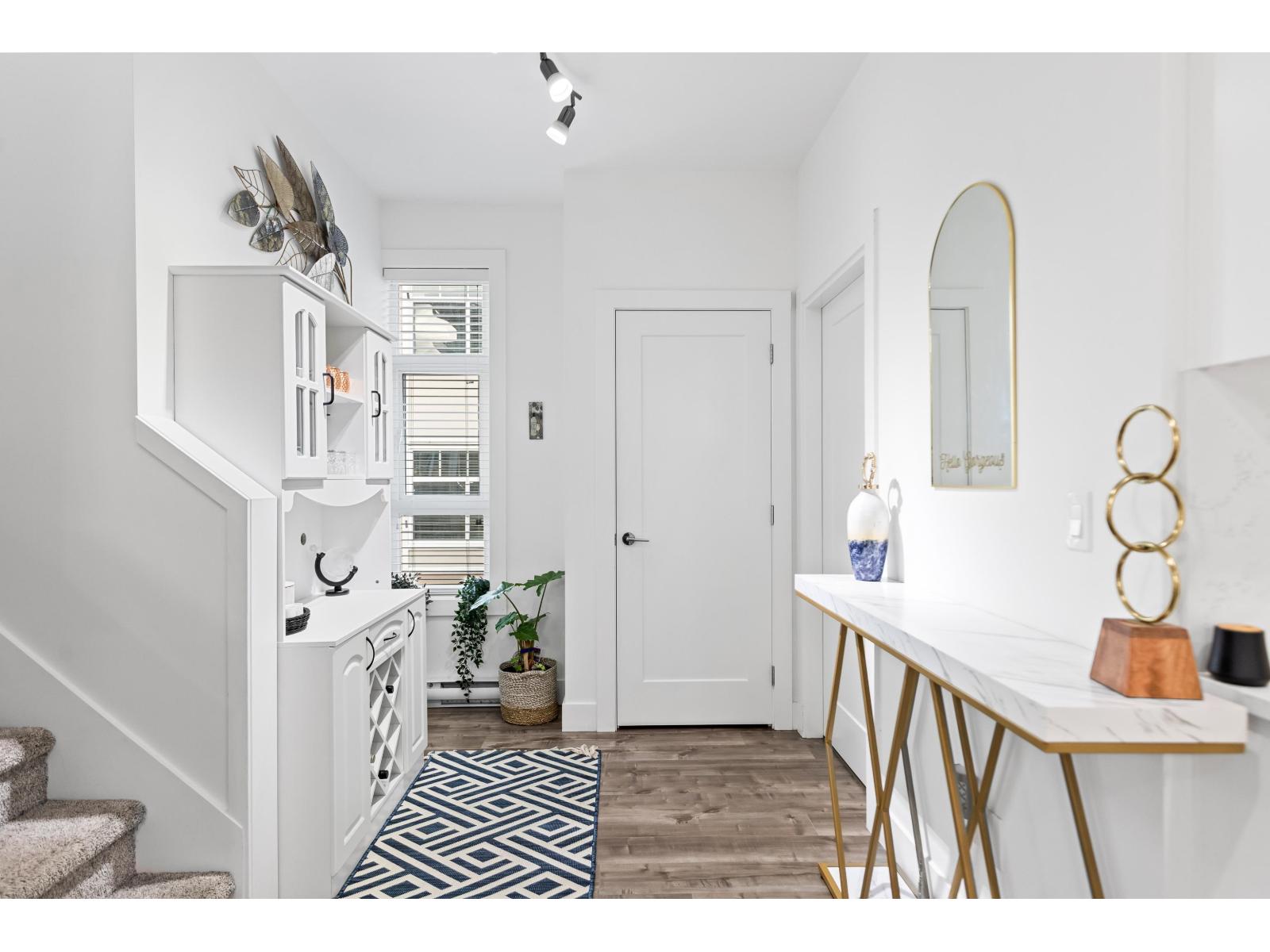 A DREAM COME TRUE. Celebrating a rare 2111ft CORNER home tucked aback THE ARGYLE, a family community of 22 modern luxury homes Highlights! SPACE: Enjoy the comforts of detached style living over 3 sprawling floors, generous in natural light. 3 beds+functional den/office above & bonus rec room on entry level (potential 4th bed). DESIGN: Modern living, new premium appliance kit, gorgeous lighting, dream baths, fresh paint! STORAGE: Expansive double WIDE garage w/epoxy floors, storage & gym+2 car driveway! BONUS: Rough in elevator shaft for wheelchair accessibility, room for whole family. LOCATION: Convenient+private - enjoy lush green forested backdrop from main floor & primary bed, while only steps to Willoughby Town Centre, schools, Yorkson Creek Park, community sports complex & Hwy1! WOW! (id:58403)
