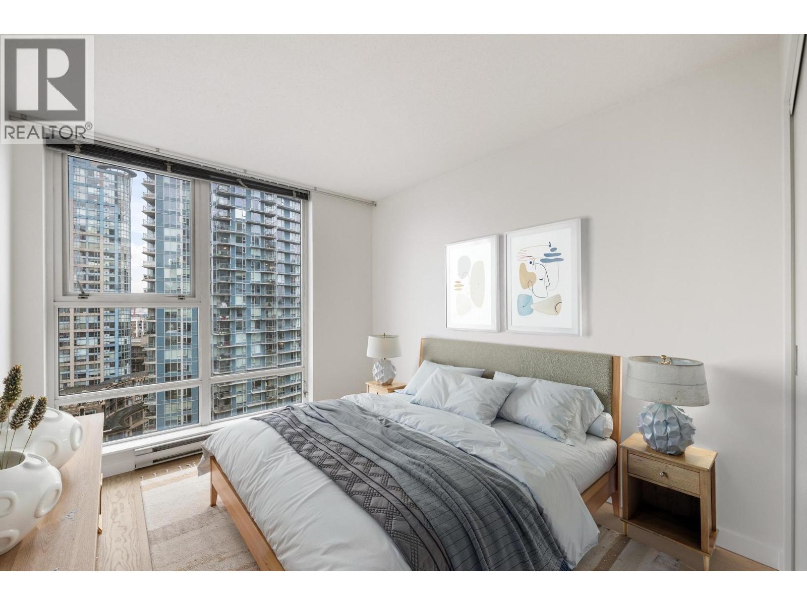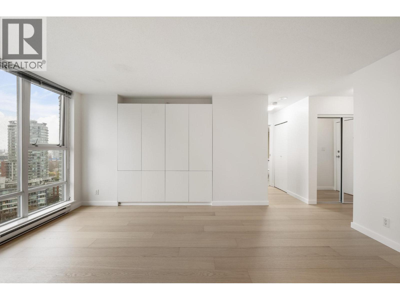 Wake up to majestic mountain views from your private balcony or your floor-to-ceiling windows in this bright and spacious 1 bedroom home. The light-filled solarium makes an inspiring office or dining space, while the clean Scandinavian aesthetic features new white oak floors, minimalist built-ins and fresh white paint throughout. The kitchen has a generous quartz counter workspace, new fridge and cooktop, and a large pantry/storage room. Spectrum 4 is one of Concord Pacific´s most sought-after buildings with a well-run strata and low strata fees! In-suite laundry, bike lockers, 24-hour concierge and Club Ozone with gym, pool, sauna, hot tub and lounge. Outside your door: the Seawall, SkyTrain, shopping at Loblaws and Costco and some of the city´s best restaurants. (id:58403)