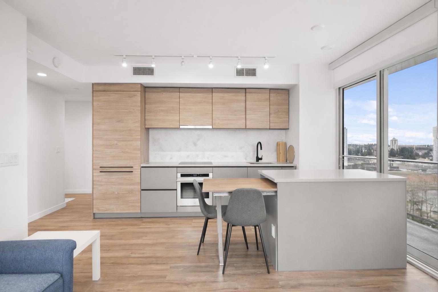 Welcome to University District by BOSA! A vibrant, master planned community in the heart of Surrey City. Just steps to SkyTrain, cafés, everyday essentials & both Simon Fraser University & Kwantlen Polytechnic University. Urban convenience at its best. This 2 bed/2 bath corner unit offers over 760 sq/ft of intelligently designed living space, complete with floor to ceiling windows, A/C for year round comfort & a signature built in extendable dining table that makes hosting effortless. Includes 1 large parking stall & 1 storage locker. Enjoy access to 23,000 sq/ft of standout amenities including an outdoor heated pool, full fitness centre, concierge & a stylish entertainment lounge. Modern & move in ready! A home that fits your lifestyle today & your investment goals tomorrow! (id:58403)