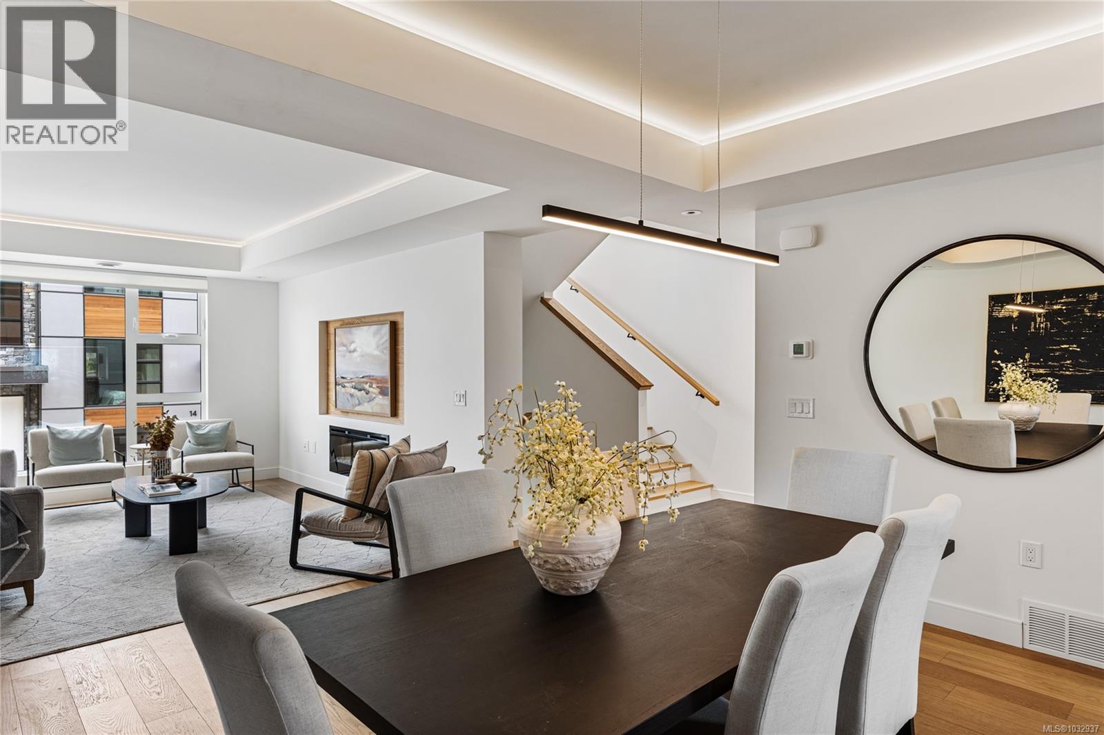 PARAGON PARC Luxury Living presents this stunning 3-bedroom, 3-bathroom, over 2000 sq ft townhome with living room, dining room, media room, and office nook, all nestled in a serene park-like setting surrounded by mature single-family homes. The contemporary West Coast design shines with soaring rooflines, elegant stone and wood accents, and striking transom windows. The main floor showcases floor-to-ceiling windows, coffered ceilings, and beautiful hardwood floors and stairs. The gourmet kitchen is a chef's dream, featuring quartz countertops, premium stainless steel appliances, a wall oven, gas cooktop, oversized island with eating bar, and a sleek linear fireplace that enhances the open-concept dining and living areas. A thoughtfully designed office nook and powder room complete this level. Upstairs, the luxurious primary suite includes a spacious walk-through closet and a spa-like 4-piece ensuite, while two additional well-sized bedrooms, a main 4-piece bathroom, and a convenient laundry room round out the upper floor. The lower level offers a versatile media room, rough-in for a potential 4th bathroom, a storage room, utility closet, and interior access to the insulated garage, which is pre-wired for an EV charger. Notable high-end features include radiant in-floor heating, remote-controlled blinds, custom closet organizers, high-quality fixtures throughout, hot water on demand, and an efficient HVAC system. Outside, enjoy your private backyard and patio backing onto lush green space with a tranquil water feature, along with access to the community park and garden plot. Built by award-winning White Wolf Homes, this townhome combines luxury living with modern comfort and comes with a Full New Home Warranty for ultimate peace of mind. (id:58403)