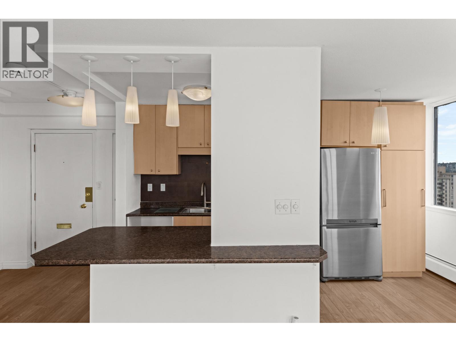 Welcome to the most desired Floorplan in the building, the '01 Sunset corner of Surfcrest on the edge of the West End. At 634 SqFt inside + 31SqFt patio out, #1701 has all your need in your downtown pied-à-terre. Completely renovated in 2010, you now have an open kitchen ideal for entertaining and taking in the sunset while you cook + and abundance of kitchen storage & stainless steel appliances. Your generous sized bedroom is additionally open to that most-desired English Bay view & additionally offers an abundance of closet space. Double sinks in the bathroom and plenty of open storage at the front of the unit. 1 parking & 1 locker accompany this offering. Contact me today for you private viewing of the ideal view home! (id:58403)