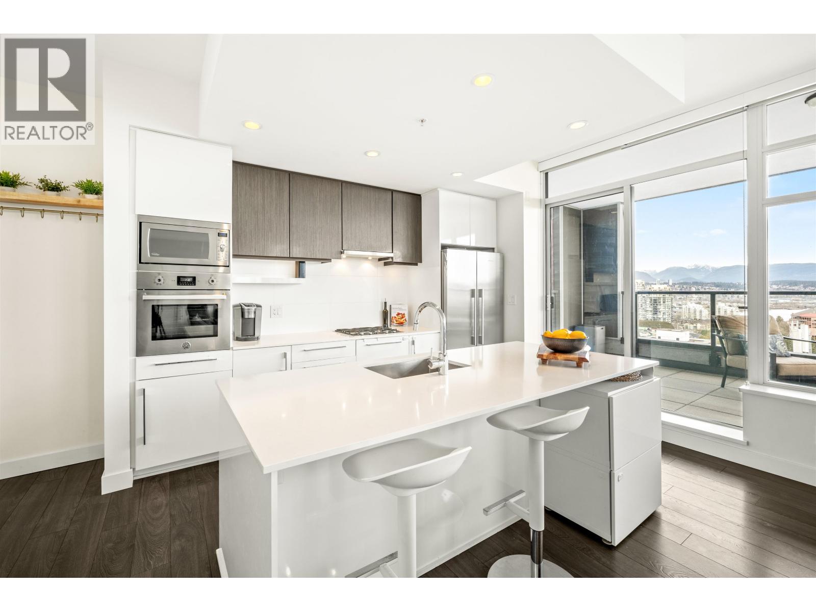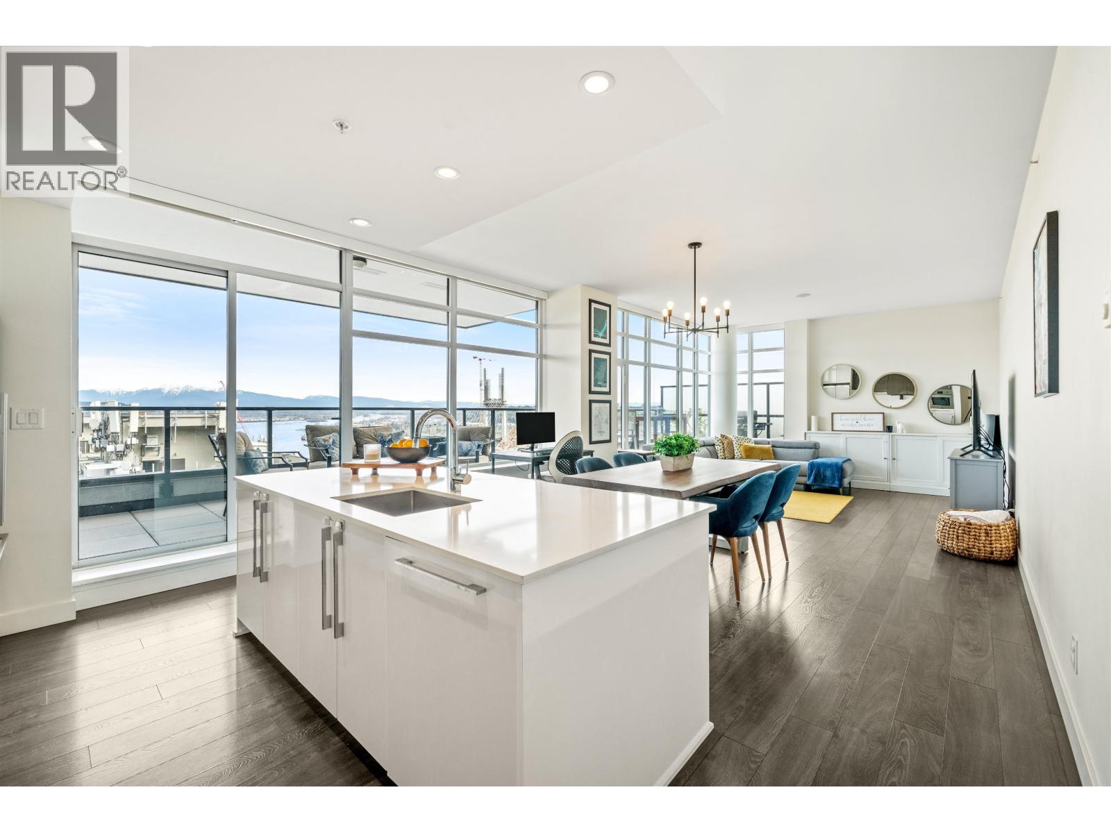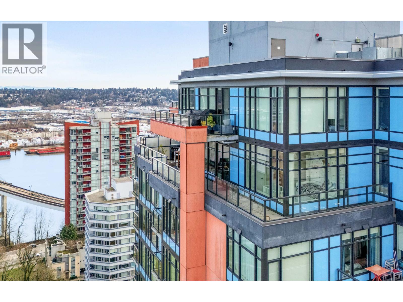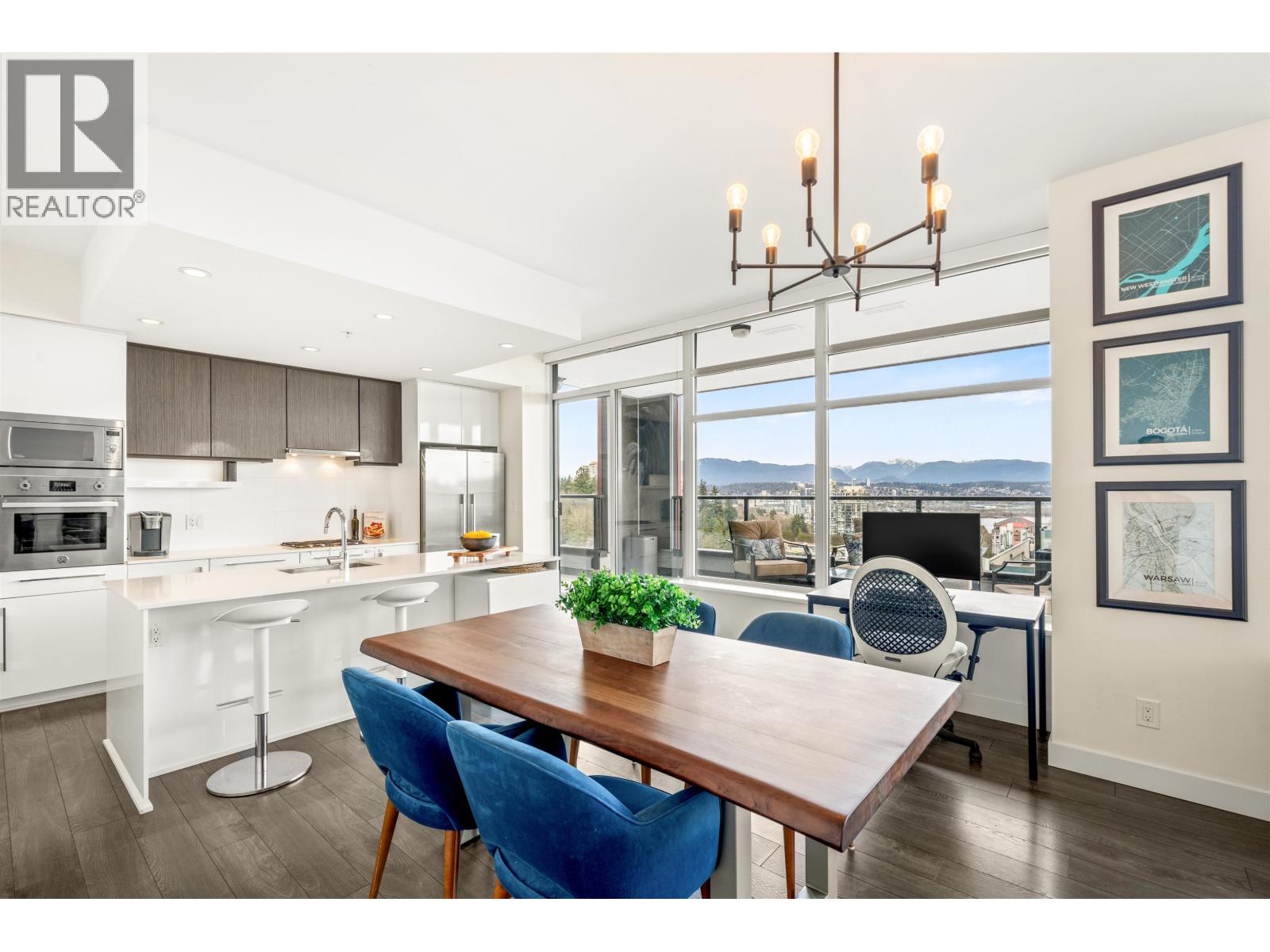 Stunning sub-penthouse high above downtown New West, this corner unit at Elliot Street offers panoramic views from the North Shore mountains, to the Fraser River & Mt Baker. Huge wrap around semi-covered patio, great for entertaining, over 300sf, enjoy morning sunsets & north, east & south facing views! Open floor plan, 1,154sf of living space, with 2 bedrooms, 2 bathrooms, open-concept living/dining/kitchen area with 10´ ceilings, large kitchen with island, high-end European appliances, gas range, and modern cabinetry. Located on the east side of Downtown New West, backing onto Albert Crescent park, tucked away from city noise and a close walk to Columbia Skytrain, Restaurants, Shopping and Pier Park. Includes 1 parking & 1 storage. (id:58403)