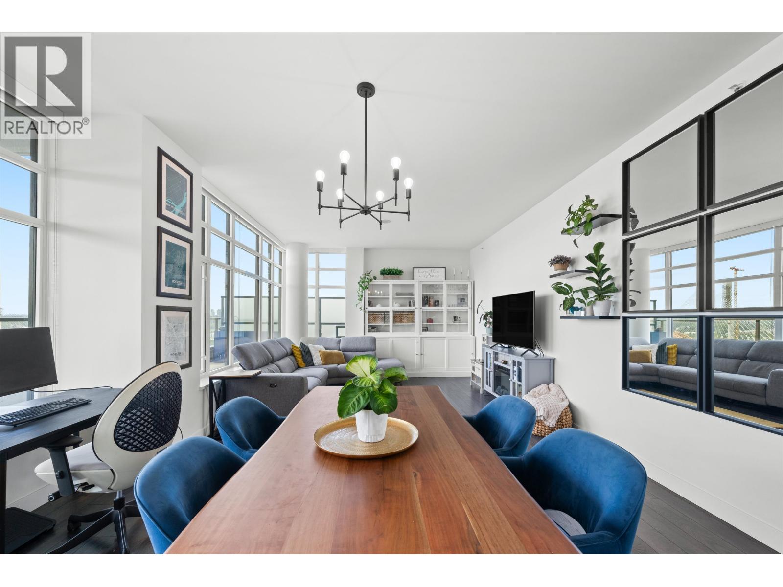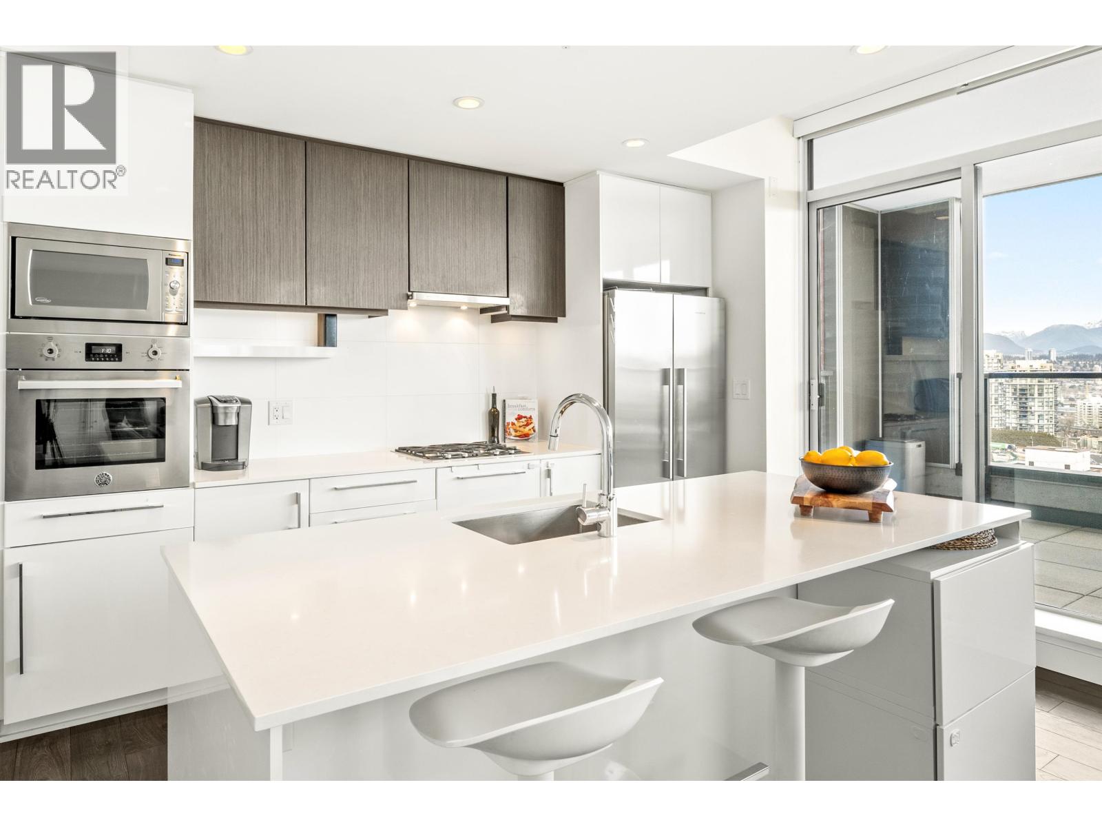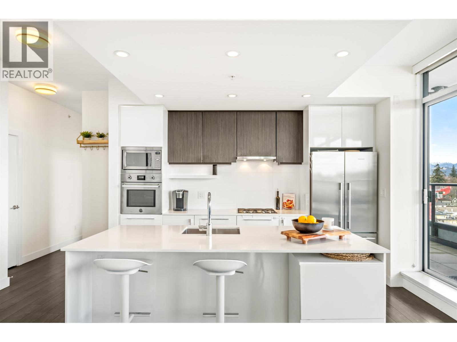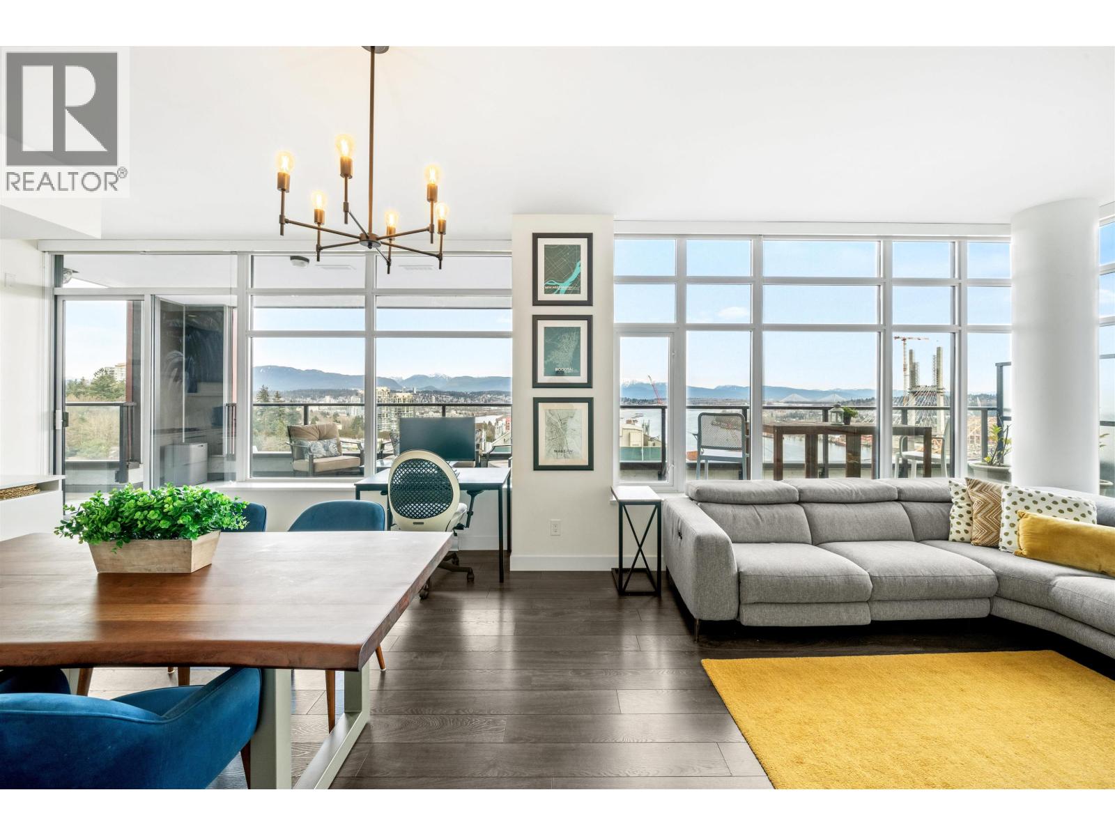 Stunning sub-penthouse high above downtown New West, this corner unit at Elliot Street offers panoramic views from the North Shore mountains, to the Fraser River & Mt Baker. Huge wrap around semi-covered patio, great for entertaining, over 300sf, enjoy morning sunsets & north, east & south facing views! Open floor plan, 1,154sf of living space, with 2 bedrooms, 2 bathrooms, open-concept living/dining/kitchen area with 10´ ceilings, large kitchen with island, high-end European appliances, gas range, and modern cabinetry. Located on the east side of Downtown New West, backing onto Albert Crescent park, tucked away from city noise and a close walk to Columbia Skytrain, Restaurants, Shopping and Pier Park. Includes 1 parking & 1 storage. (id:58403)