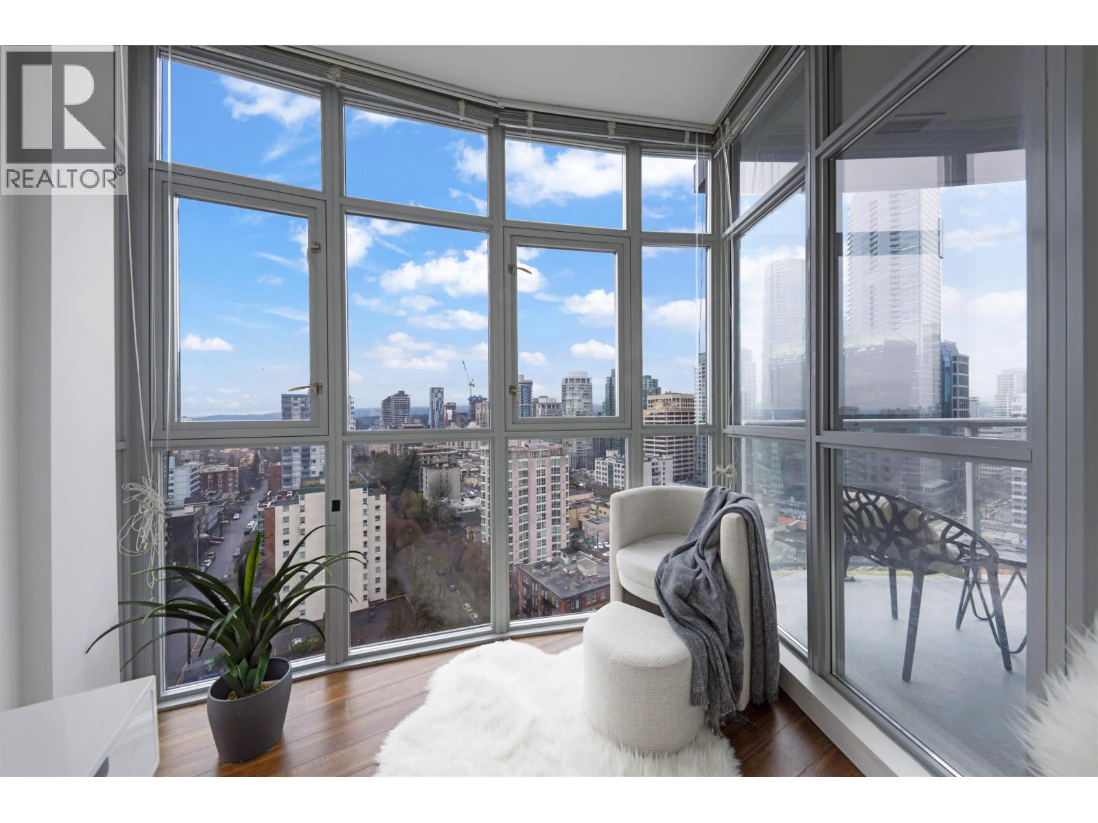 Discover a rare chance to own a coveted North-facing (02) unit at The Sterling Residence! Thoughtfully designed over 939/sqft, this 2 bed & 2bath home comes with a sun soaked work space solarium + oversized flex space / pantry. Offering a bright living space, featuring floor-to-ceiling windows boasting stunning panoramic city & north shore mountain views. Gas F/P, hazelnut oak flrs, new bdrm carpets & freshly painted. Enjoy top-tier amenities, including concierge, fitness centre, steam room, jacuzzi, ample bike storage, and a party room. Perfectly situated steps from the financial district and near Robson´s shops, cafes, and Michelin-starred restaurants, this investor and pet-friendly home allows for 30-day minimum rentals. Don´t miss out-schedule your private showing today! (id:58403)