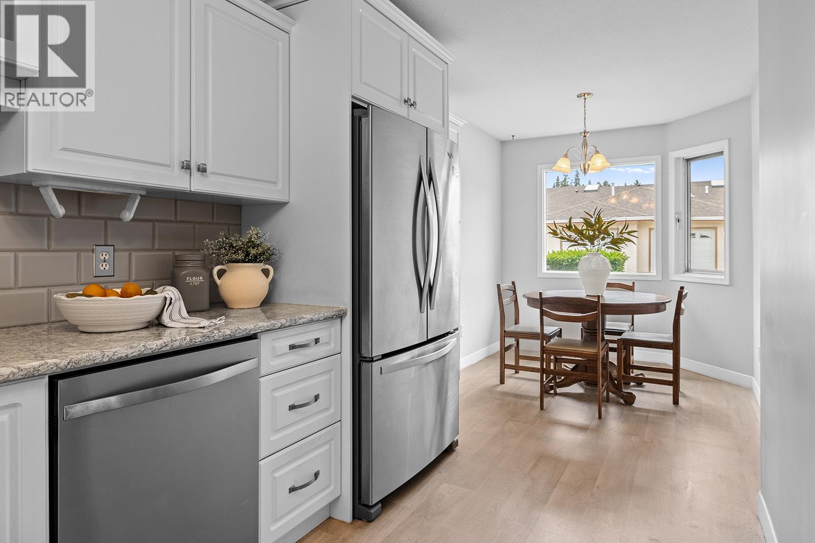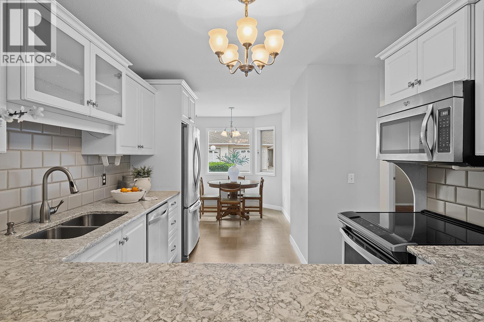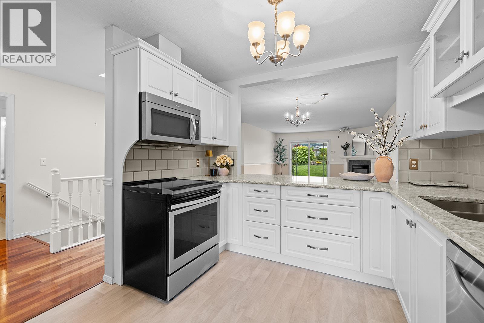 With an AMAZING LOCATION, discover comfort and convenience in this bright and spacious 3-bedroom + den, 3-bathroom townhome, perfectly nestled in a quiet, well-kept 55+ community in the heart of Kelowna. The main floor offers a thoughtful layout with a light-filled entrance with a gorgeous skylight, a primary bedroom featuring a private ensuite with an accessible WALK IIN TUB & expansive dual vanity. A second bedroom, and an additional full bathroom on your main level is perfect for convenience. Cozy up in your living room with a gas fireplace & enjoy a seamless flow into both the dining room and kitchen that has been opened up to create a space that is perfect for gathering and savouring company. The kitchen is adorned with granite countertops, bright white cabinetry, whirlpool appliances and a newer stove. Downstairs, you’ll find a versatile rec room, a third full bath, and laundry area—ideal for guests or hobbies. Enjoy the ease of an attached single-car garage and low-maintenance living. Just minutes from shopping, parks, medical offices, and transit, this home offers the perfect blend of comfort, location, and lifestyle. Furnace 2016. AC 2018. HWT 2021. Electrolux 2019. (ages are approx) 1 cat or dog allowed (max 15” at shoulder and 25lbs) (id:58403)