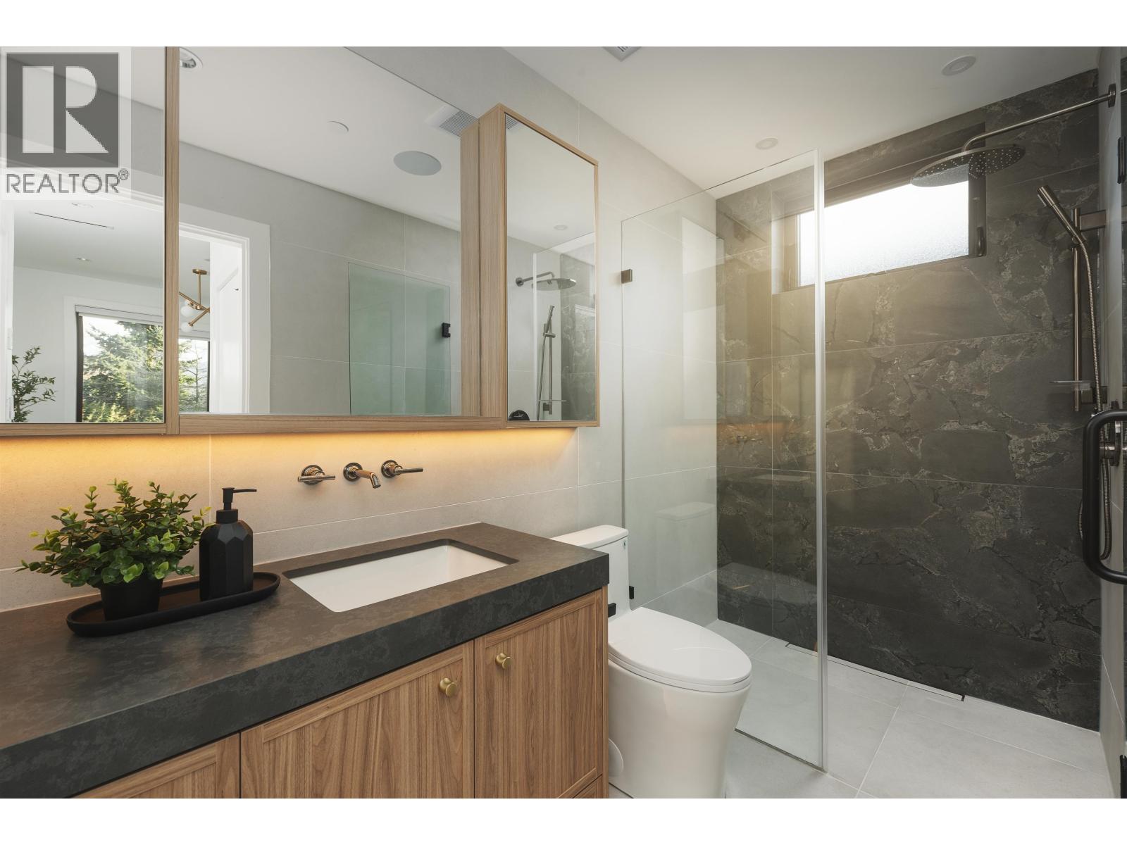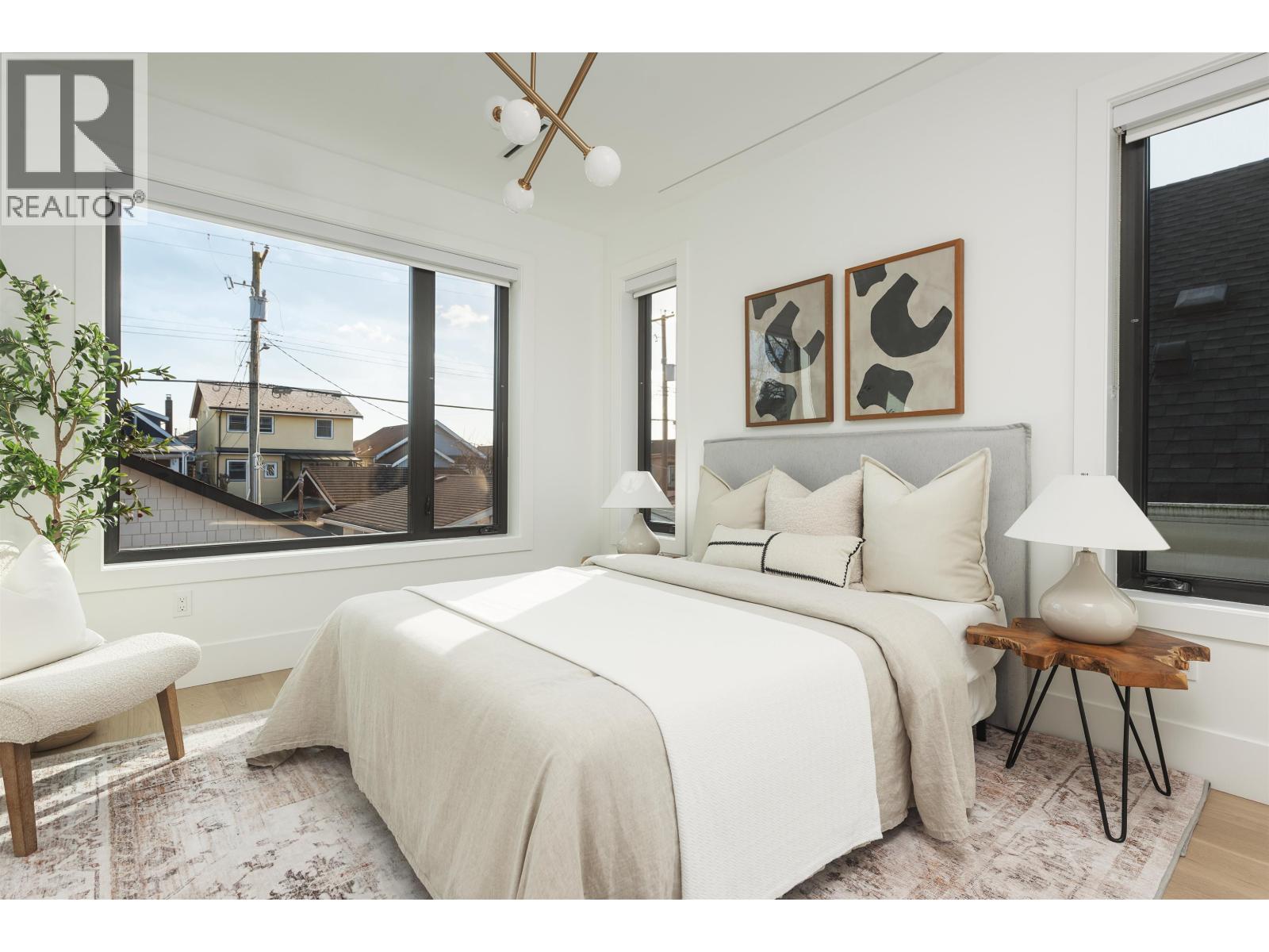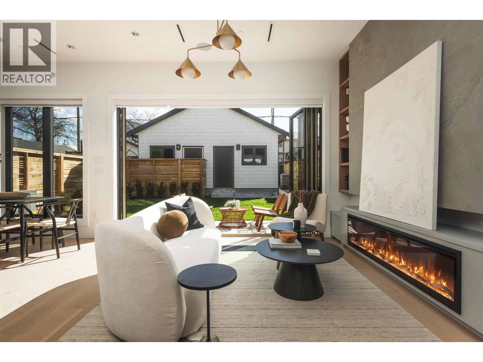 Some homes just check boxes. This one stays with you. Back unit on a quiet, tree-lined street in Hastings Sunrise. South-facing with abundant natural light and a private, full size backyard. 3 full size bedrooms each with its own ensuite - plus a powder room. A layout that feels considered, not forced. Designed by Kenzi Design House with custom lighting, millwork, tile, and a transitional aesthetic for flexible furnishing. Black-framed windows pushed to the maximum allowable and 6´ stairwell glazing pull light through every level. The third bedroom offers full height, no slope. Accordion doors open to a sun-soaked yard. Radiant heat + heat pump/AC, automated blinds, built-in speakers, security, gas BBQ hookup. Kitchen with island and window over the sink. Full-size insulated garage with epoxy - work, train, or create. Minutes to Commercial Drive, Hastings amenities, Downtown, North Shore. Hastings Elementary / Templeton Secondary. Summers at the PNE. Morala Homes: "Humble beginnings. High standards." (id:58403)