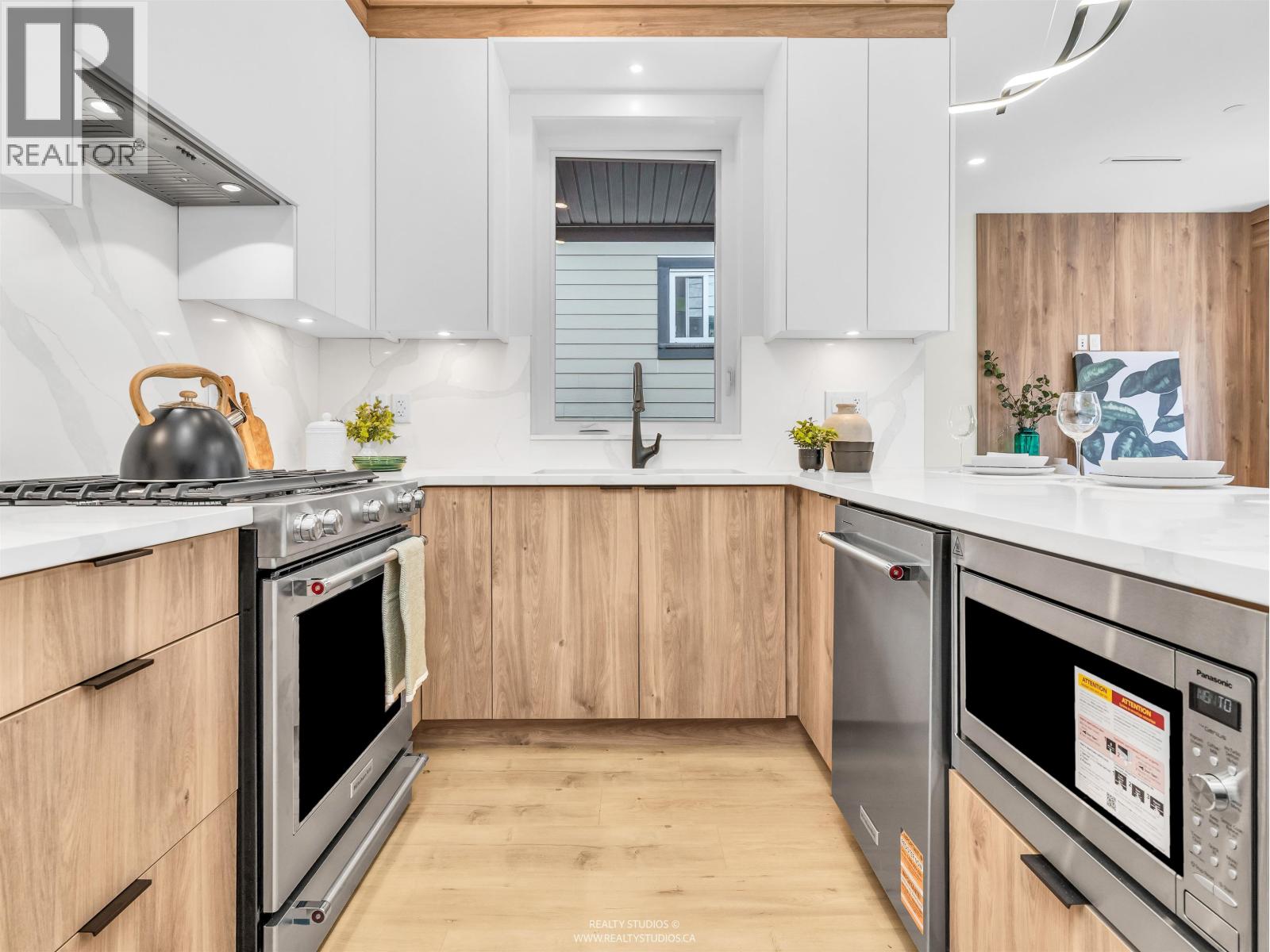 Brand new East Vancouver 3 bed + family rm REAR half duplex with private garden & patio. Features incl. air conditioning; laminate flooring throughout; security alarm system; front door camera & direct access from garage. Main level offers 9ft ceilings with living area featuring built in storage, linear electric fireplace with TV area above. Kitchen offers s/s Kitchen Aid appliances incl. gas stove & french door fridge; quartz c/tops with quartz slab backsplash. Beds offers high vaulted ceilings; built-in closets; view of mtns. to NW. Basement offers option for separate access in-law suite with rec rm, powder rm & laundry rm with sink & gas dryer. Single garage with EV plug ready to charge your vehicle. Just 1 block away is GT Cunningham Elementary & Gladstone Secondary is just 5 minute drive. Kingsway is a short stroll away with restaurants, services, & shops. (id:58403)