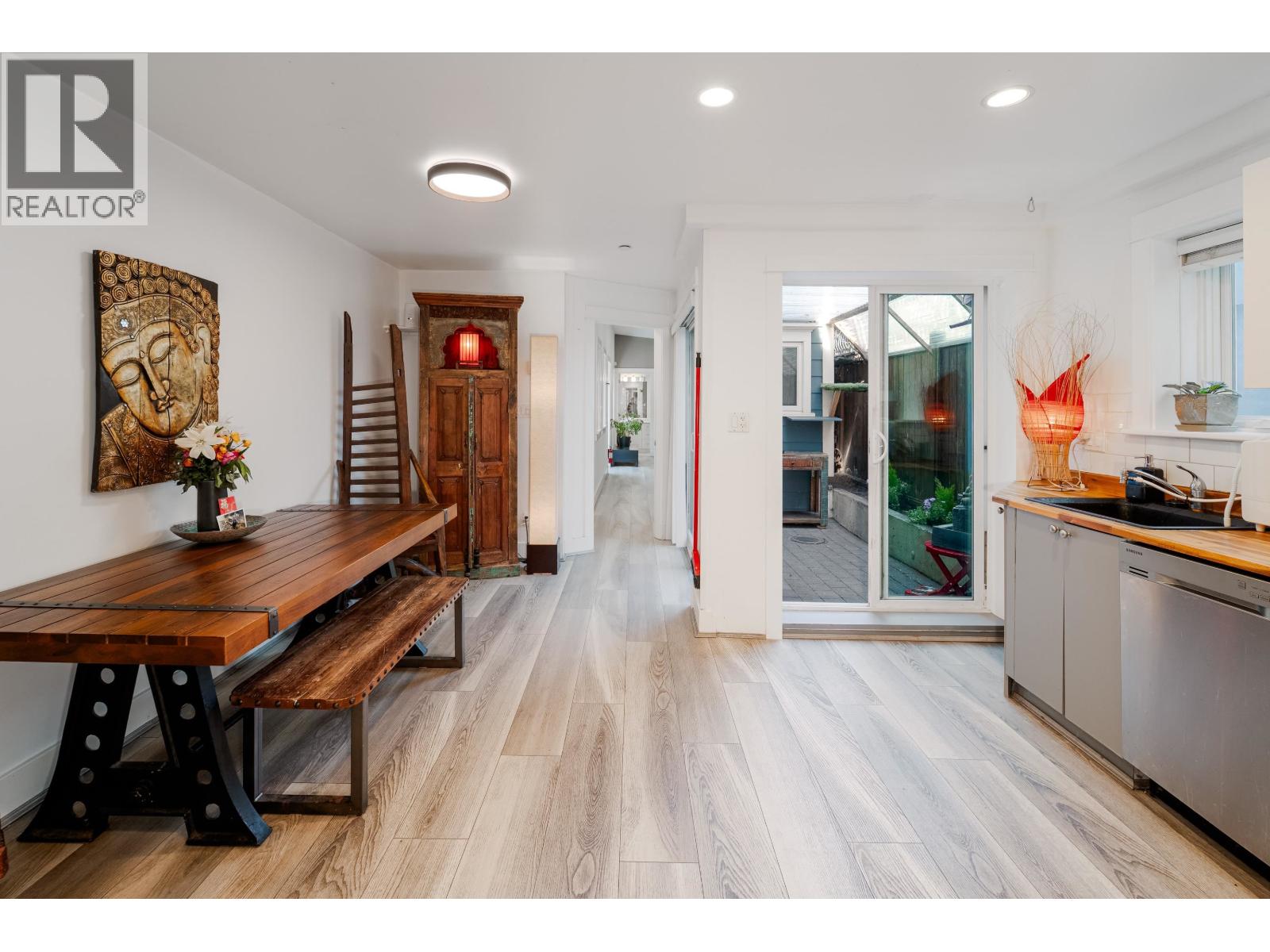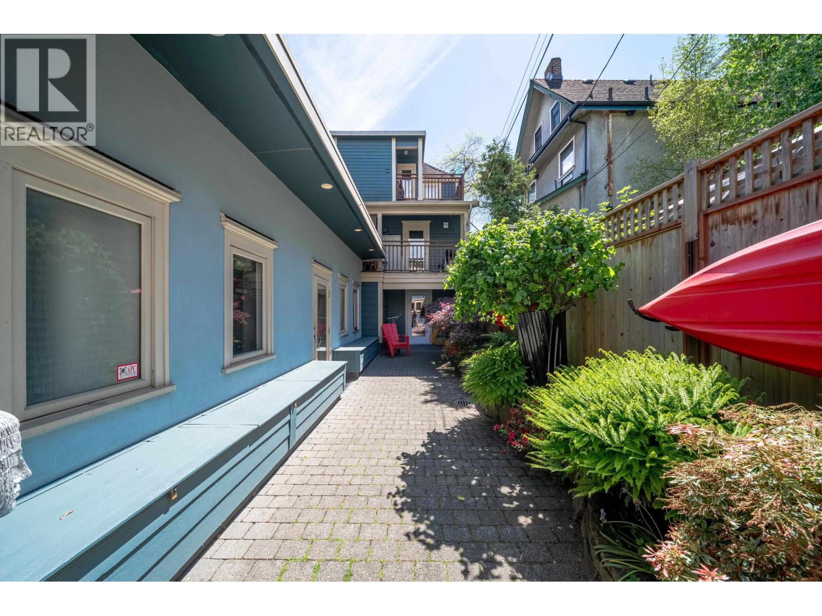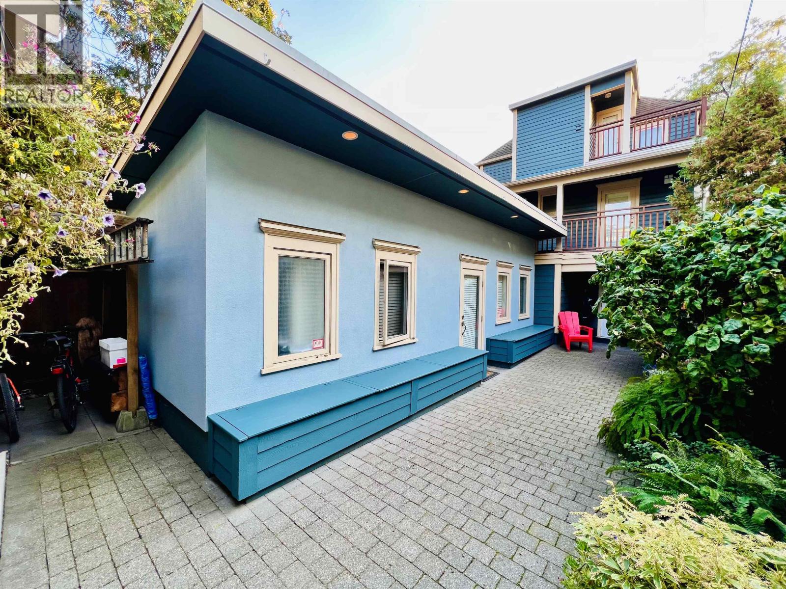 In the Heart of Strathcona on McLean Park, this one-of-a-kind townhome is in a 3-unit strata complex. Offering endless possibilities with 3 beds and 3 baths. The main suite has 2 bedrooms, a den, and a well-designed dining and kitchen area that opens onto a private patio. An additional attached studio suite offers a small kitchen, full bath, large windows that flood the space with natural light, and spacious garden courtyard patios. The converted garage features a stunning one-bedroom loft-style suite with vaulted ceilings and a cosy upstairs bedroom. With its prime park-front location and flexible layout, this home is perfect for multi-generational living or rental potential. A cosy secluded home or a great revenue property and a 10min walk to the new St Paul's Hospital. (id:58403)