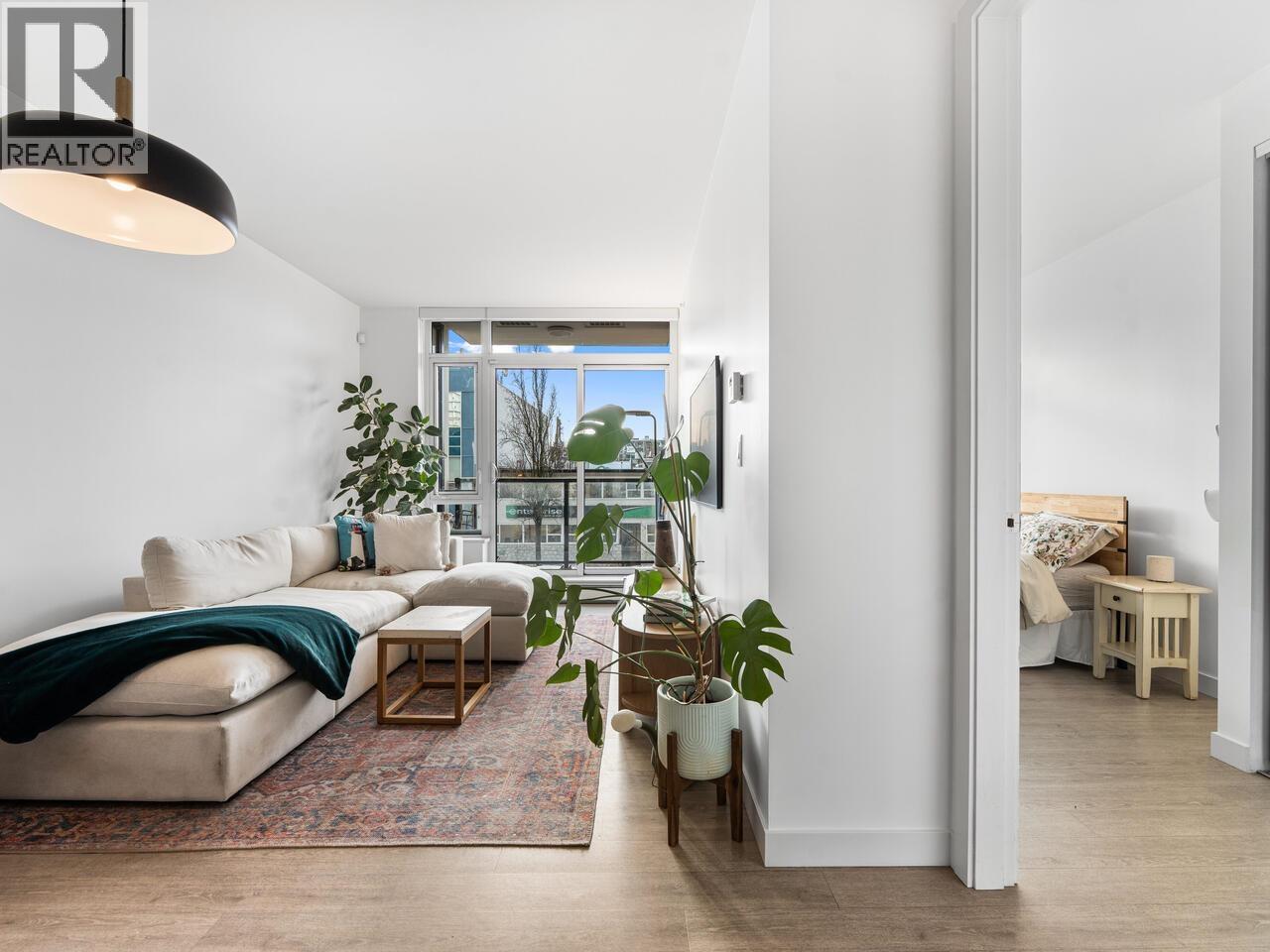 Stunning 2 bed + den, 2 bath corner 2nd floor garden suite in Olympic Village´s Proximity. Bright & airy with floor-to-ceiling windows & 9´ ceilings. Bedrooms are thoughtfully separated for privacy, plus a spacious den ideal for a home office or large pantry/in suite storage. Gourmet kitchen features Caesarstone countertops, full-size stainless steel appliances, gas range, breakfast bar seating & lots of counter space. Enjoy an incredible 393 square ft private patio/garden oasis surrounded by lush greenery w/BBQ gas hookup plus a sunny south-facing balcony. Includes 1 oversized parking stall & 1 double sized storage locker. Steps to Science World, False Creek, Main Street shops, dining, and transit. Pet & rental friendly, rooftop common patio & gym in the building. (id:58403)