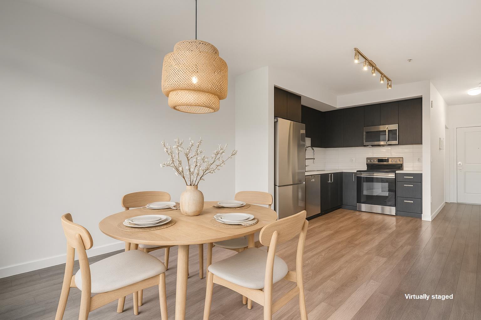 Welcome to Fleetwood Village 1 by Dawson + Sawyer, where style meets convenience in the heart of Surrey's most connected community! This nearly-new 1 bed + flex home offers a smart layout with an open kitchen featuring sleek cabinetry & stainless steel appliances that is perfect for entertaining. Enjoy a bright living area with access to a covered balcony, hardwood-style floors, and in-suite washer/dryer. The flex room converts to 2nd bedroom or office. Located just steps from Fleetwood Town Centre and the future SkyTrain station, everything you need is at your doorstep. Includes 1 parking, 1 storage, and access to 36,000+ sqft of amenities (gym, licensed daycare, lounge & entertainment areas). Live or invest with confidence. Call us today to see for yourself! (id:58403)