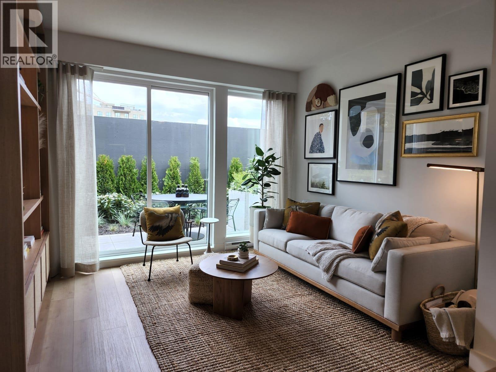 ASSIGNMENT OPPORTUNITY AT SOLD OUT MOODY YARDS by MOSAIC HOMES. This 721 sqft 2 bed, 2 bath home features a functional open layout, soaring 9´ ceilings, and floor-to-ceiling windows that fill the space with light. Enjoy a large 268SF of covered balcony with garden views and a sleek kitchen with shaker cabinetry, integrated appliances, and quartz counters flowing into the dining and living areas. Spa-inspired bathrooms include designer tile, a frameless glass shower, and a deep soaker tub. Residents enjoy 36,000+ sqft of outdoor amenities, plus a modern co-work studio. Steps to Rocky Point Park, Brewers Row, Shoreline Trail & SkyTrain/West Coast Express. Includes 1 parking & 1 storage locker. Estimated completion early 2026! (id:58403)
