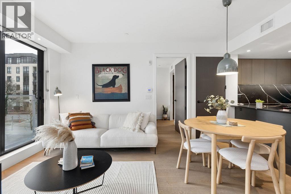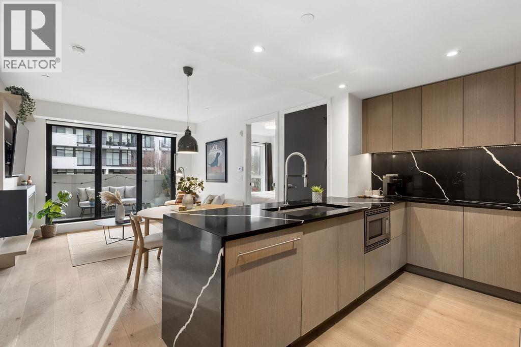 Welcome to this BRIGHT & REFINED 2-BED + DEN, 2-bath home near Riley Park in SHIFT by Aragon. Light-filled open concept layout with premium finishes, expansive windows & OVERSIZE BALCONY & AIR CONDITIONING. Chef-inspired kitchen with MONOGRAM APPLIANCES, sleek cabinetry, quartz counters, oversized island & counter seating. High quality engineered wood floors & CUSTOM MILLWORK throughout with ample storage. Seamlessly extend your living space with ACCORDION GLASS PATIO DOORS, opening to your PRIVATE COVERED BALCONY. Locally-minded, family friendly neighbourhood steps from Main St with fantastic amenities: Hillcrest Community Center, QE Park, Farmers´ Market, grocery stores, cafes, restaurants, and bike path. Includes 1 parking & locker. (id:58403)
