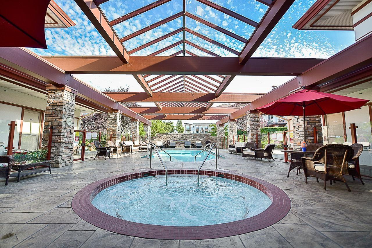 Introducing St. Andrews at Northview Golf Course. This SPACIOUS 1,304 sq ft 2 bed, 2 bath & den home offers 9 ft ceilings & bright south-facing exposure. Features include a large kitchen w/ s/s appliances, granite countertops & hidden roll out platform to serve as a coffee bar or baking station. Convenient pantry & storage areas, expansive living & dining areas, primary bedroom with 5-piece ensuite & walk-in closet, built-in storage throughout, in-floor radiant heat, hardwood flooring & a large laundry room with updated washer & dryer. Enjoy a spacious south-facing, covered balcony with gas hookup & hose bib, 2 parking stalls & resort-style amenities: pool, hot tub, steam room, fitness centre, billiards room, library & 2 guest suites-all within a gated community & close to shopping. (id:58403)
